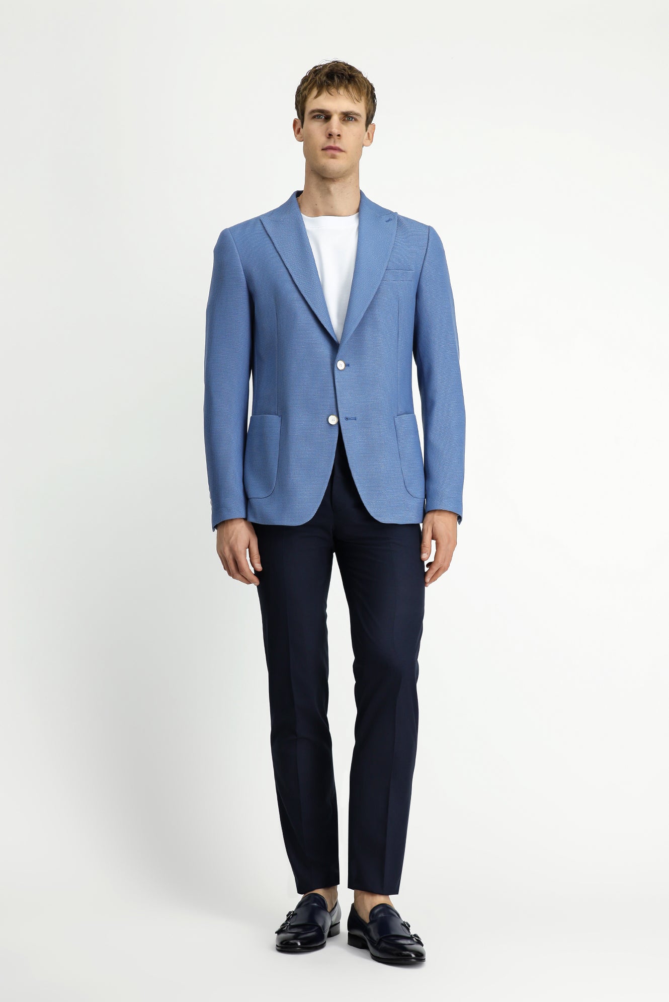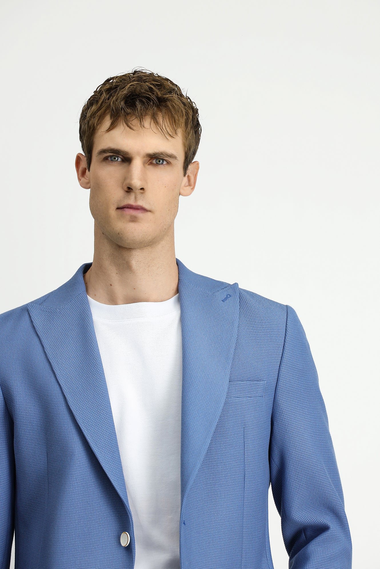 Mavi Muscle Fit Likralı Desenli Spor Ceket