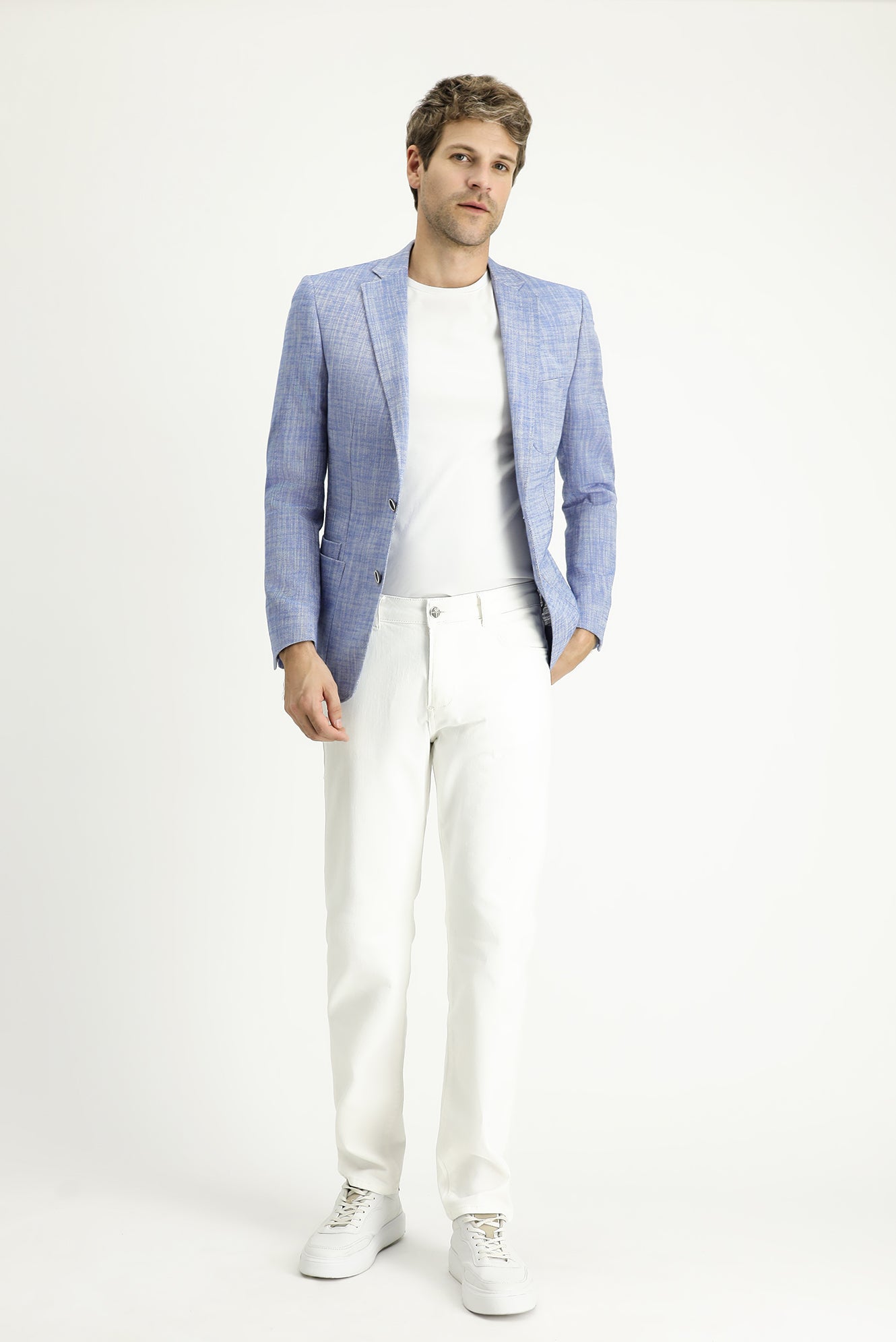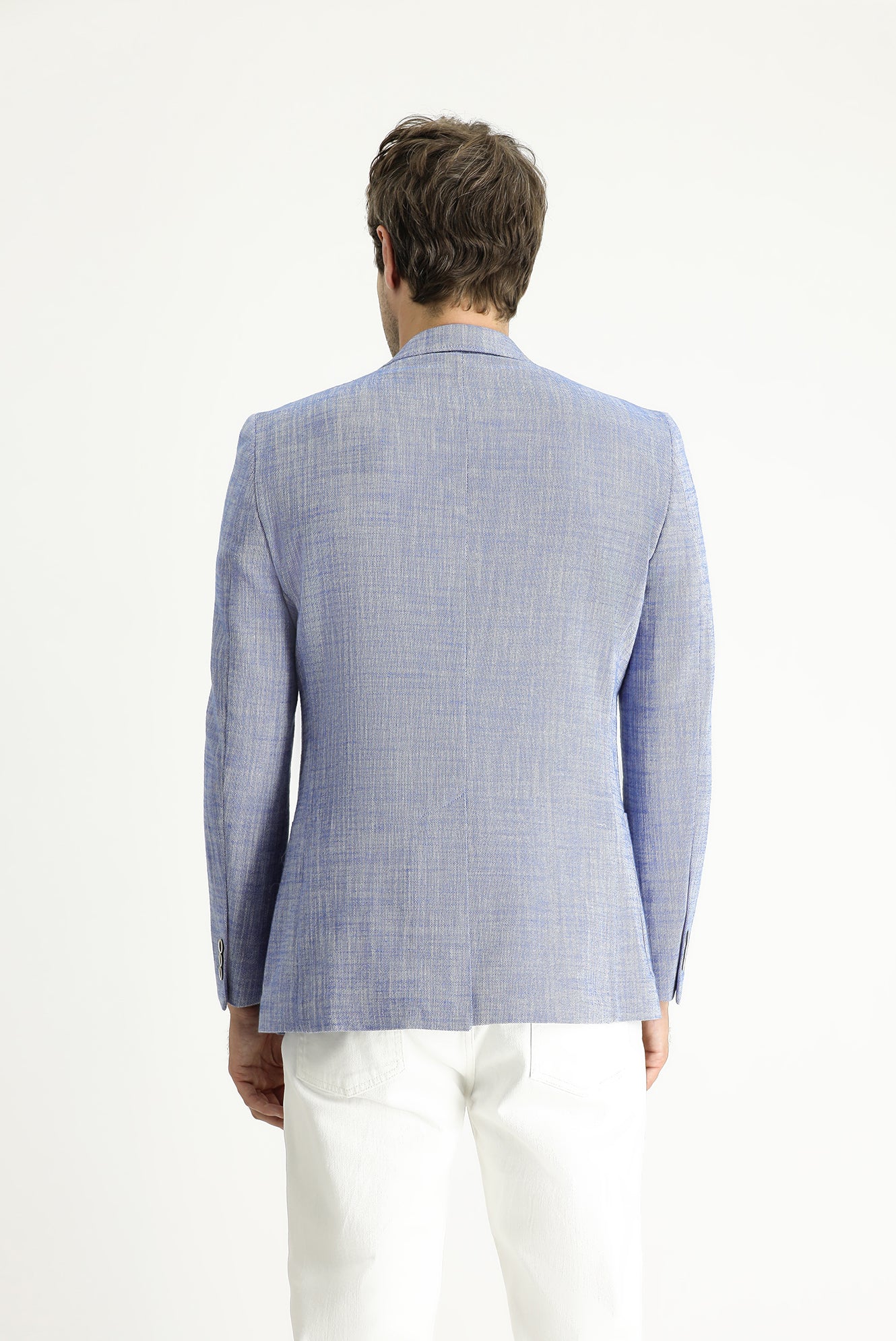 Mavi Slim Fit Dar Kesim Desenli Spor Pamuk Ceket