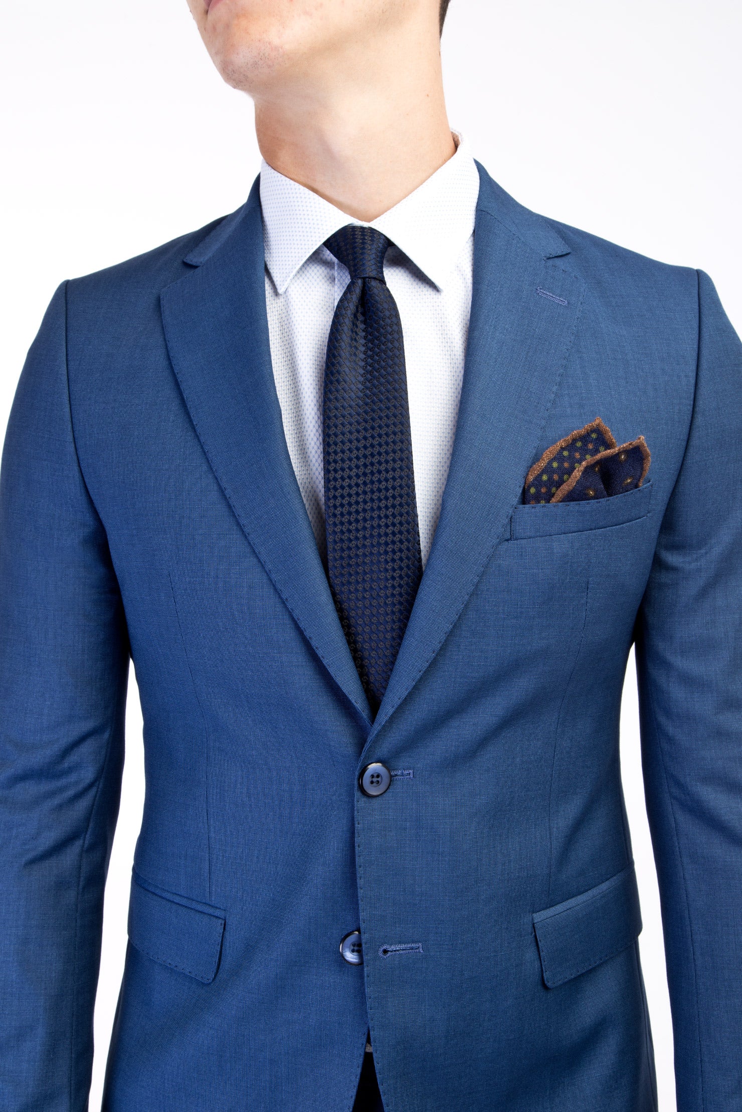 Mavi Slim Fit Dar Kesim Desenli Takım Elbise