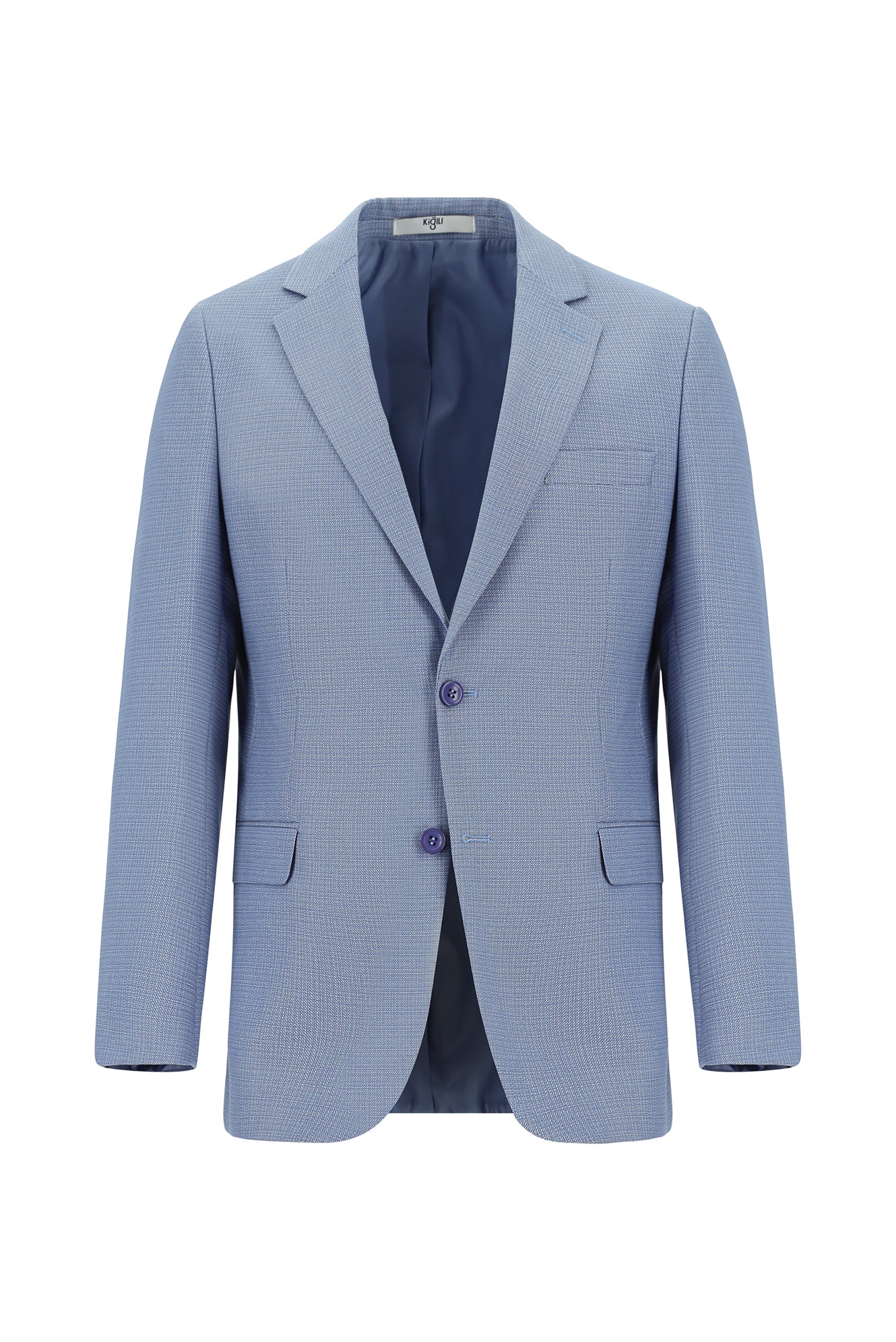 Mavi Slim Fit Dar Kesim Klasik Desenli Takım Elbise