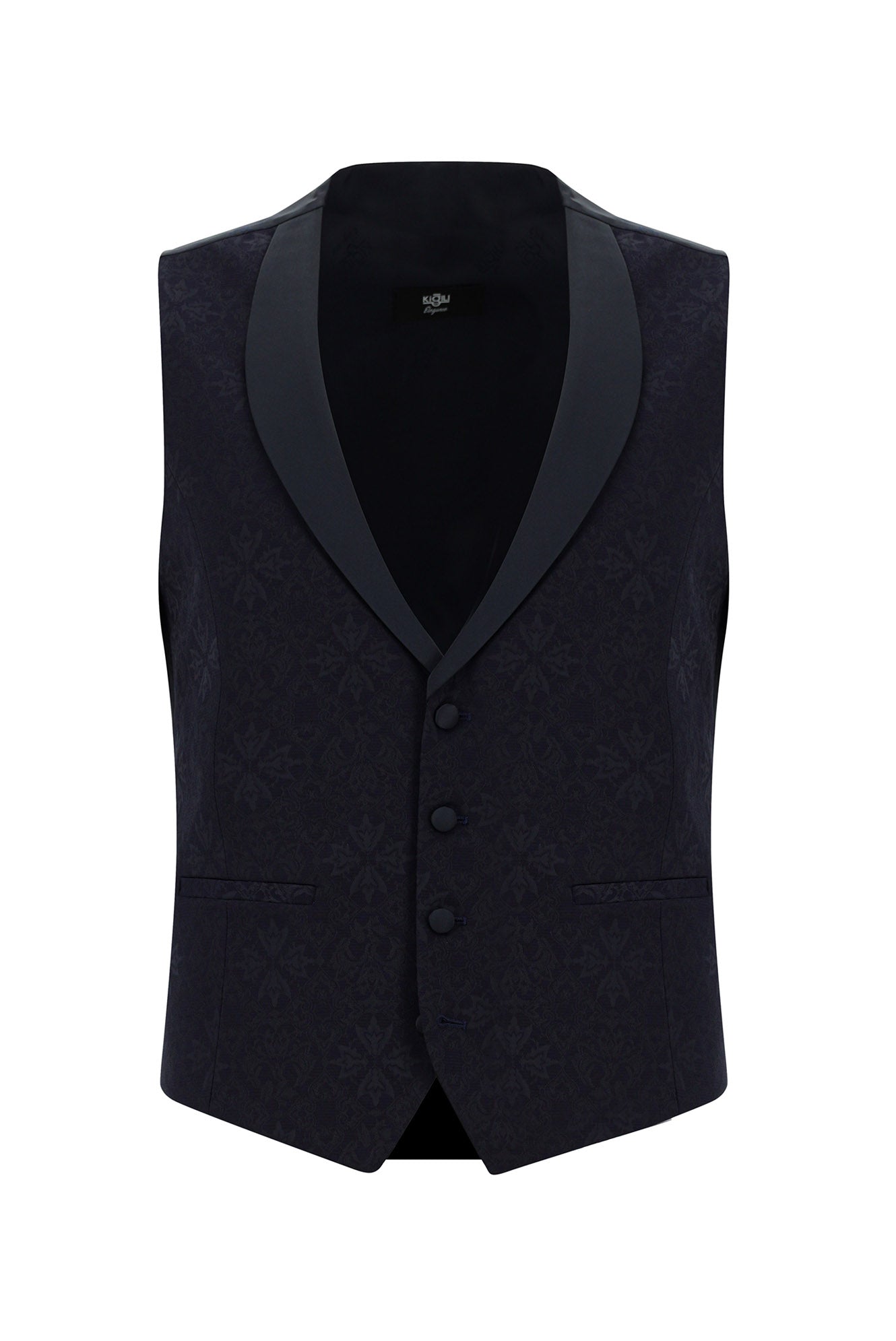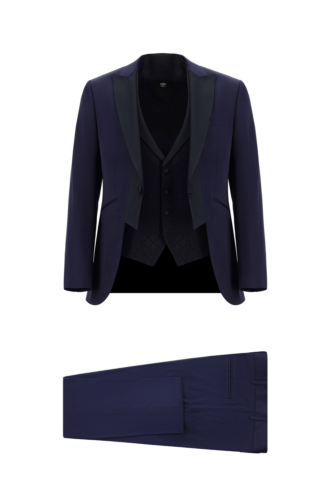 Mavi Slim Fit Dar Kesim Mono Yaka Yelekli Smokin & Damatlık