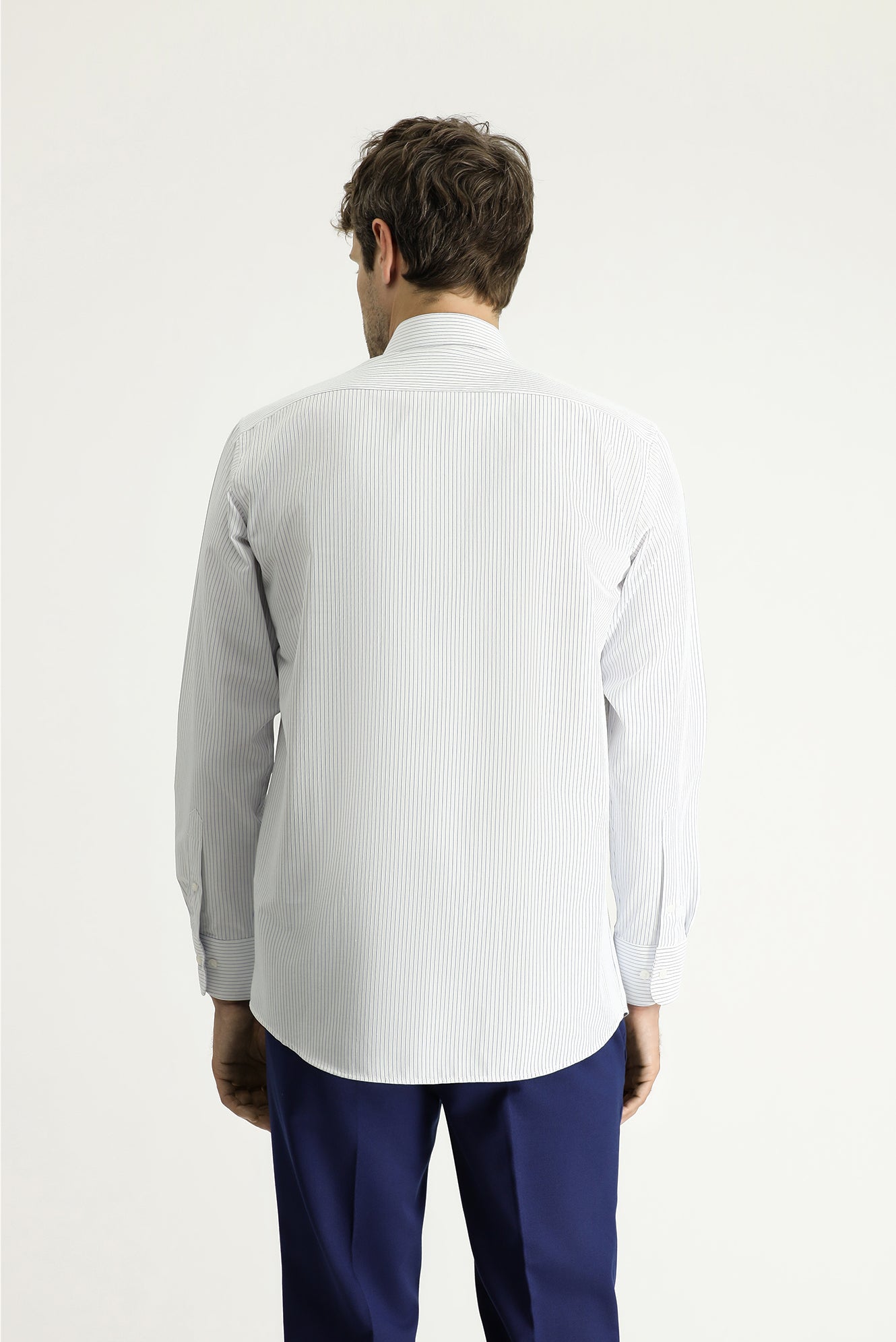 Mavi Uzun Kol Klasik Çizgili Pamuklu Kolay Ütülenebilir Gömlek