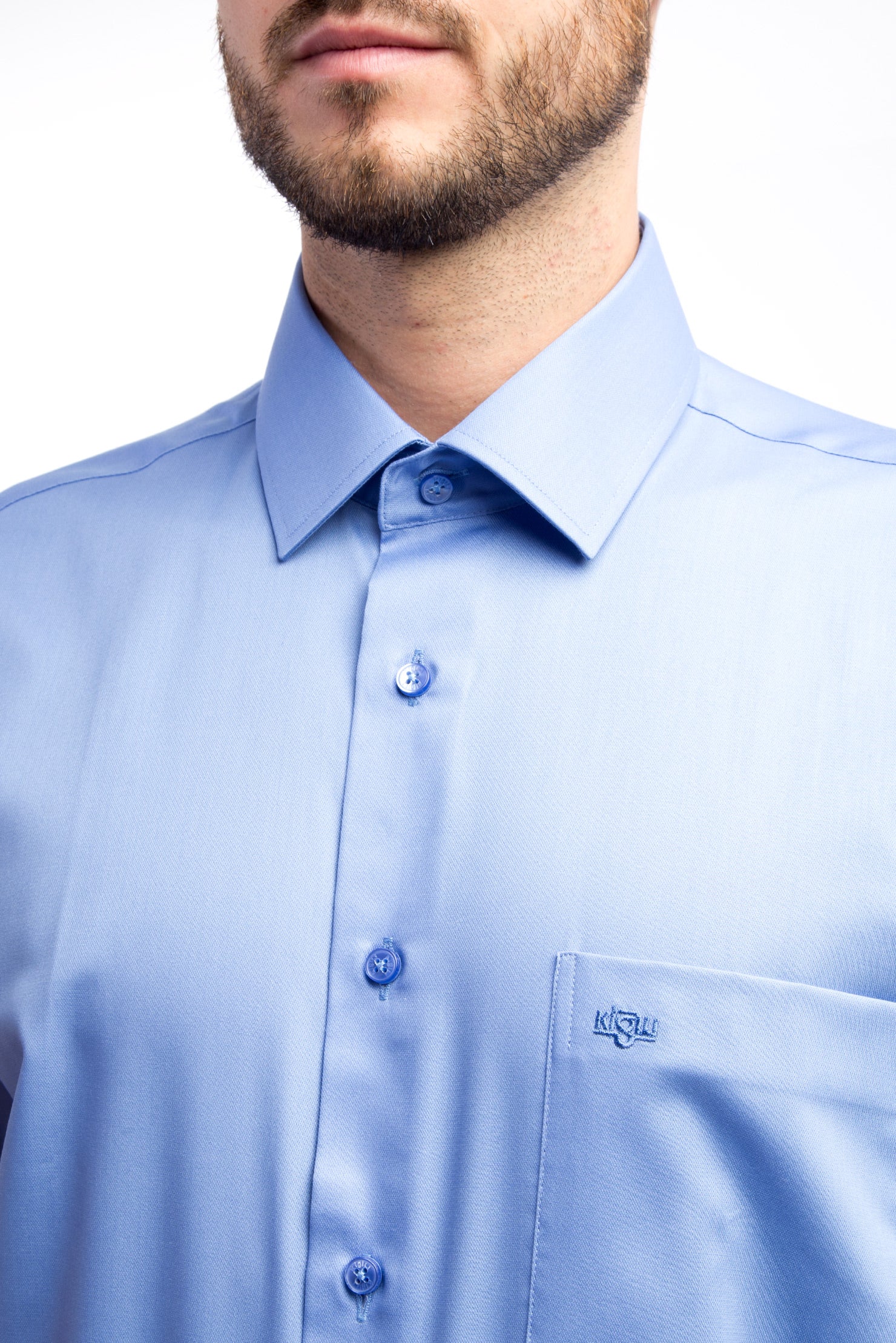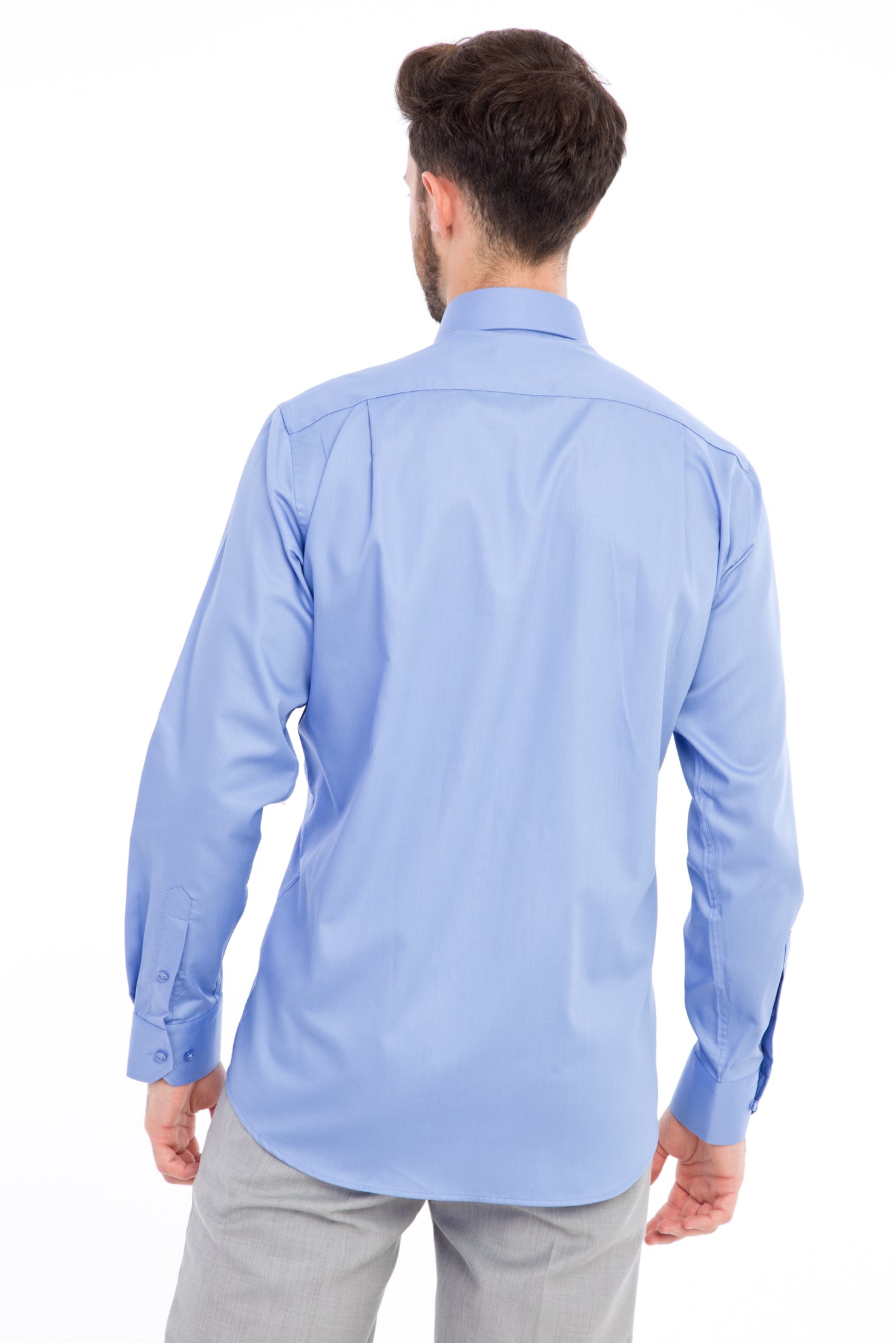 Mavi Uzun Kol Non Iron Saten Klasik Gömlek