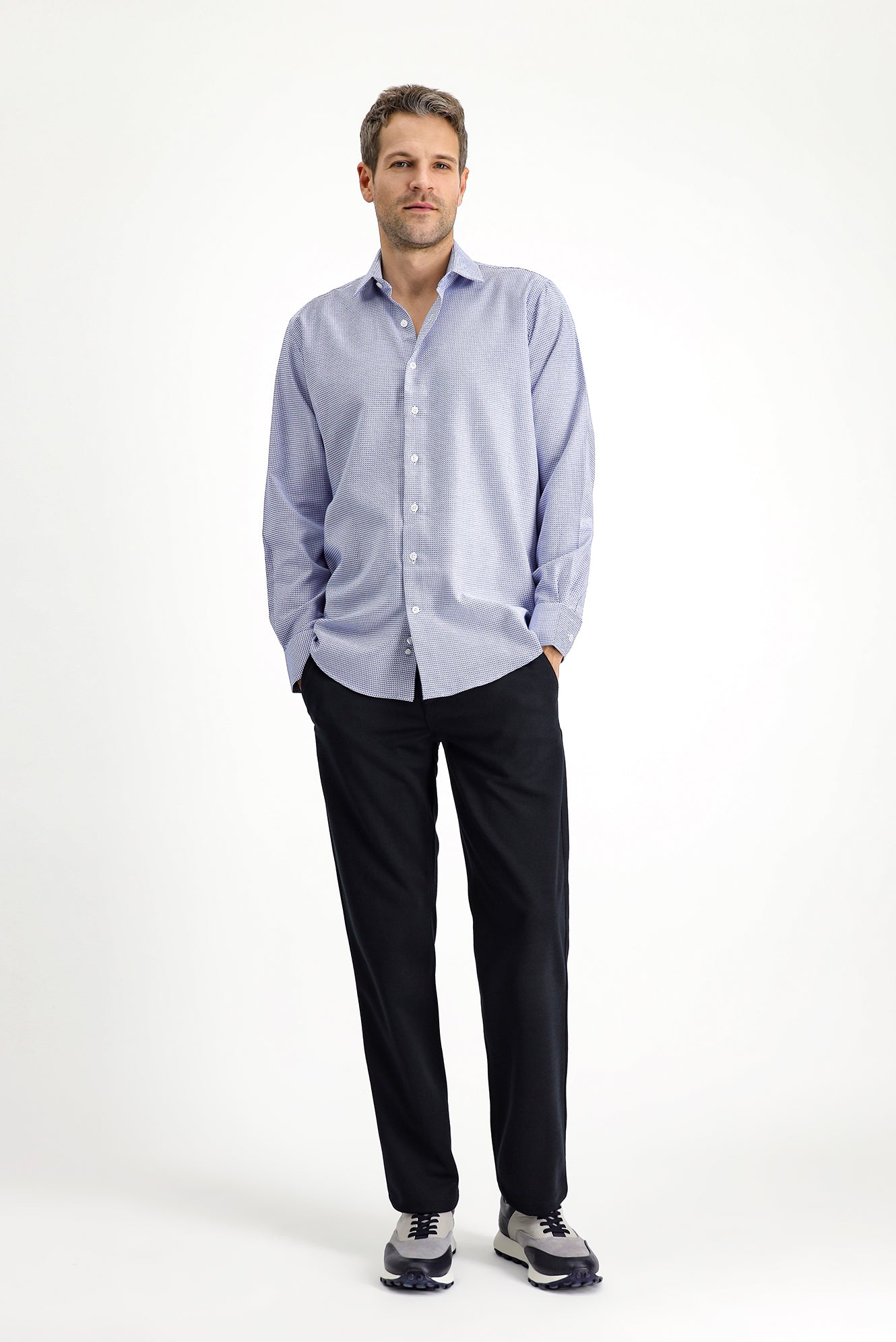 Mavi Uzun Kol Regular Fit Desenli Pamuk Gömlek