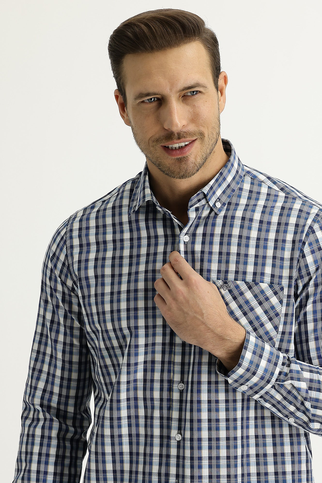 Mavi Uzun Kol Regular Fit Ekose Gömlek