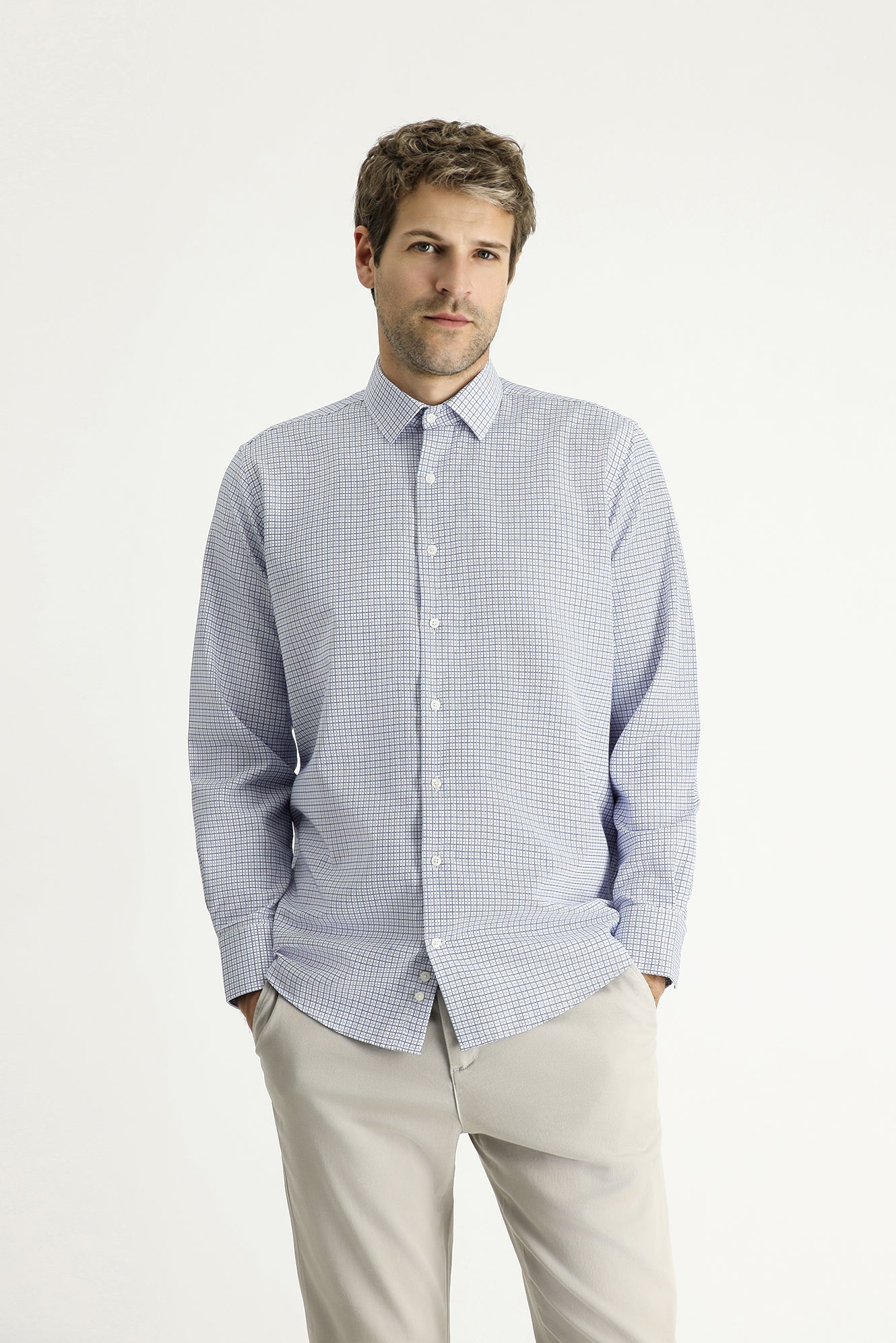 Mavi Uzun Kol Regular Fit Ekose Pamuklu Kolay Ütülenebilir Gömlek