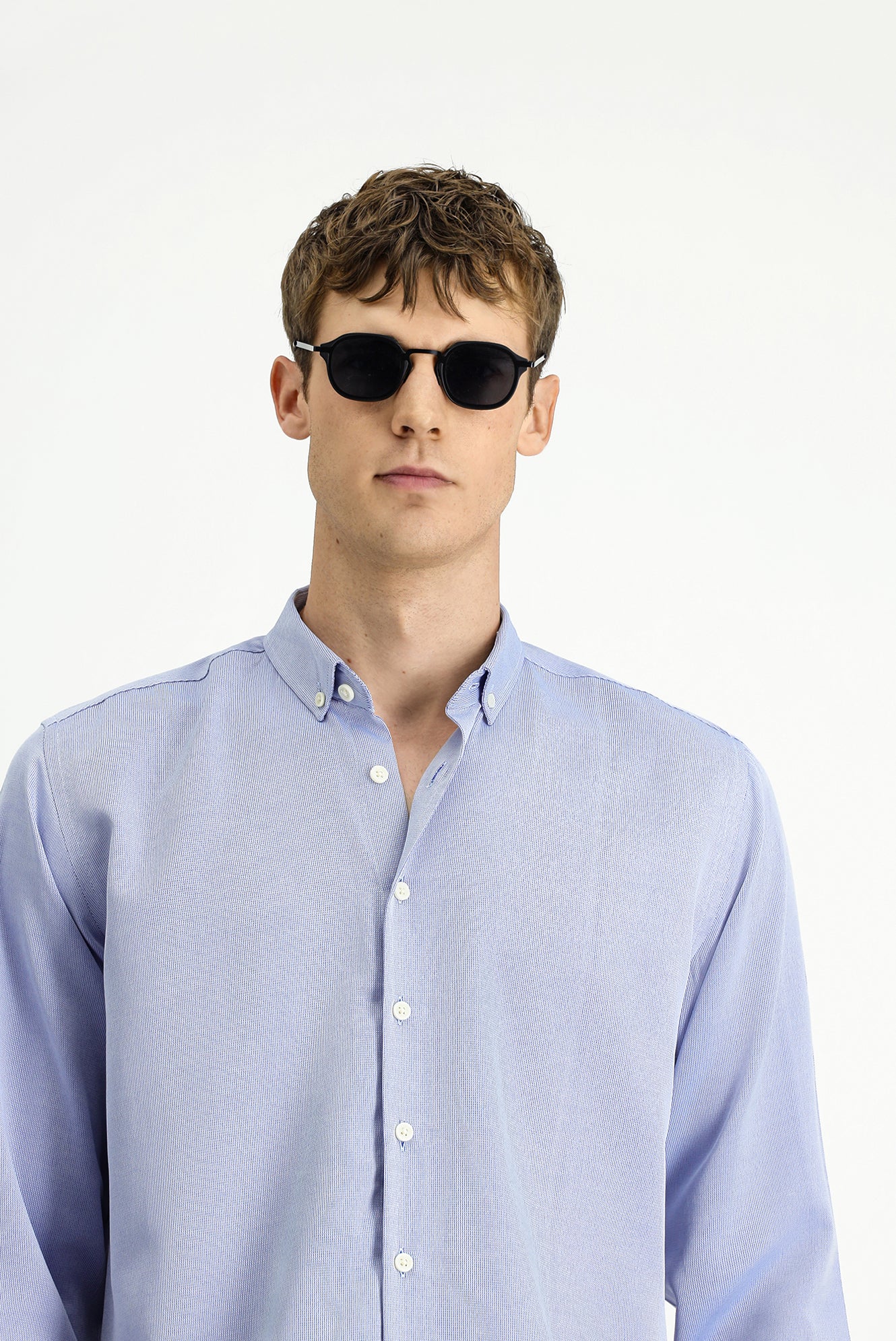 Mavi Uzun Kol Regular Fit Pamuklu Kolay Ütülenebilir Gömlek