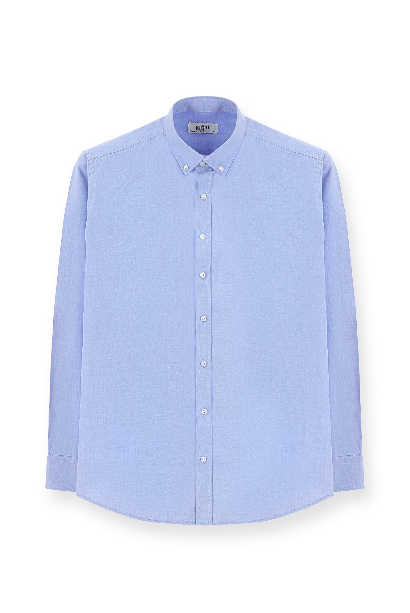 Mavi Uzun Kol Regular Fit Spor Pamuk Oxford Düğmeli Yaka Gömlek