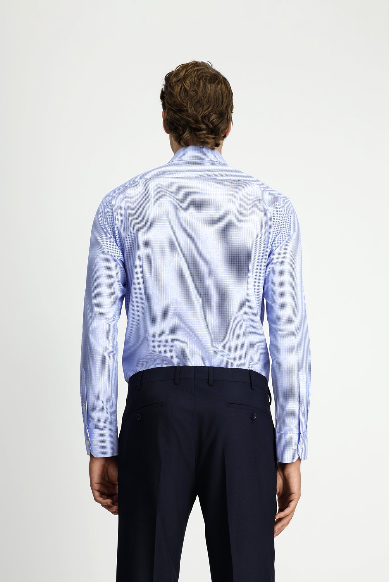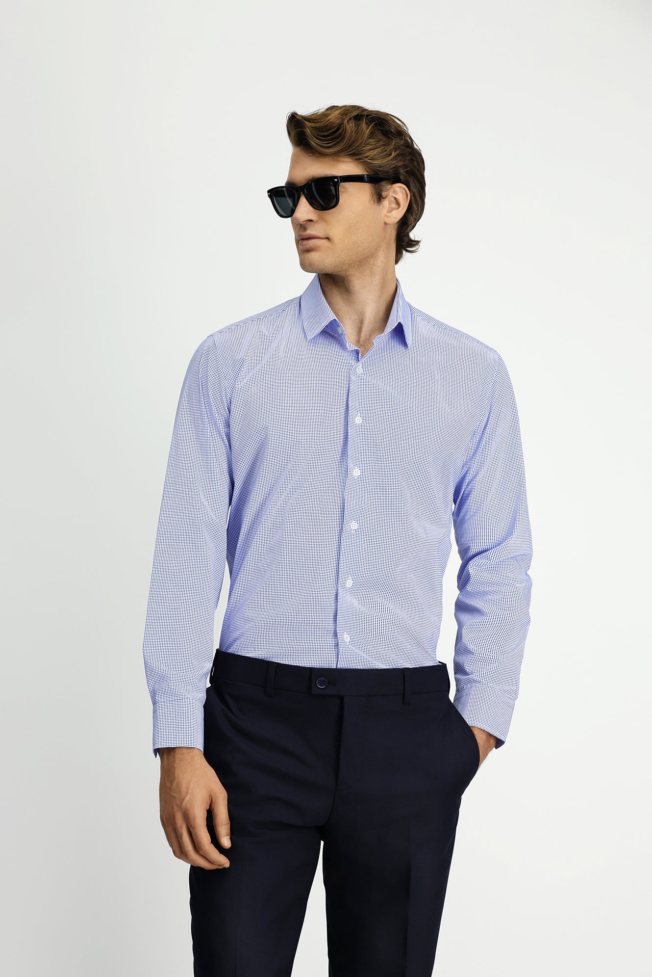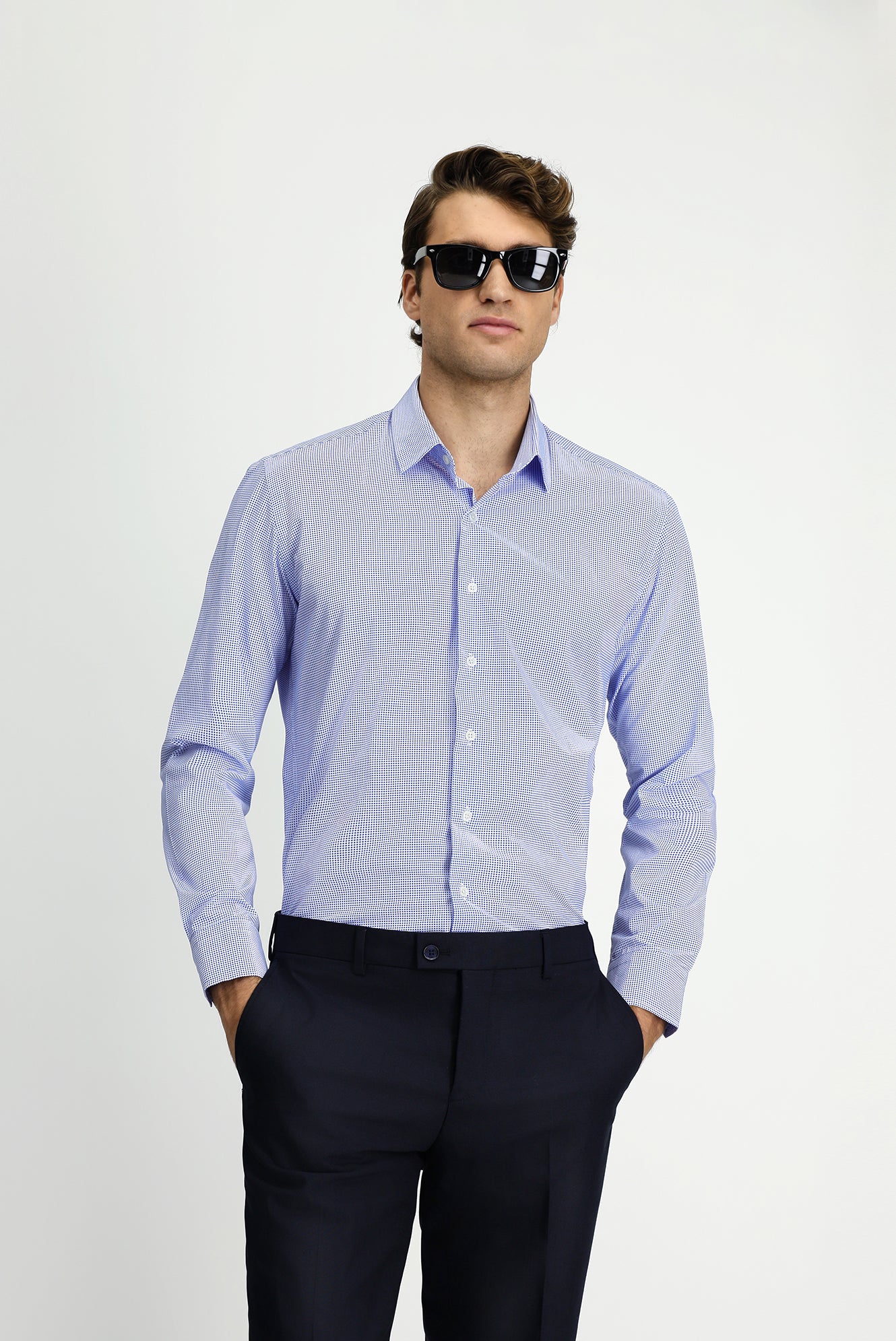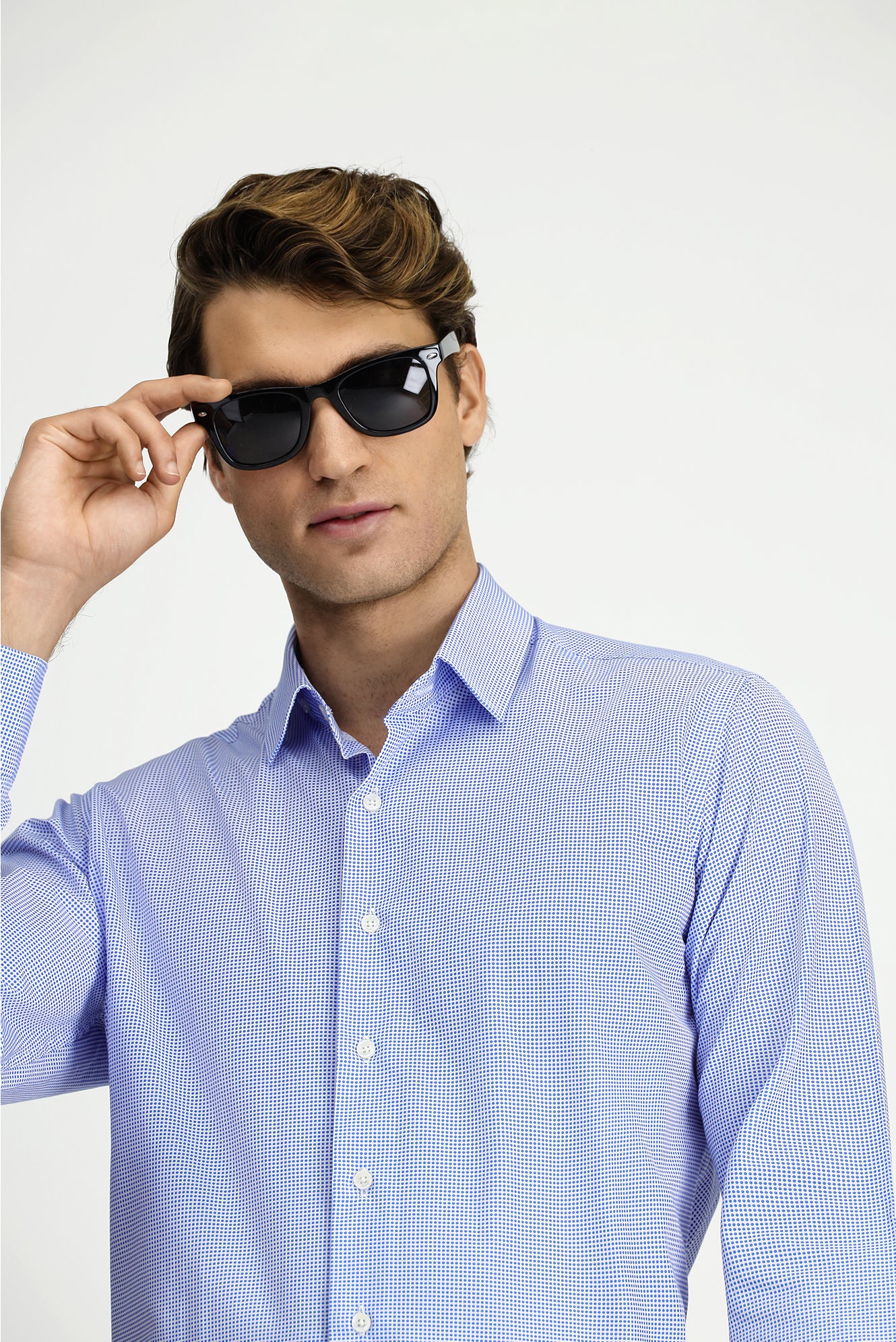 Mavi Uzun Kol Slim Fit Dar Kesim Baskılı Pamuk Gömlek
