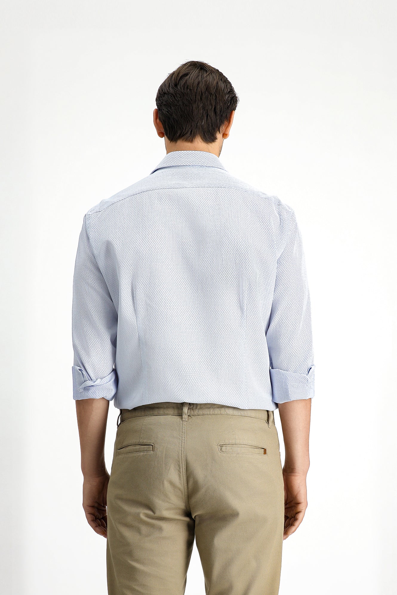 Mavi Uzun Kol Slim Fit Dar Kesim Klasik Desenli Pamuk Gömlek