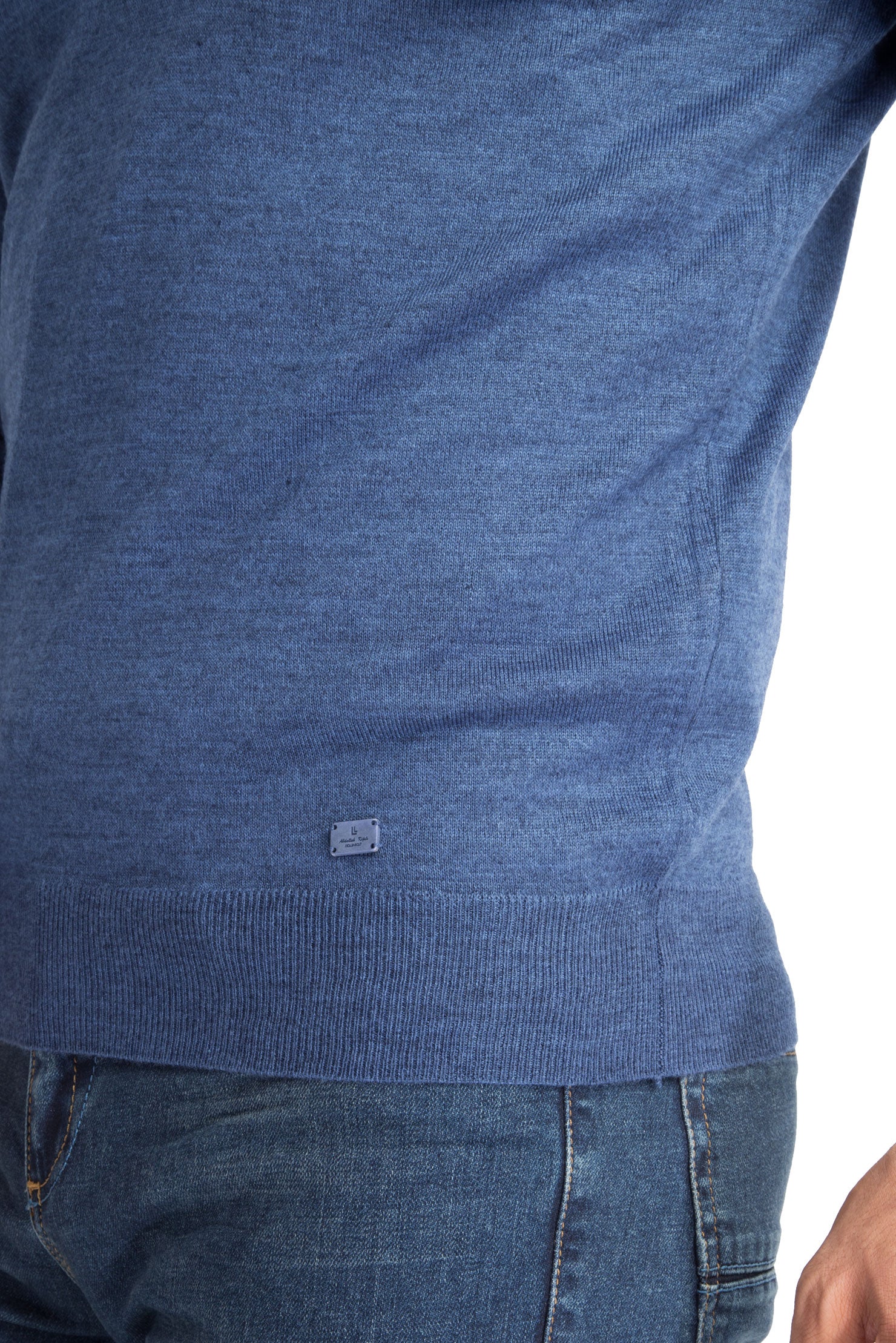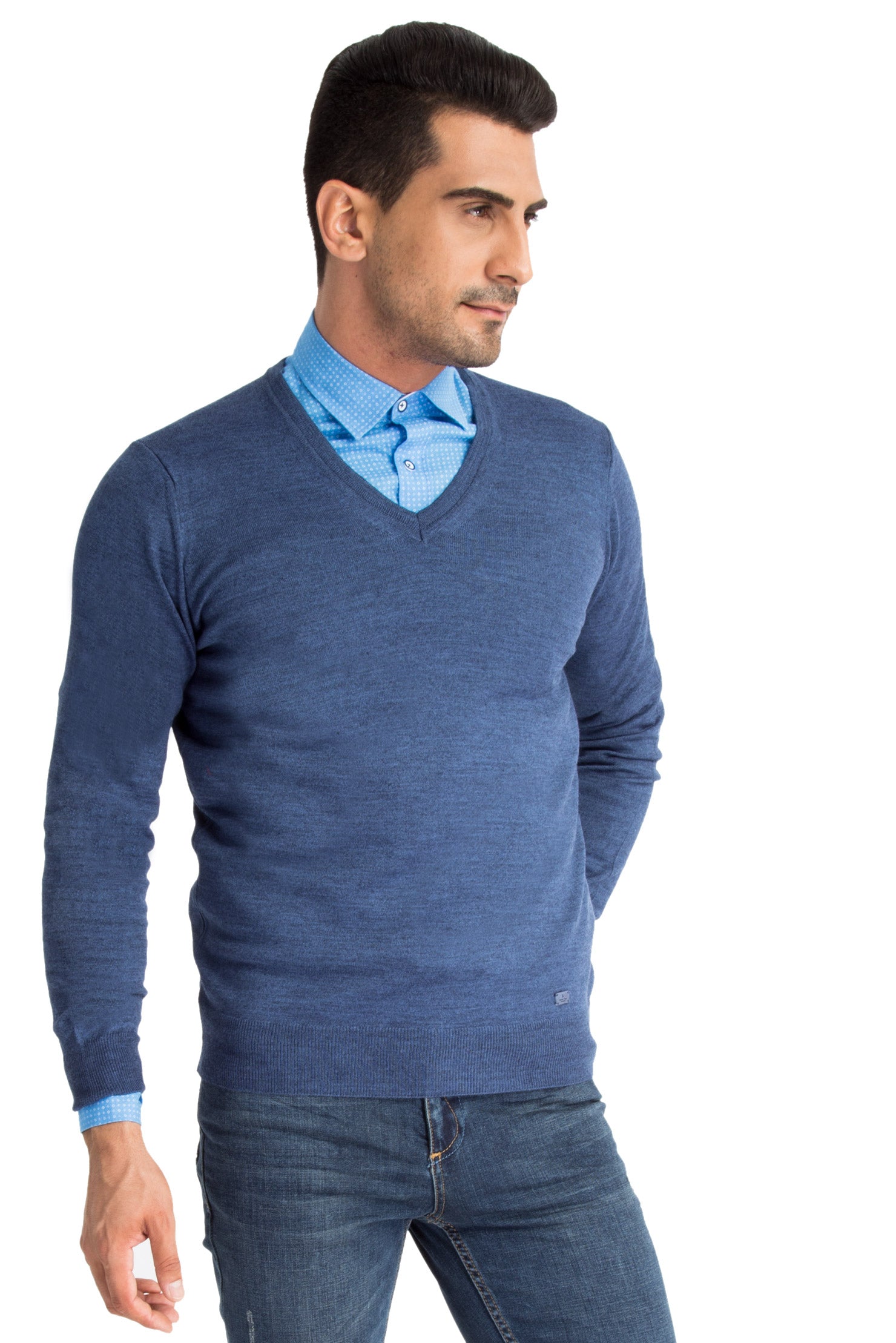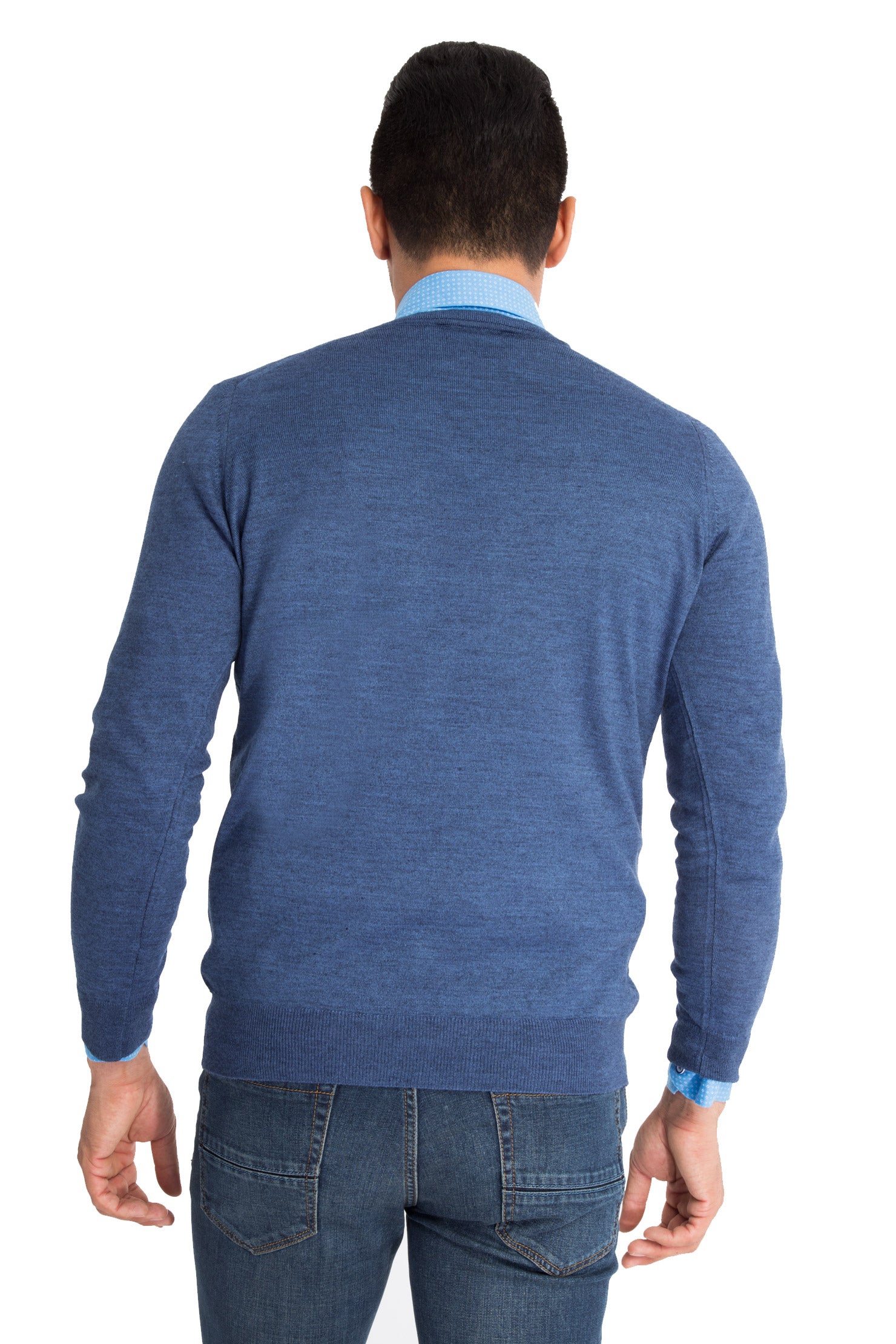 Mavi V Yaka Regular Fit Yünlü Triko Kazak