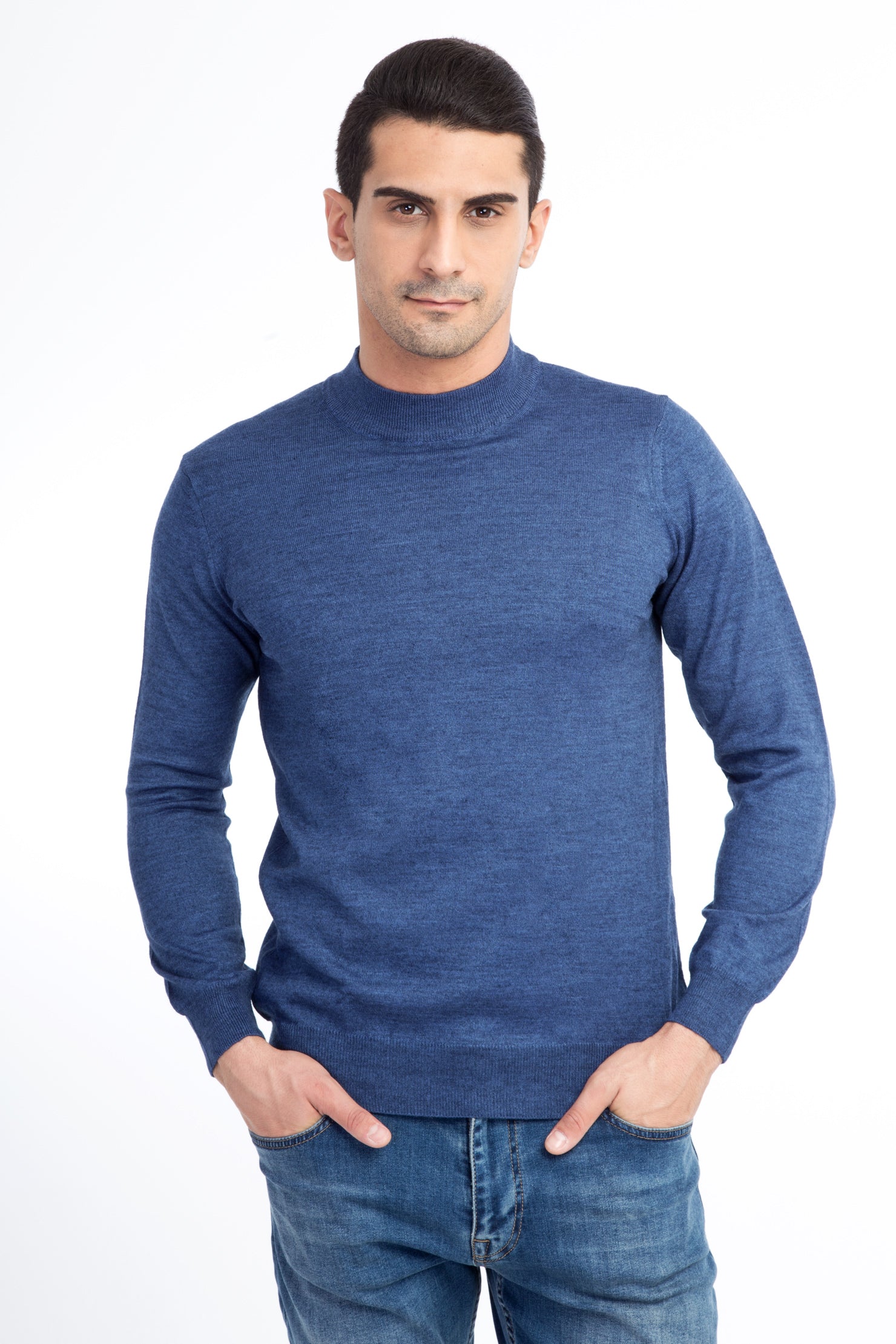 Mavi Yarım Balıkçı Yaka Yünlü Triko Kazak