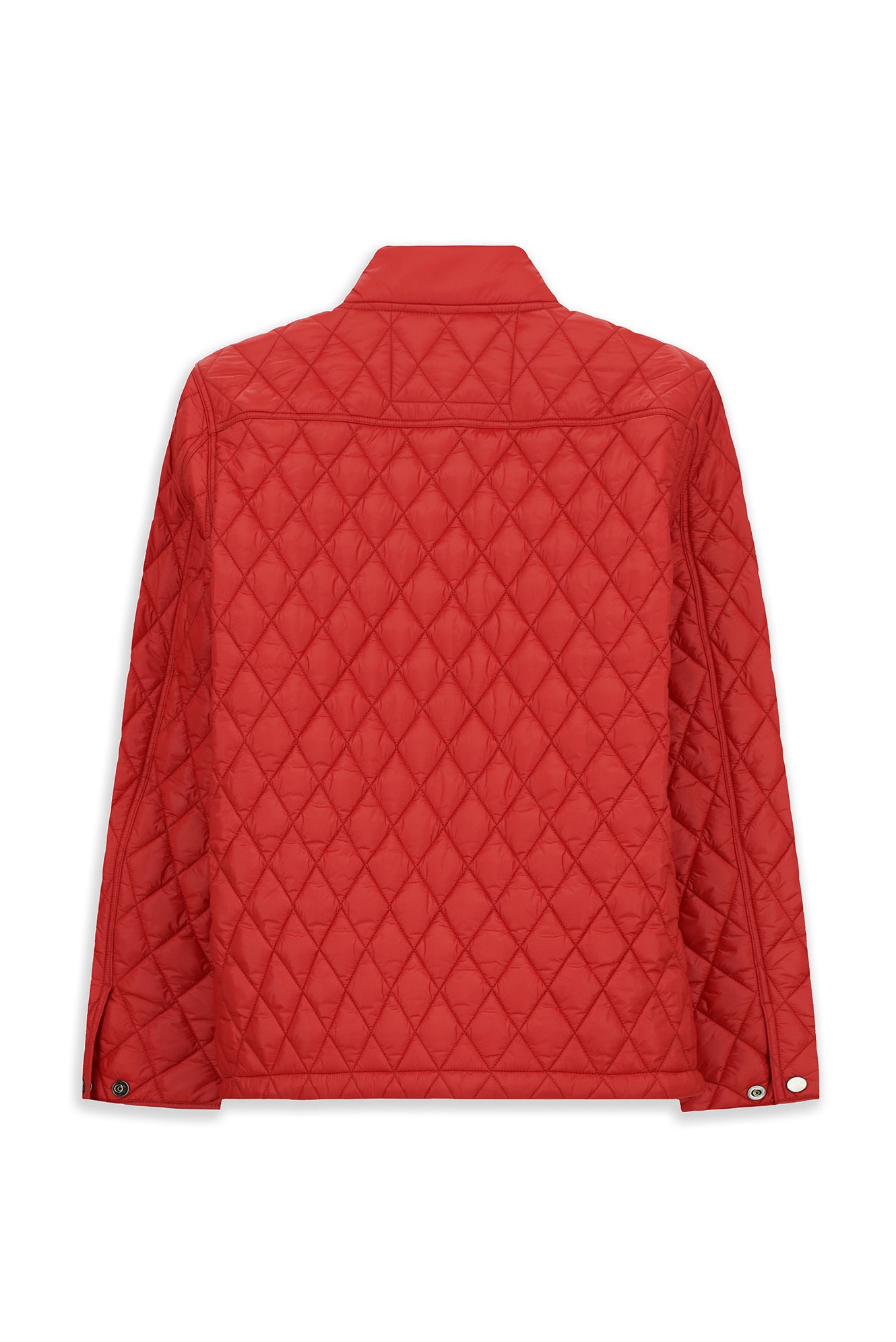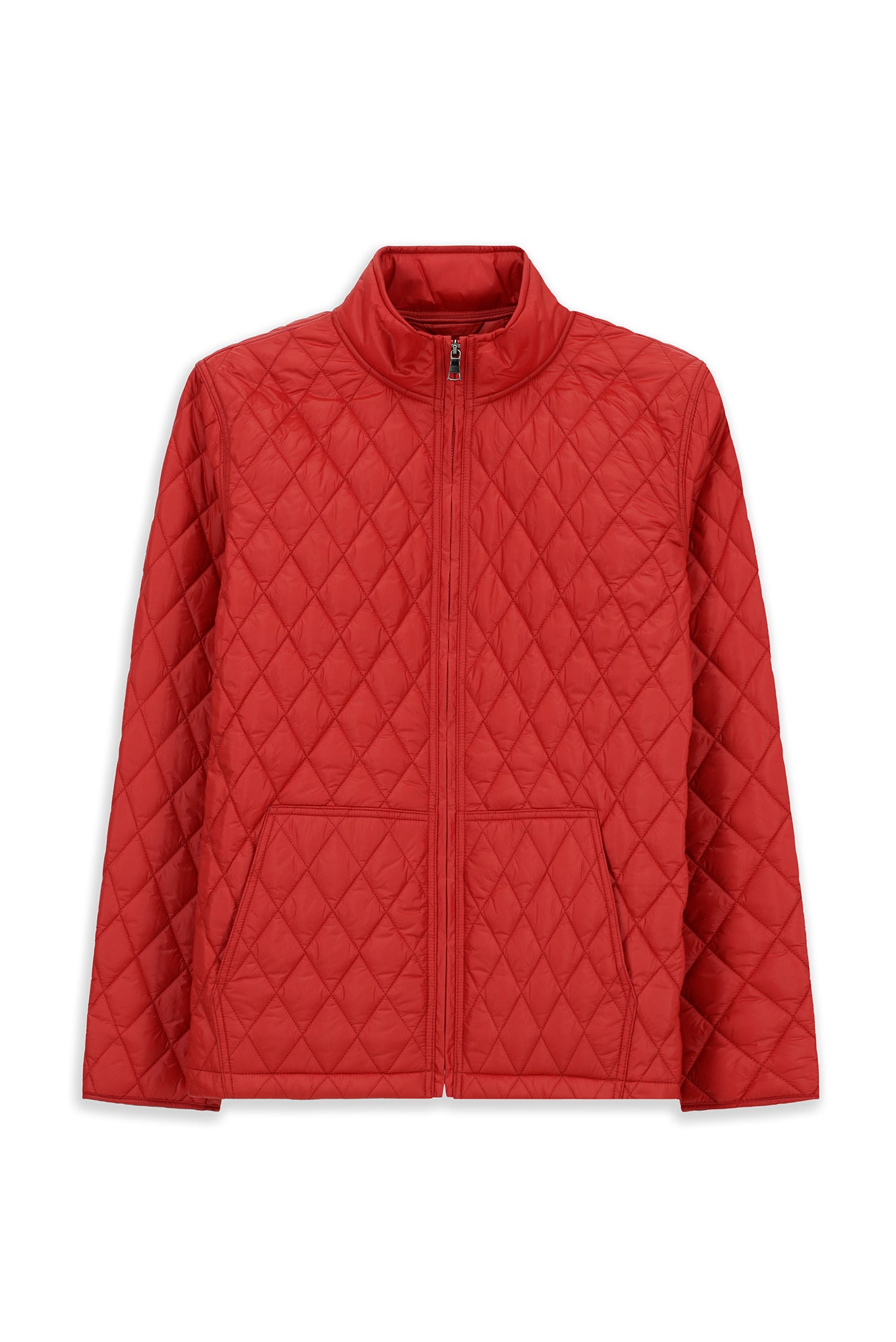 Mercan Kırmızı Dik Yaka Cepli Fermuarlı Rüzgar Geçirmez Kapitone Spor Mont
