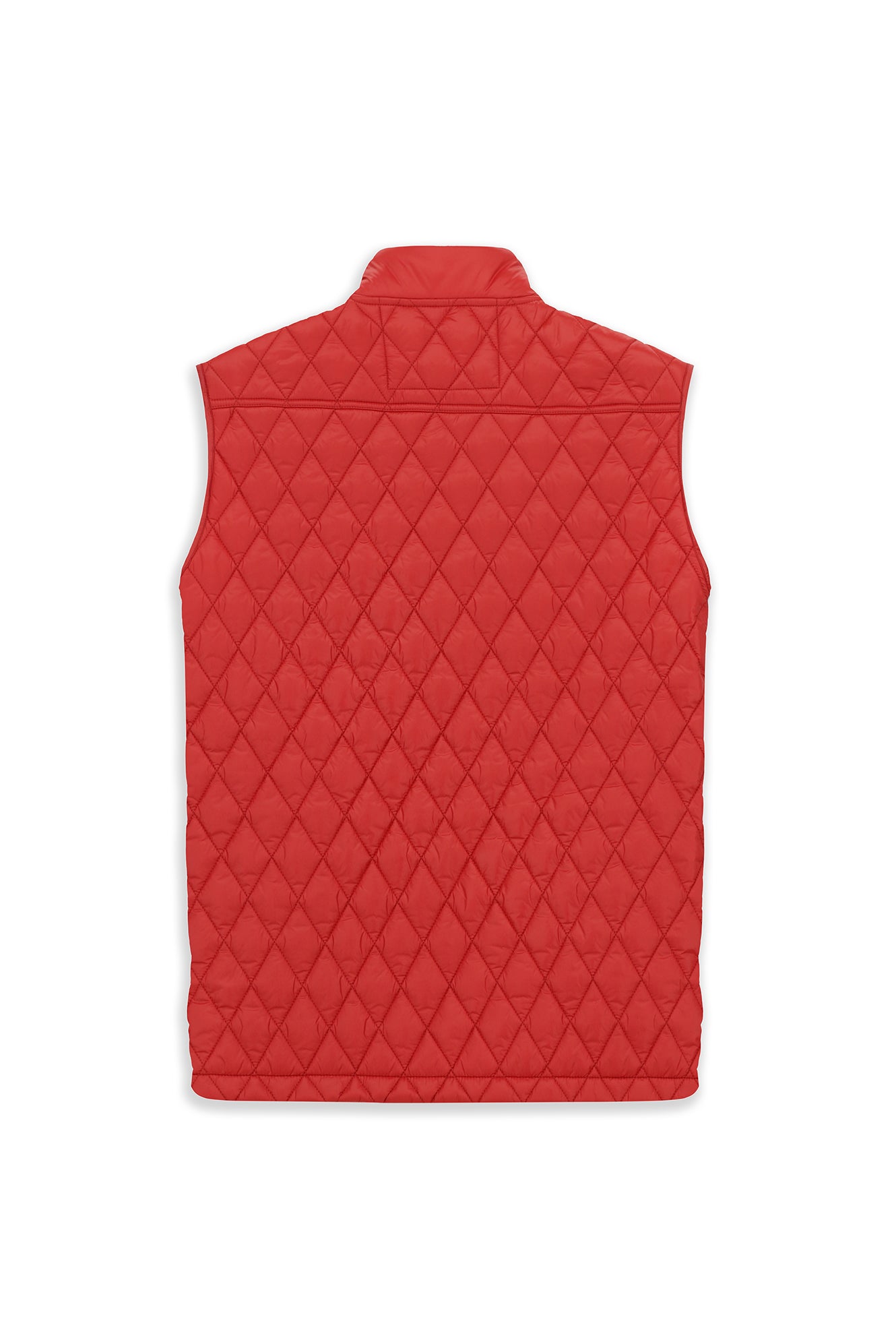 Mercan Kırmızı Dik Yaka Cepli Fermuarlı Kapitone Spor Yelek