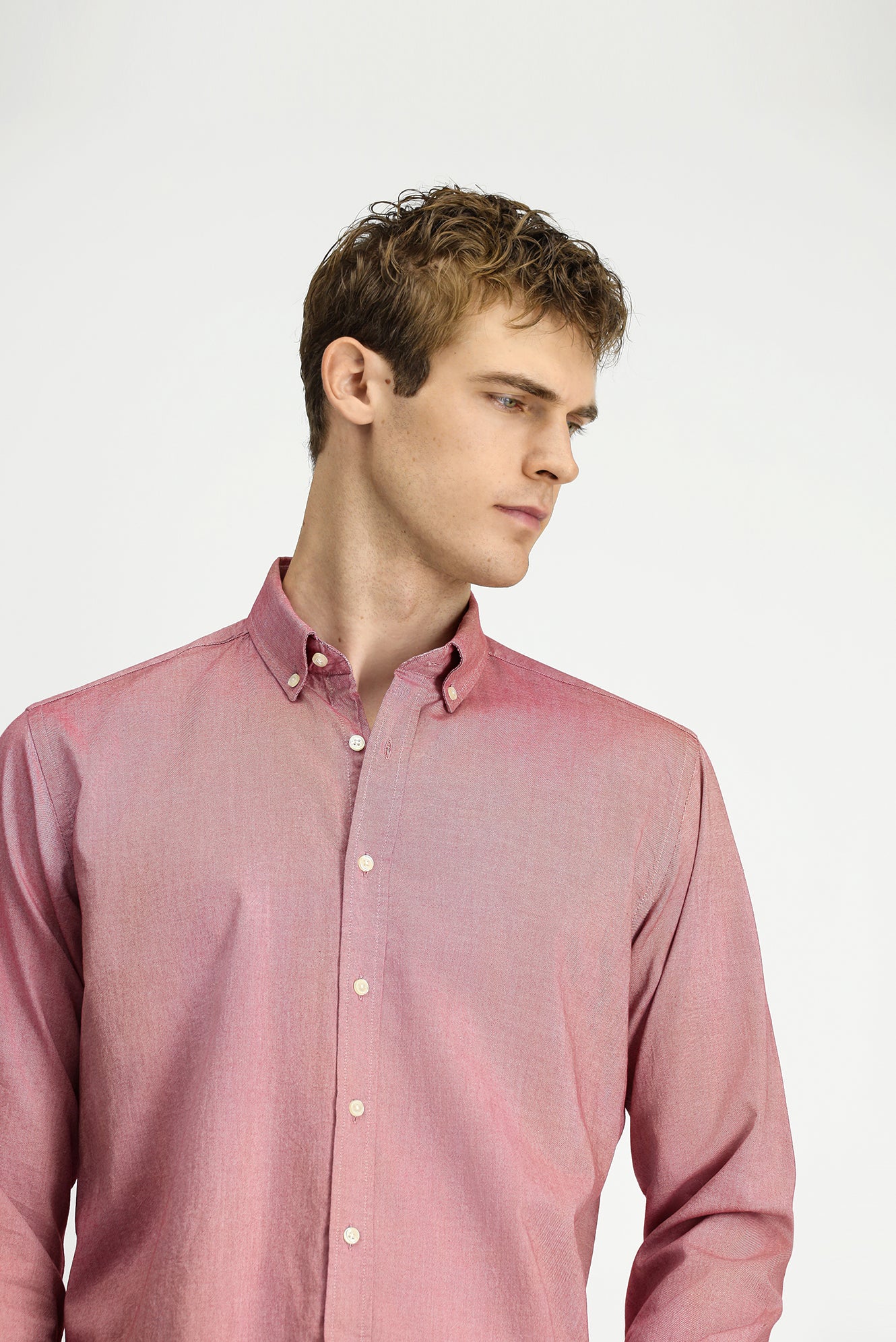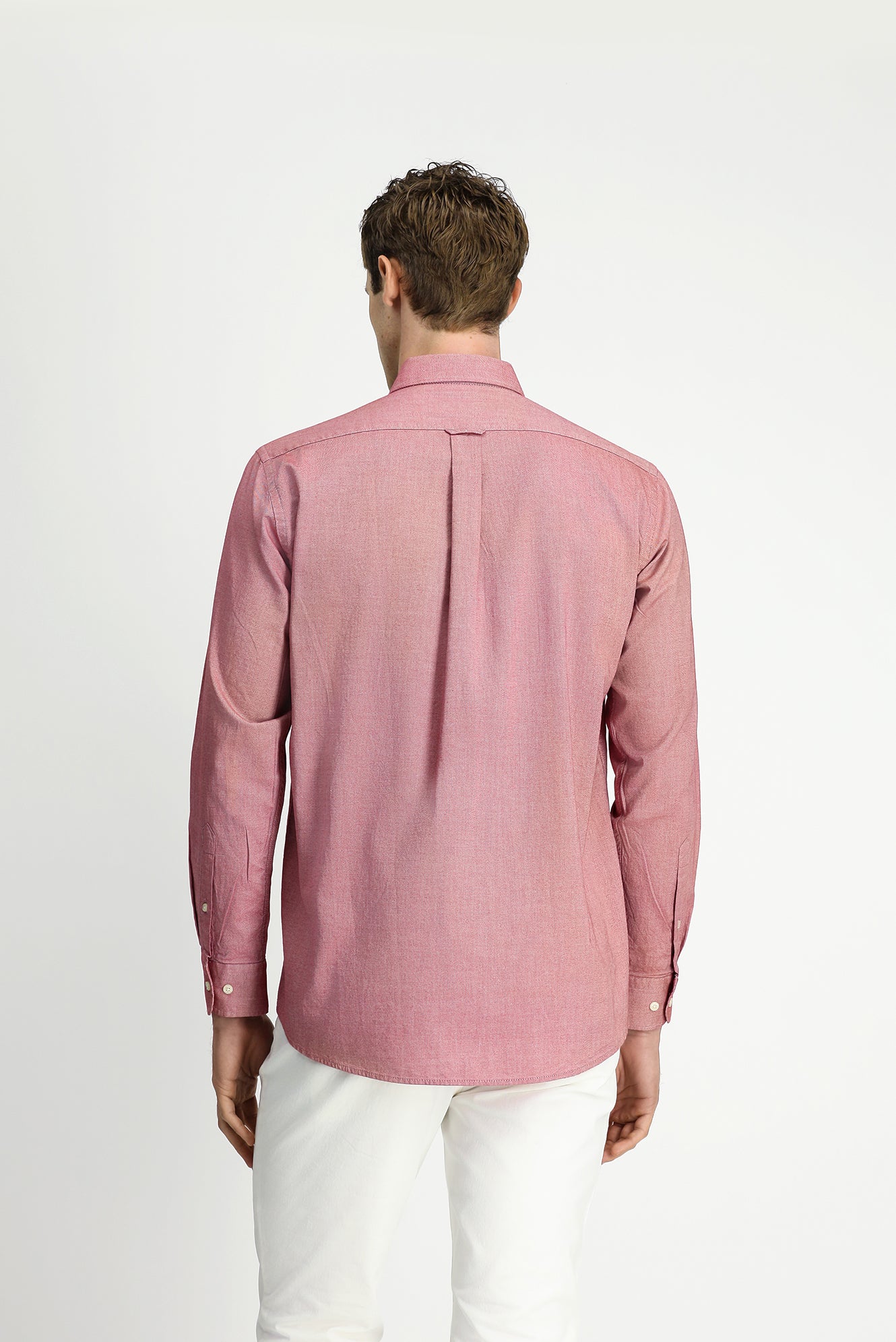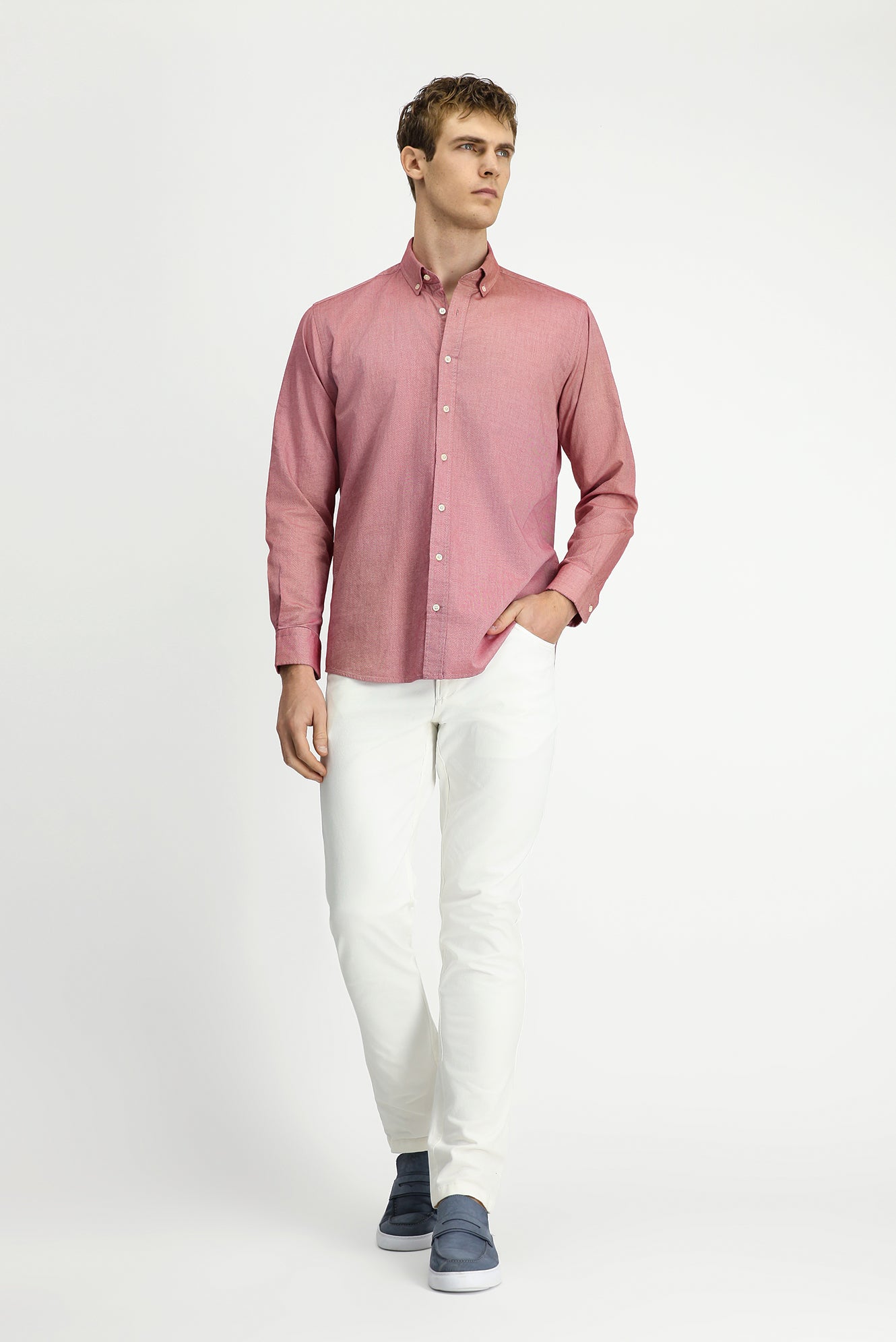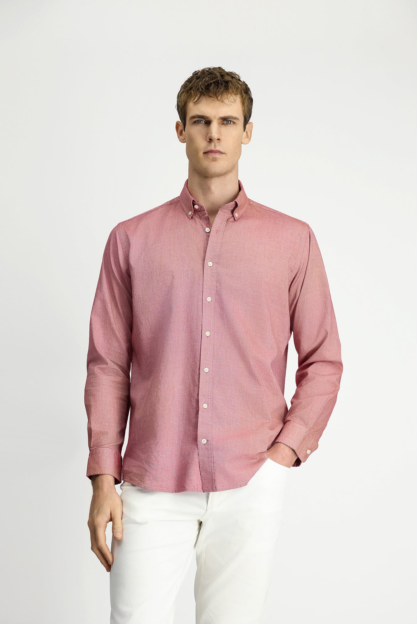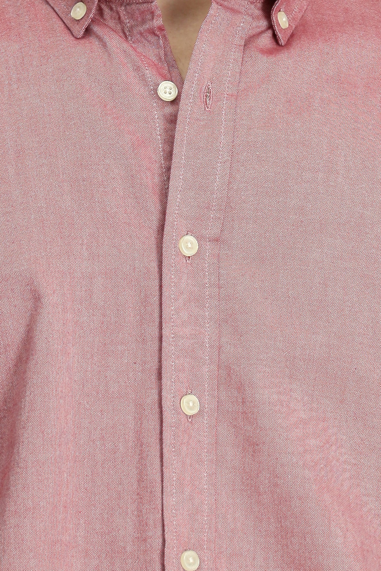 Mercan Kırmızı Uzun Kol Regular Fit Düğmeli Yaka Oxford Pamuk Gömlek
