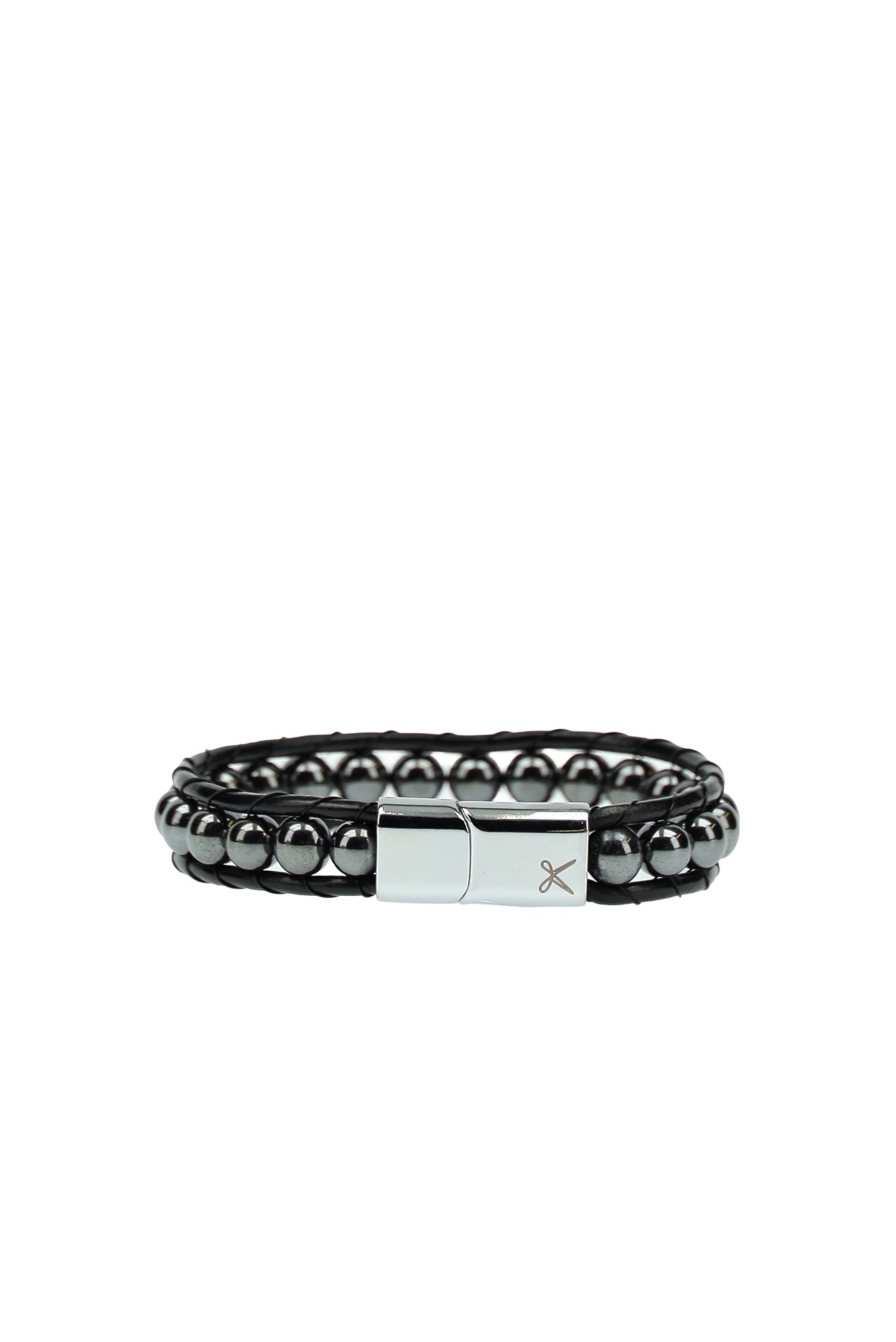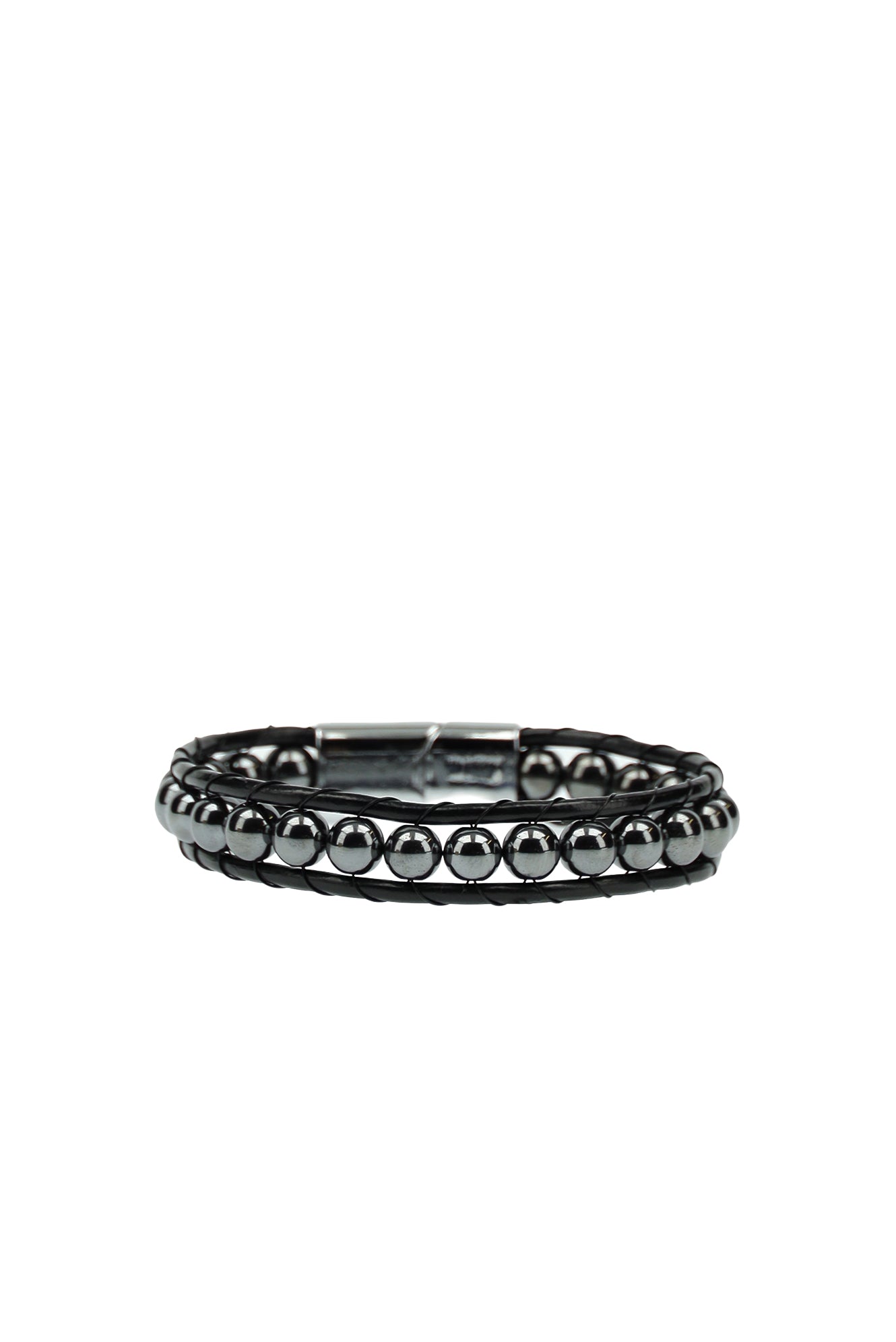 Metalik Gri 2'li Deri Boncuk Bileklik