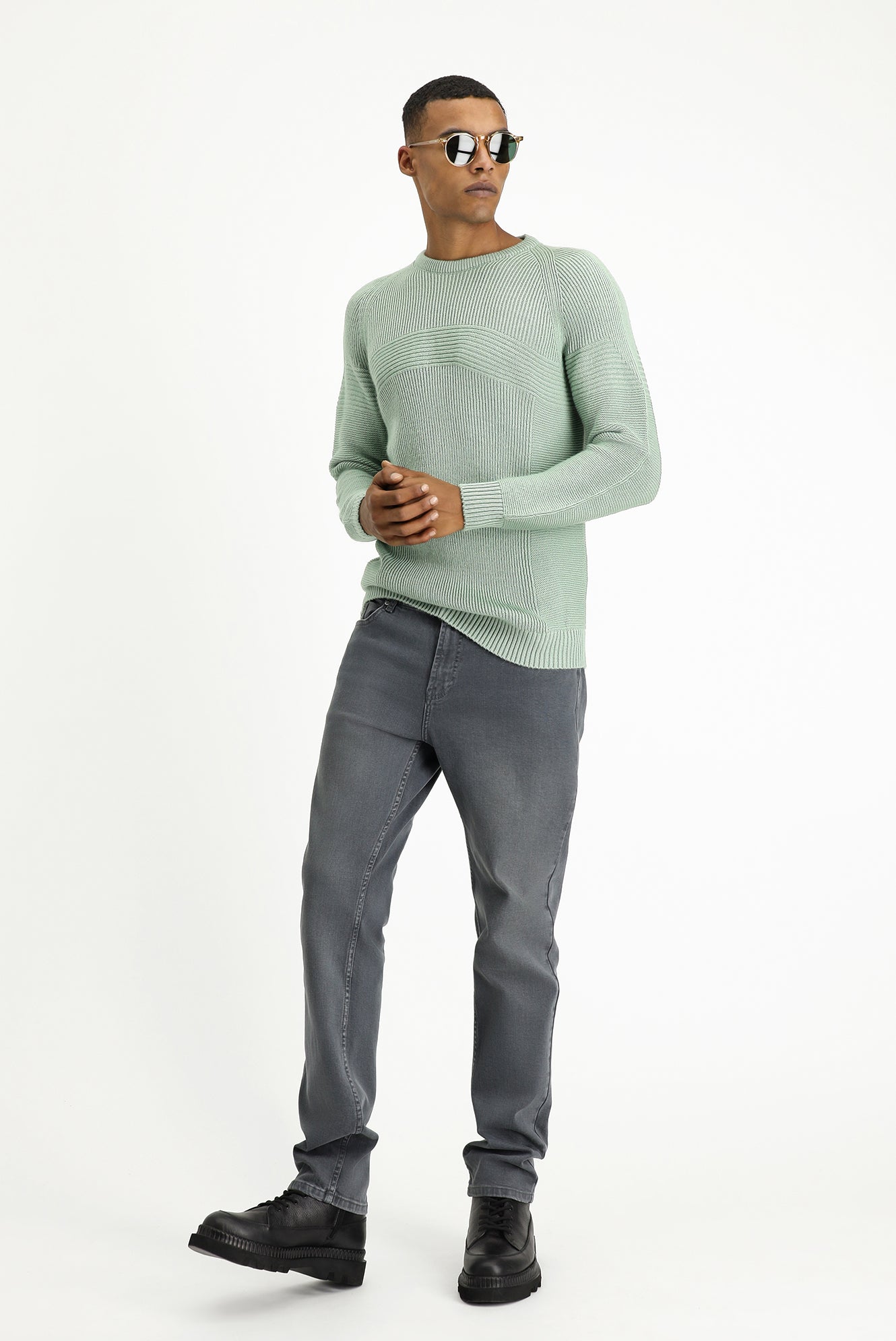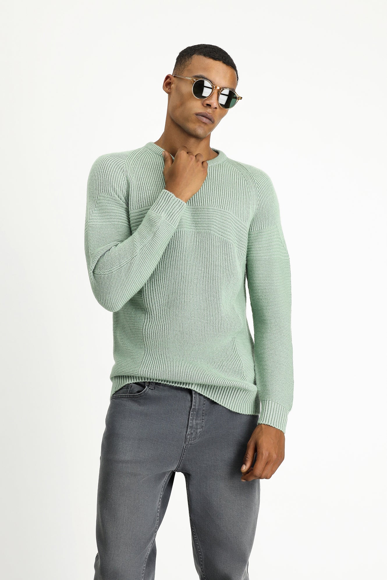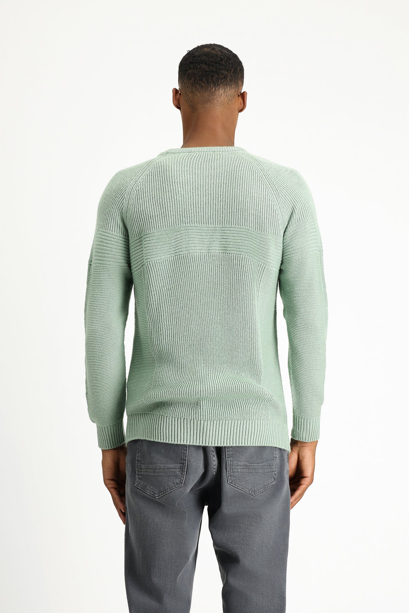 Mint Yeşili Bisiklet Yaka Regular Fit Dikişsiz Desenli Triko Kazak