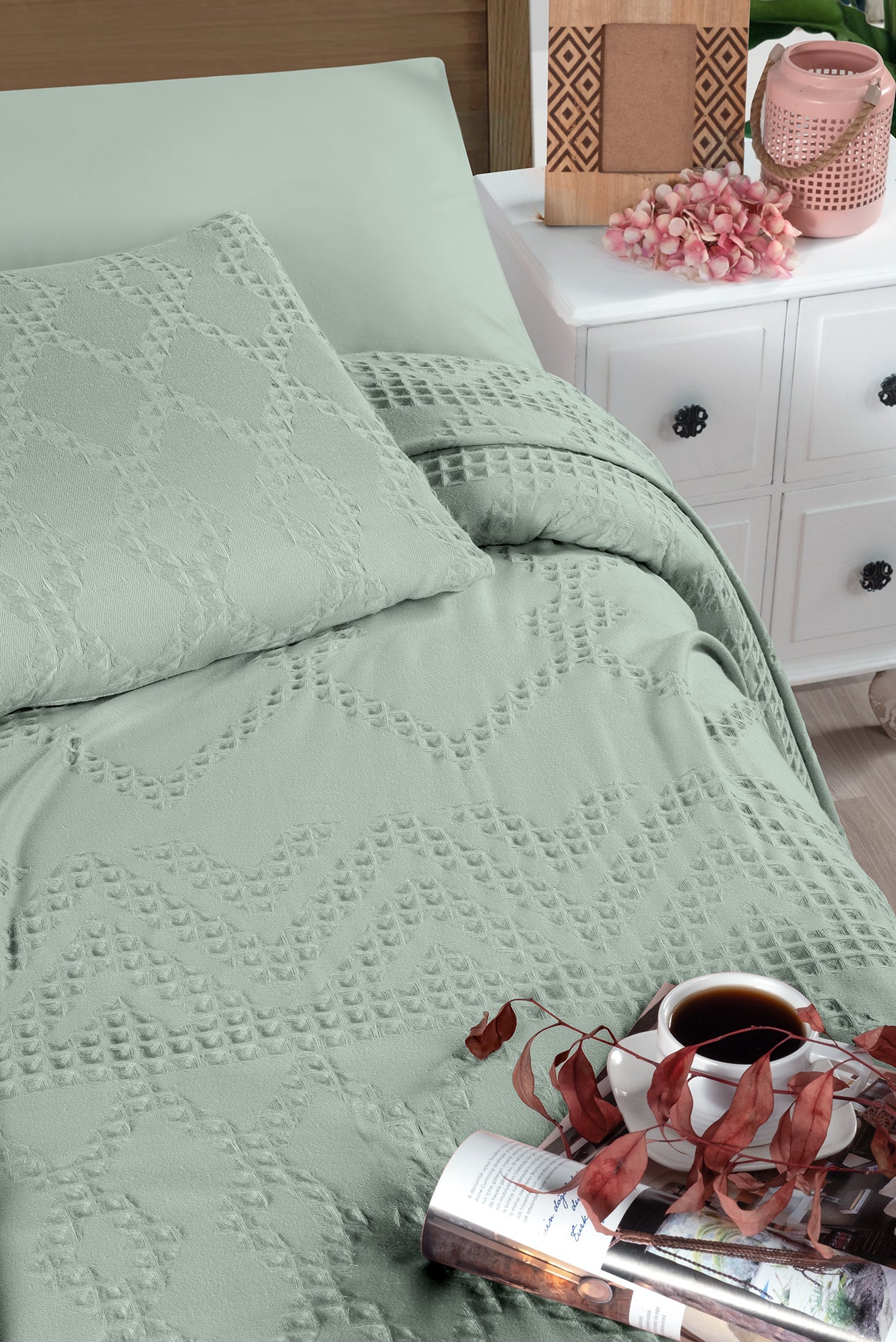 Mint Yeşili Tek Kişilik Pamuk Yatak Örtüsü Seti / Mevsimlik Pike Seti - 1 Adet Yaslık Kılıflı (160*220 cm)