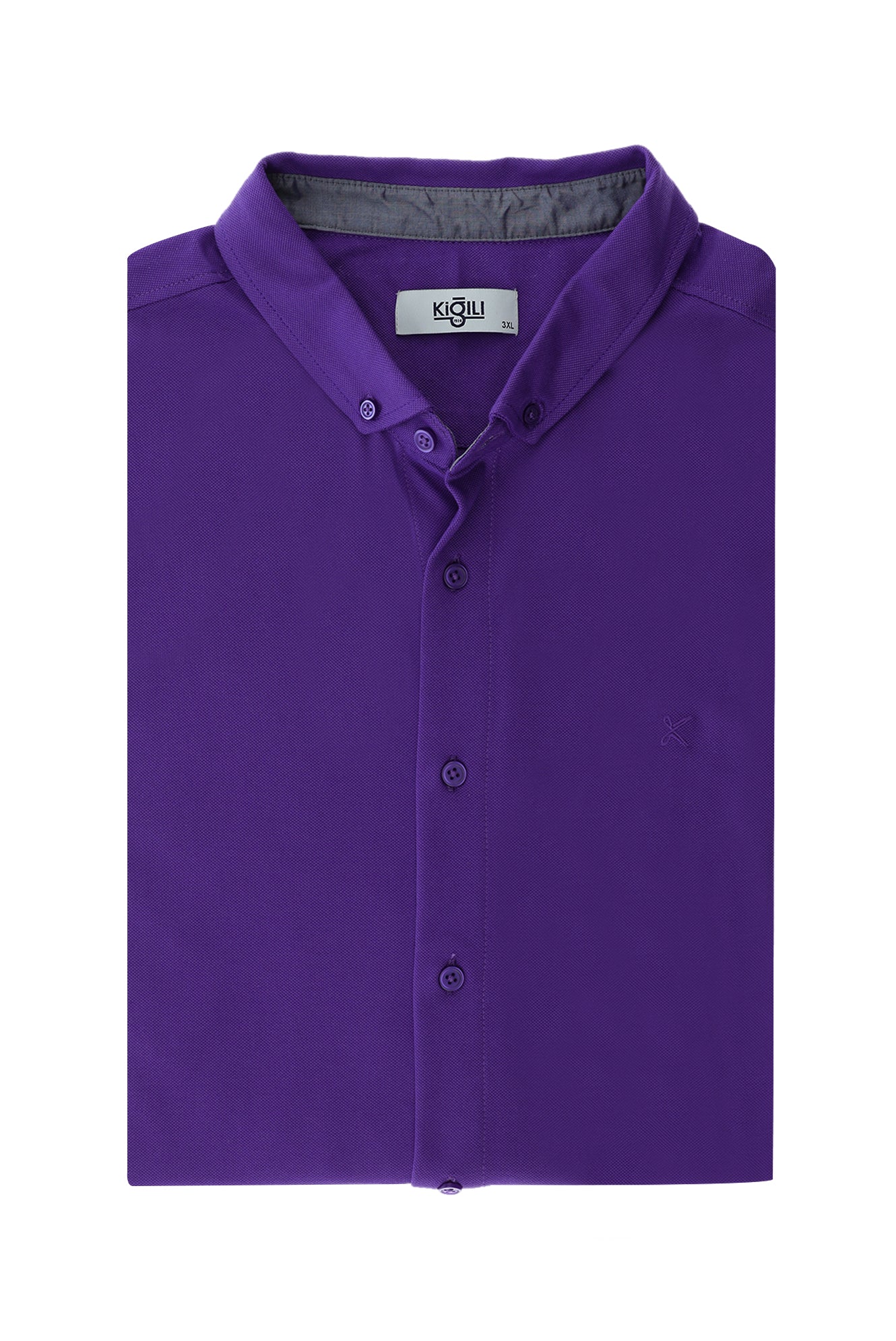 Mor Büyük Beden Polo Yaka Pamuklu Gömlek Tişört