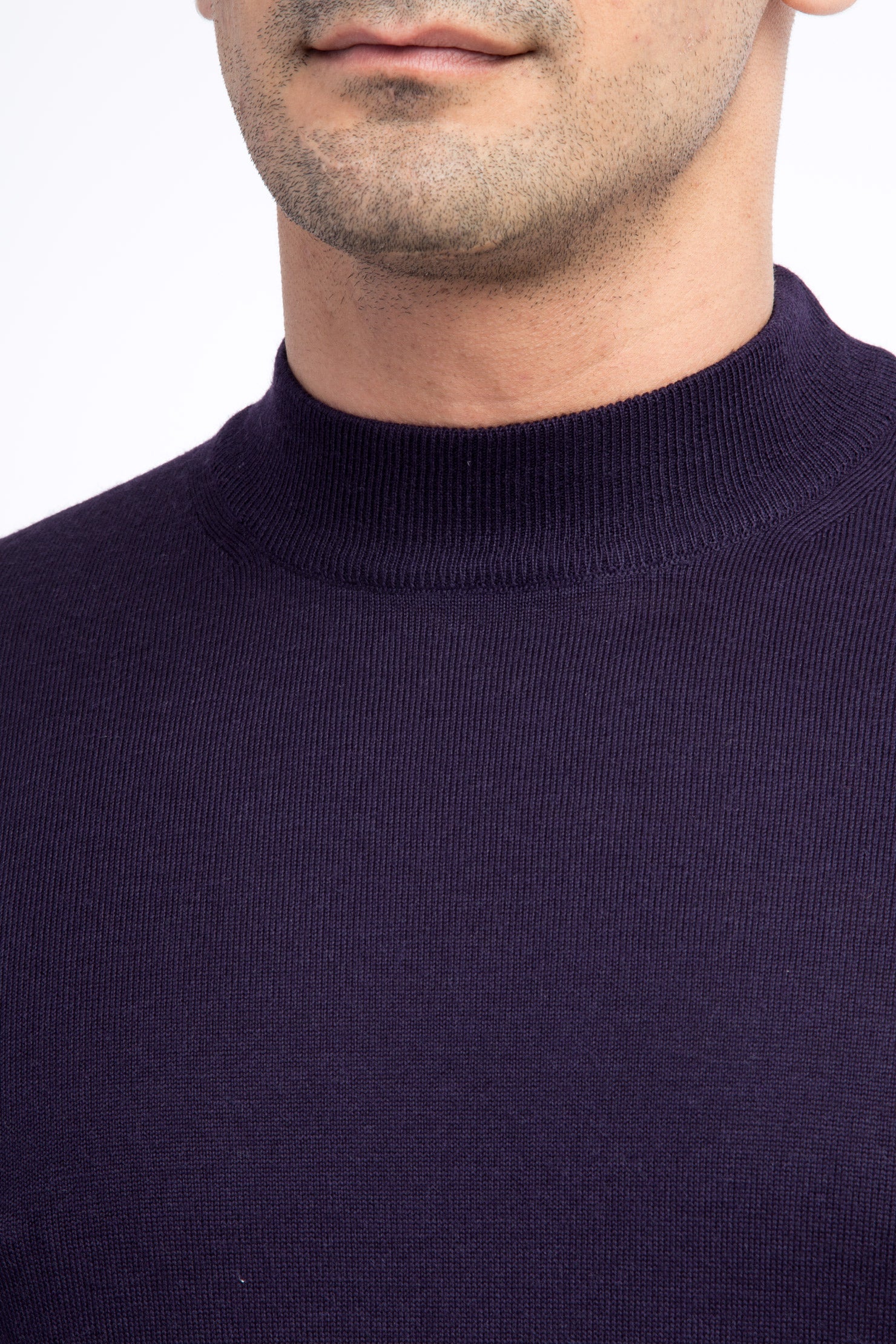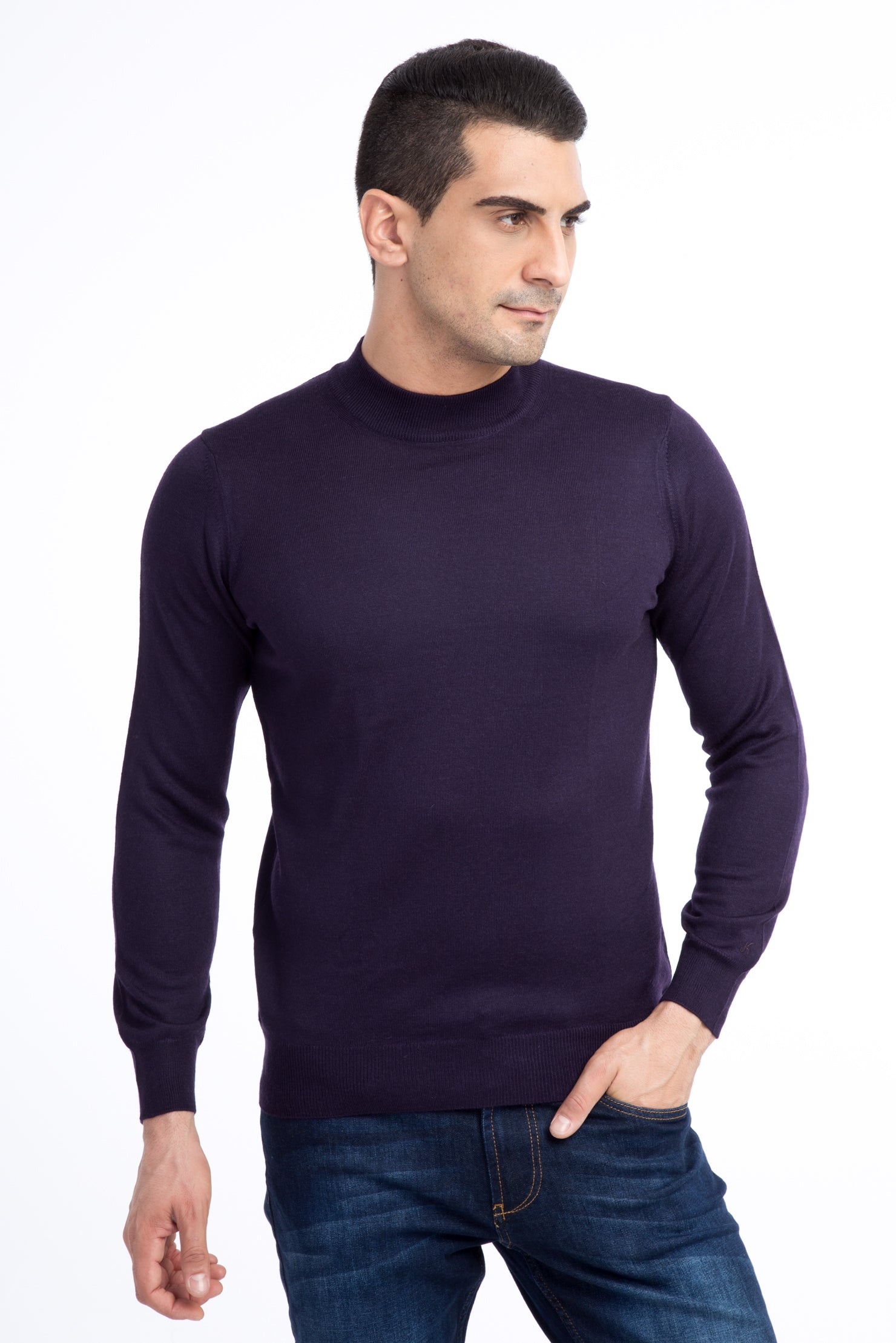 Mor Yarım Balıkçı Yaka Yünlü Triko Kazak