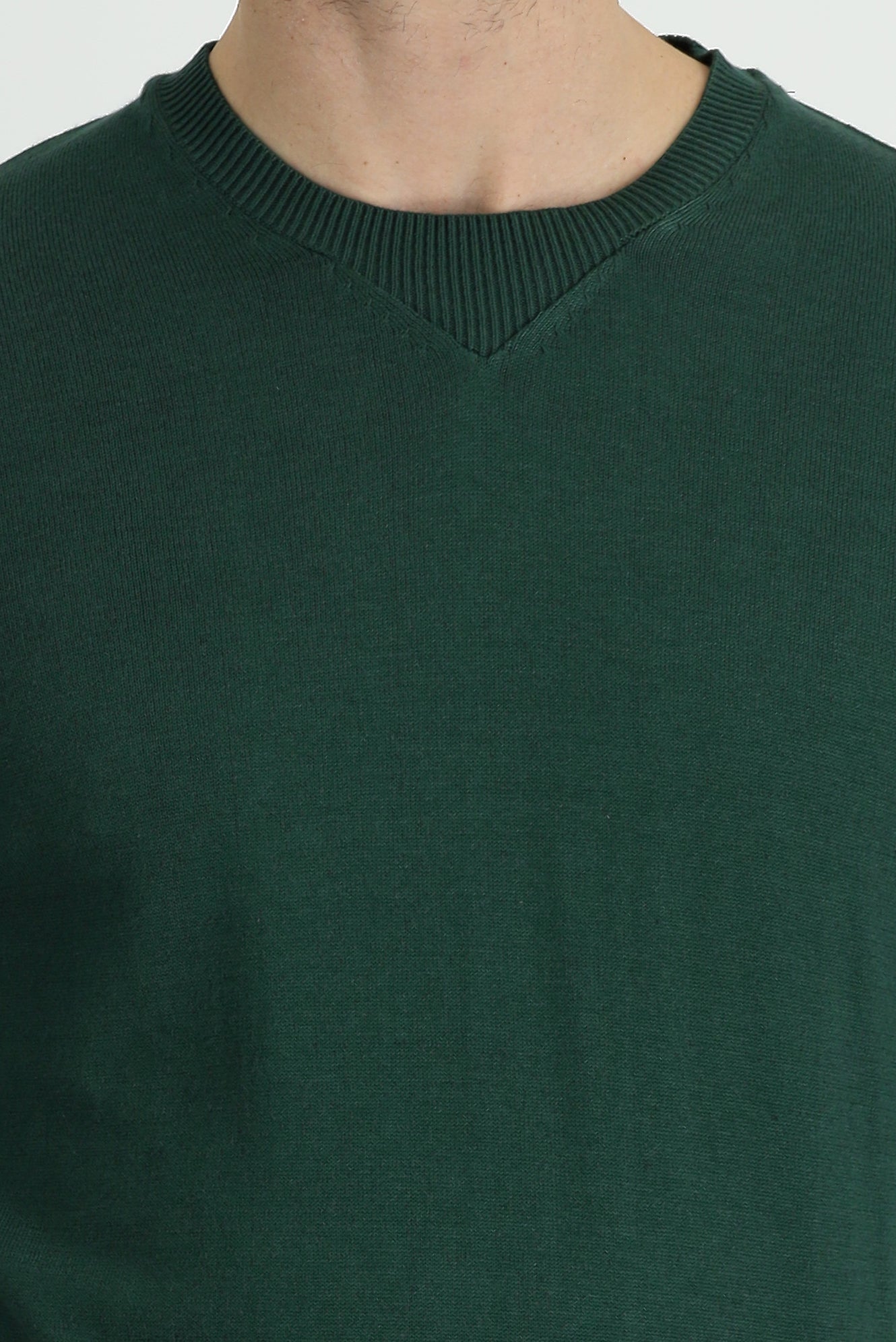 Orman Yeşili Bisiklet Yaka Slim Fit Dar Kesim Desenli Pamuklu Triko Kazak