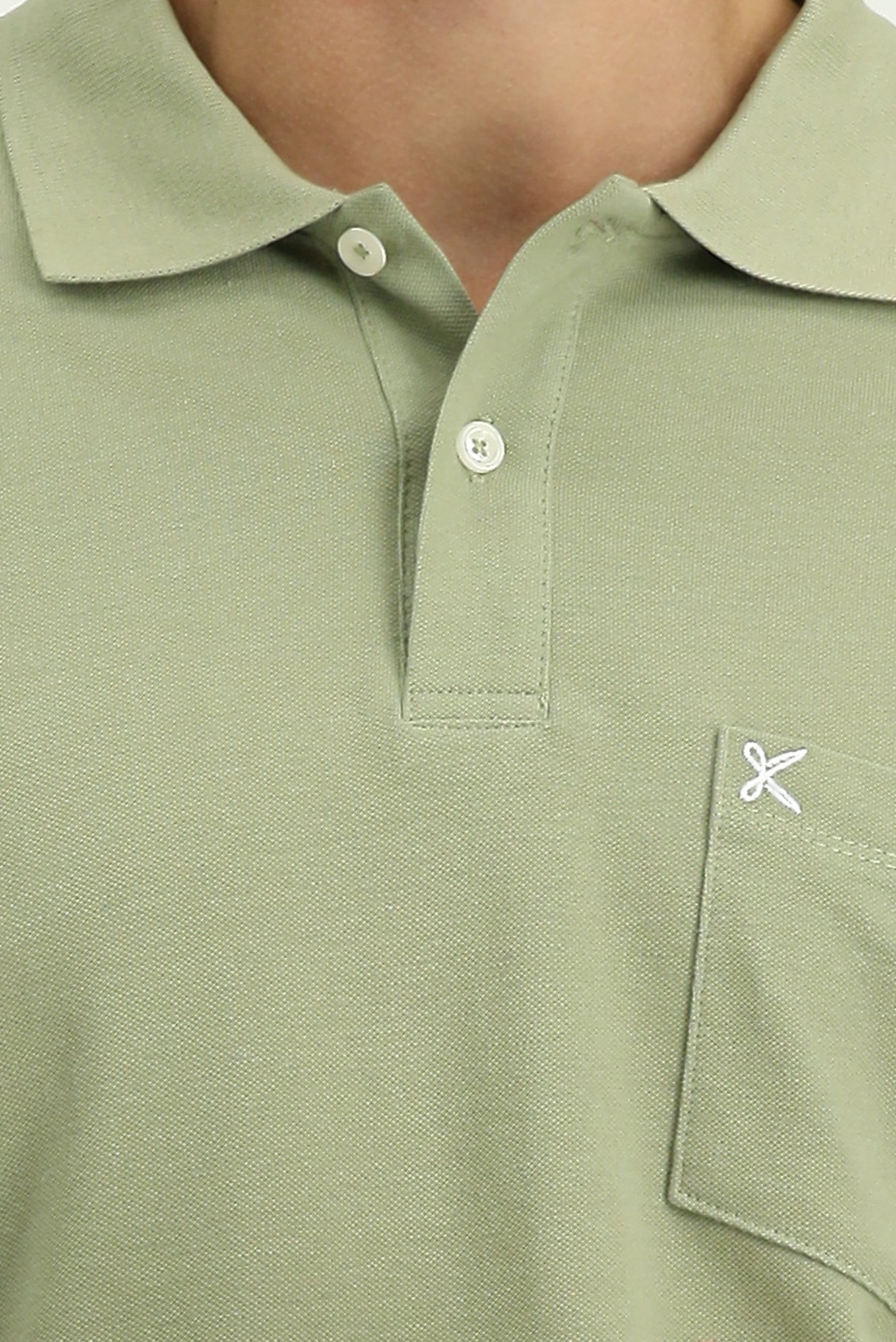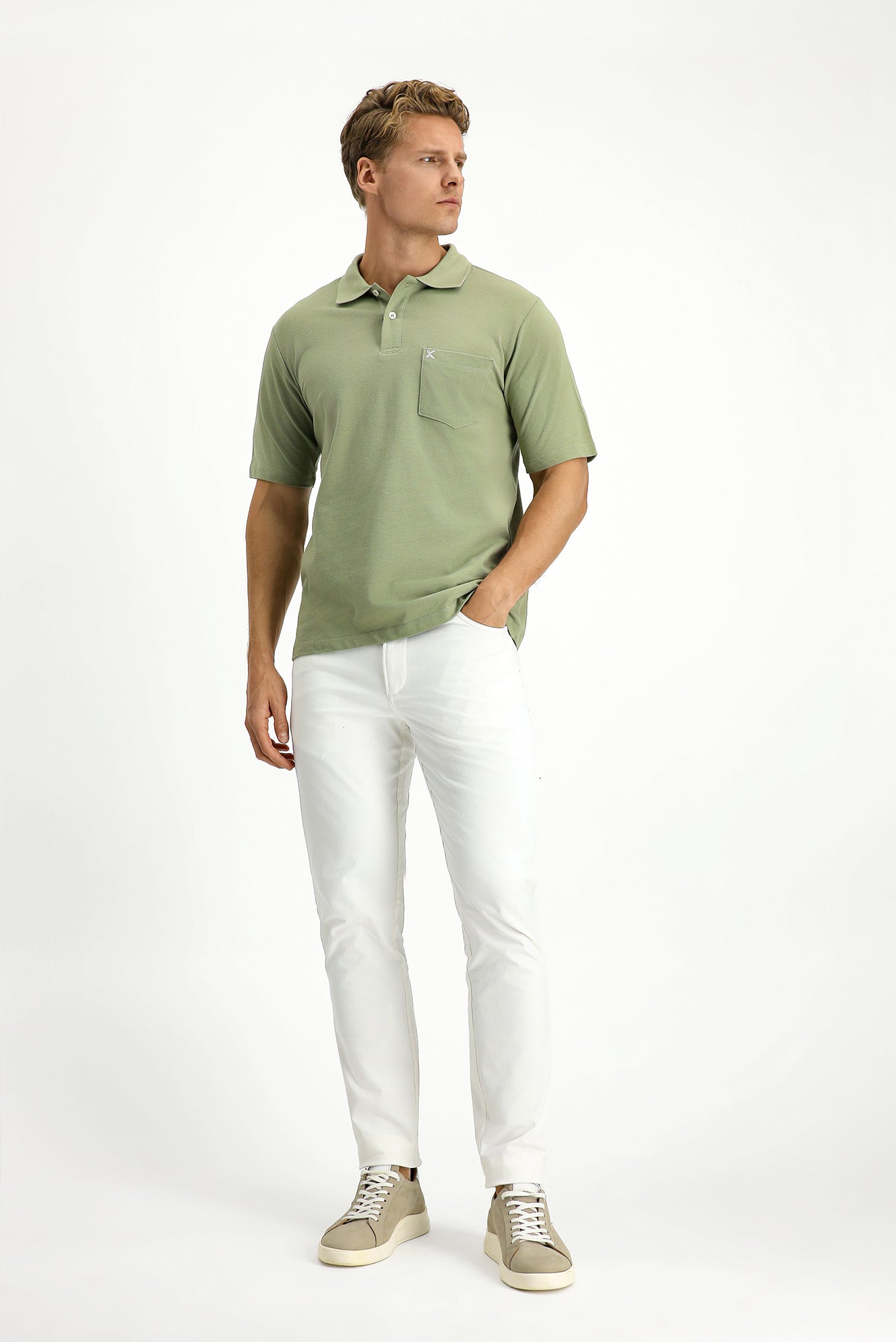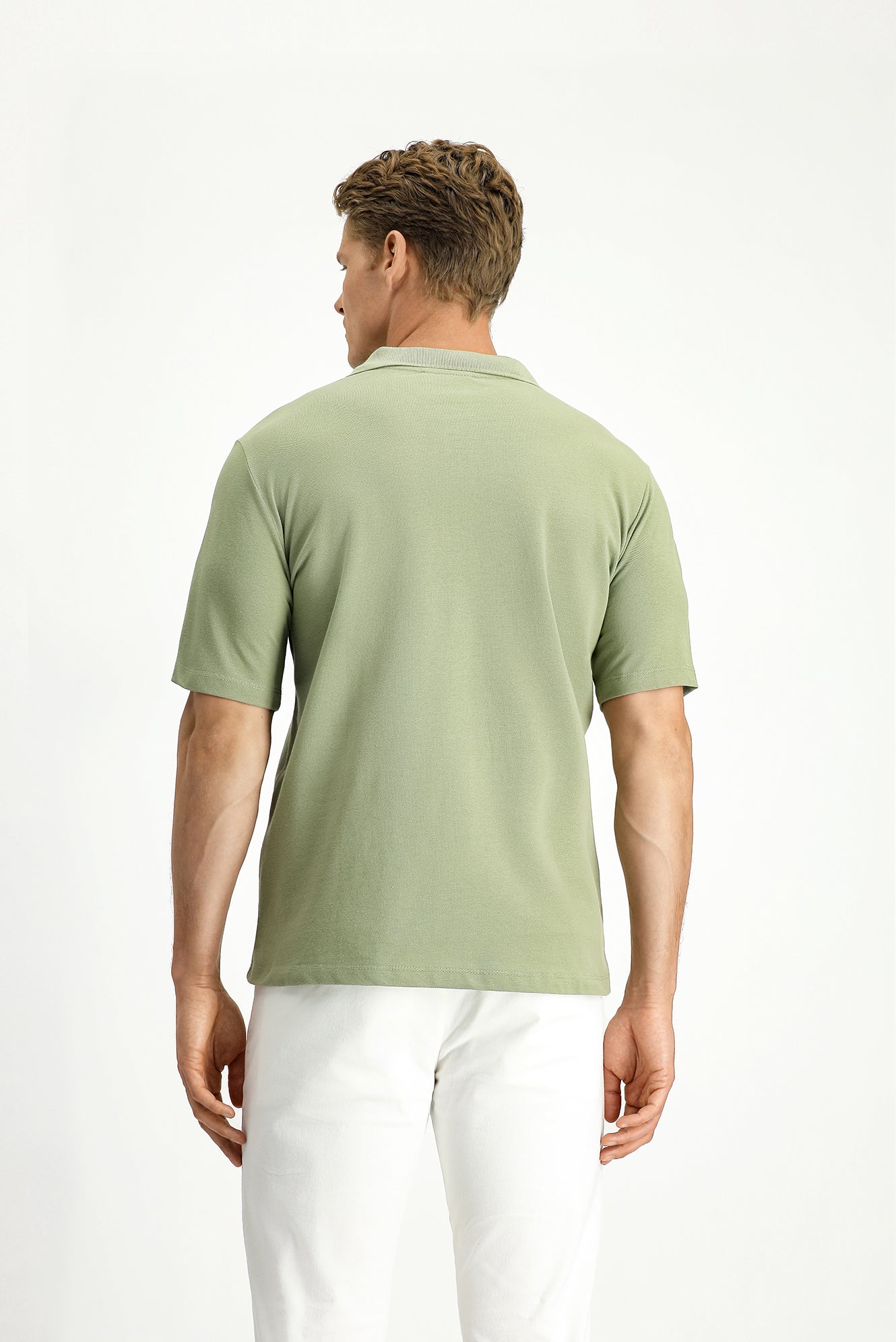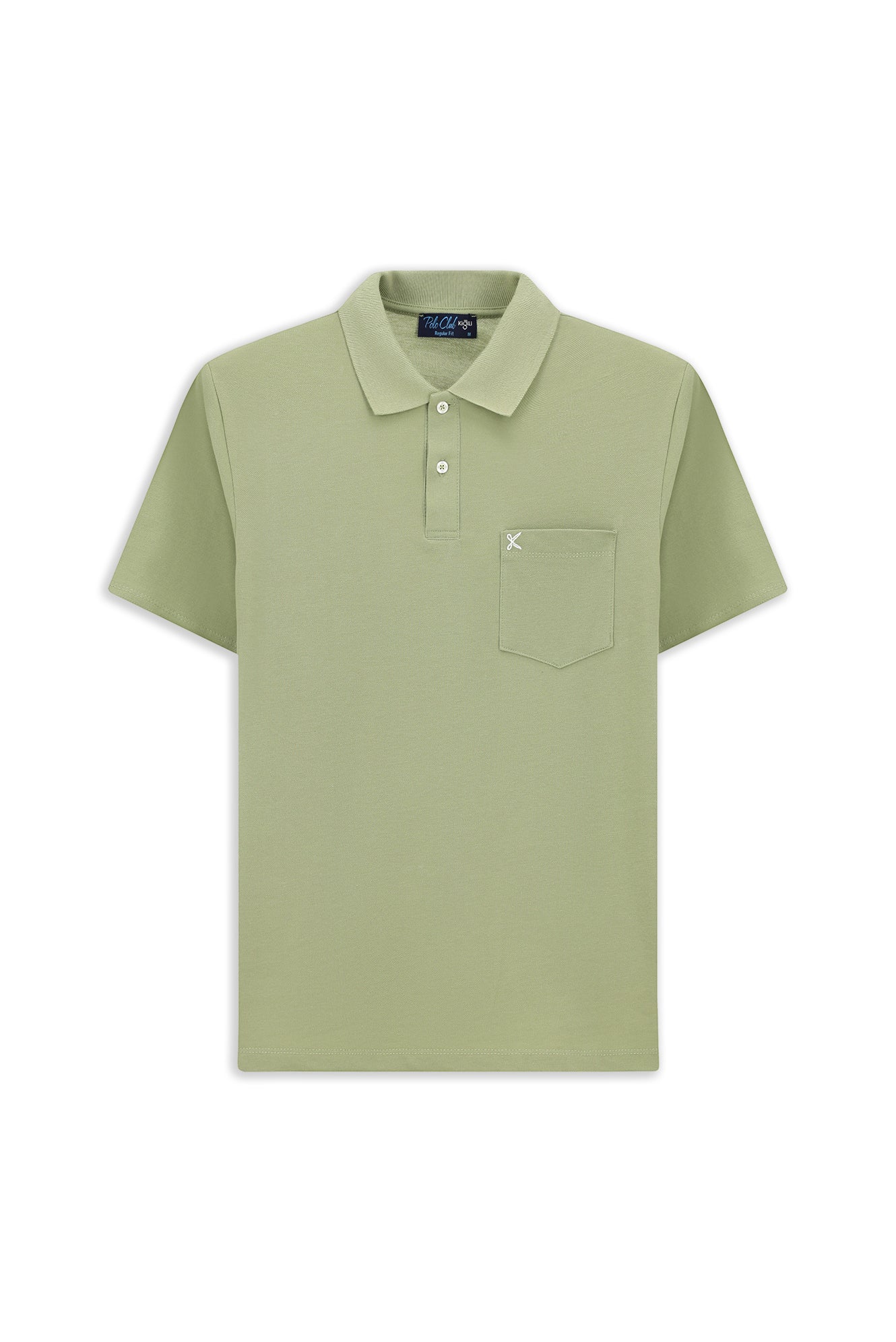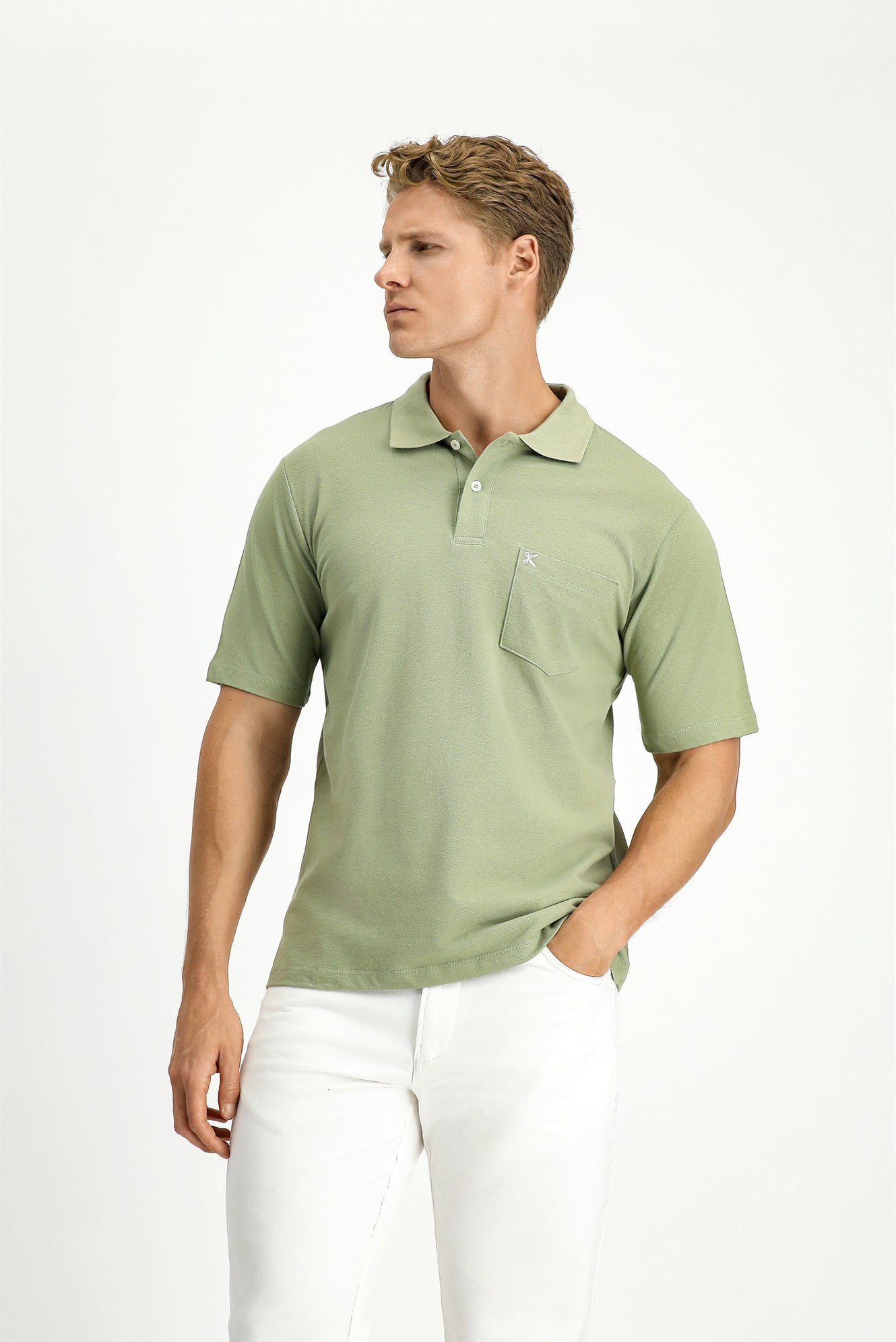 Orman Yeşili Cepli Polo Yaka Regular Fit Nakışlı Pamuk Tişört