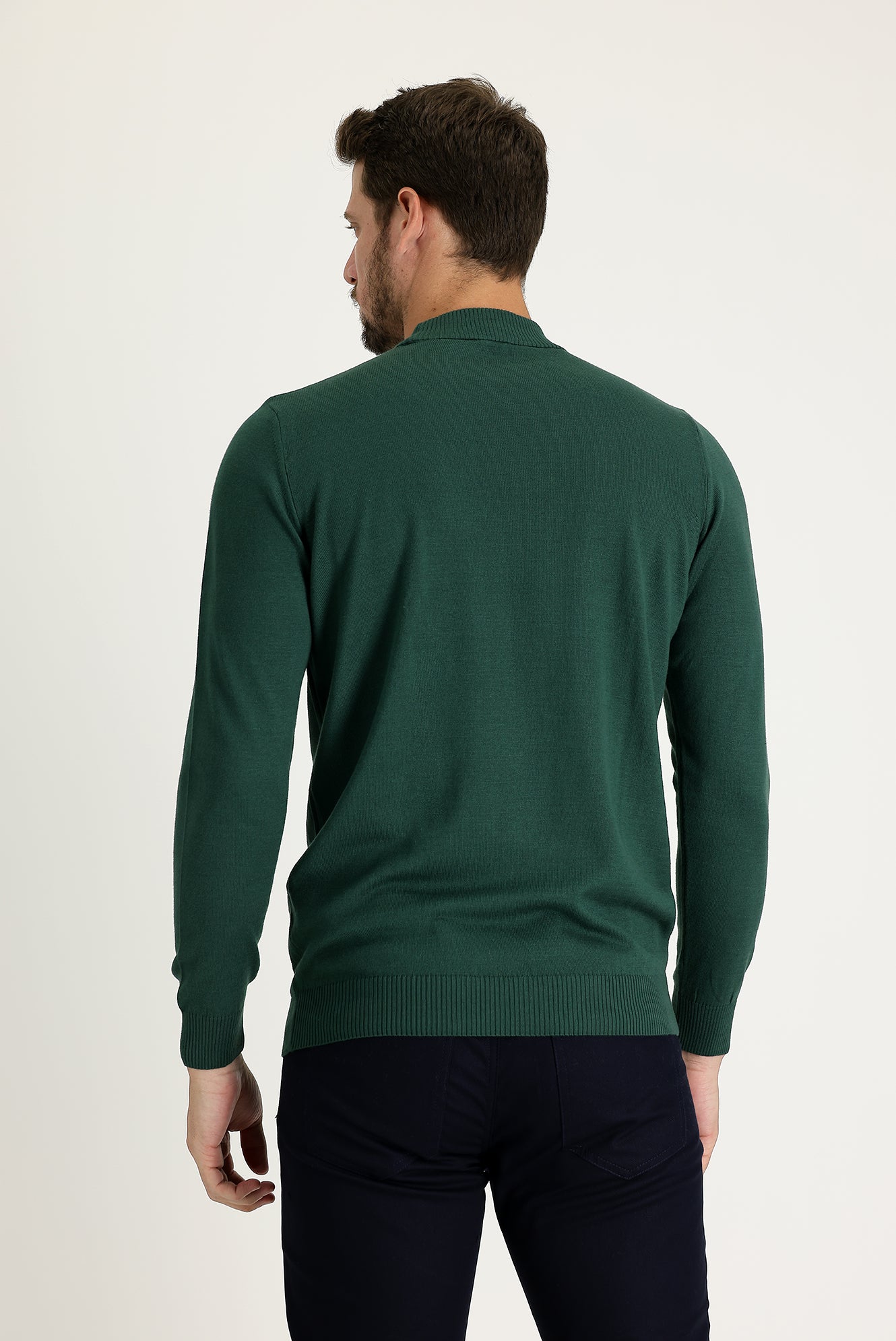 Orman Yeşili Melanj Yarım Balıkçı Yaka Regular Fit Pamuklu Triko Kazak