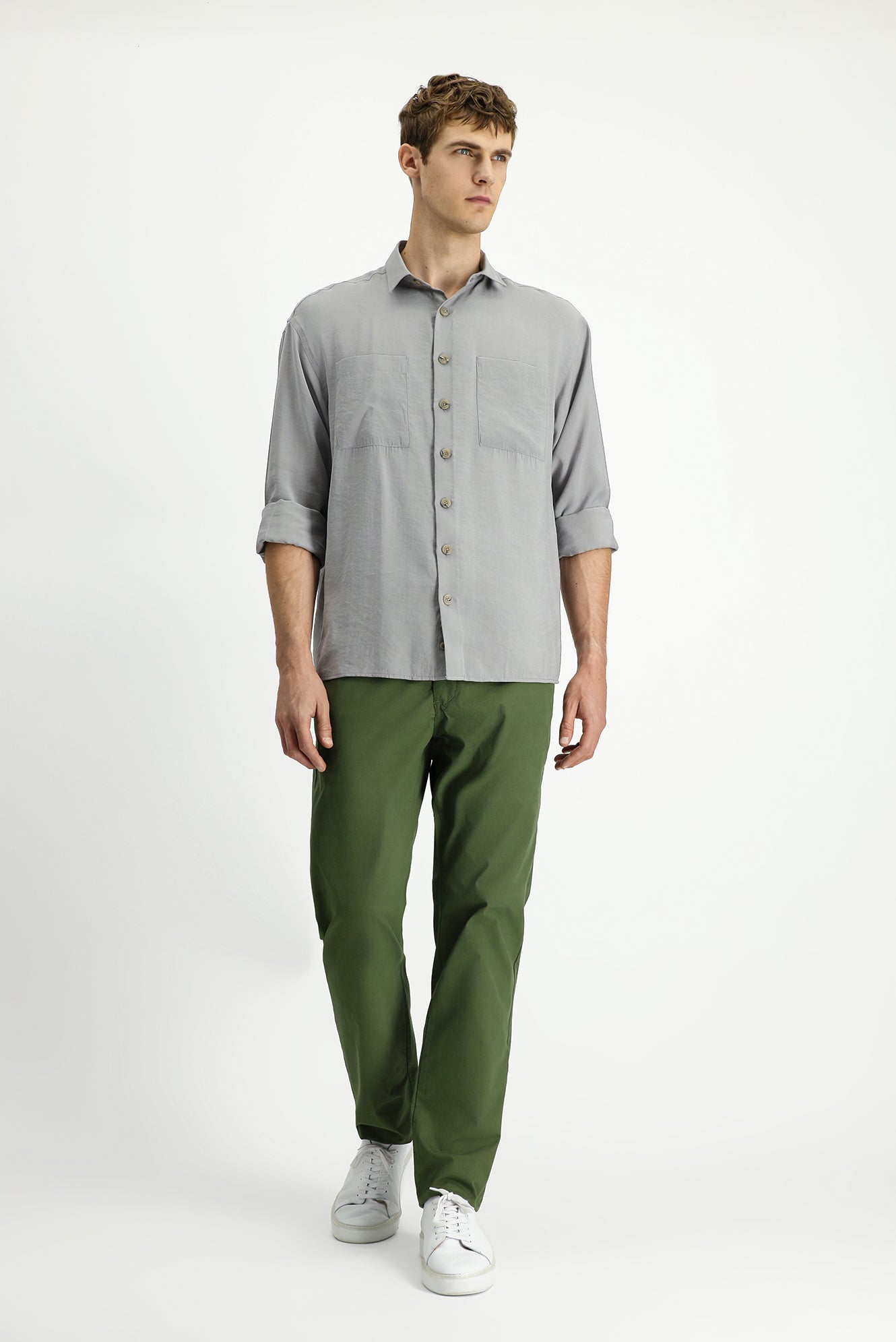 Orman Yeşili Slim Fit Dar Kesim Likralı Kanvas / Chino Pantolon