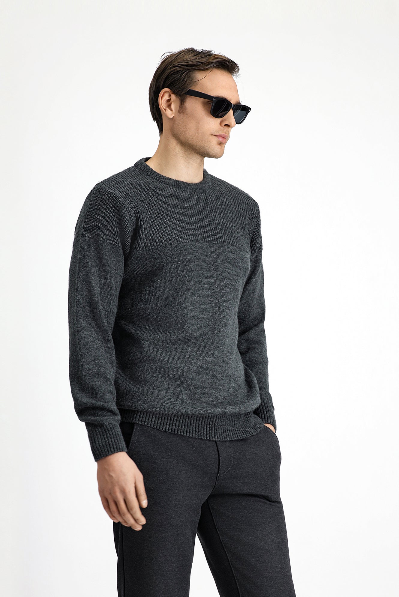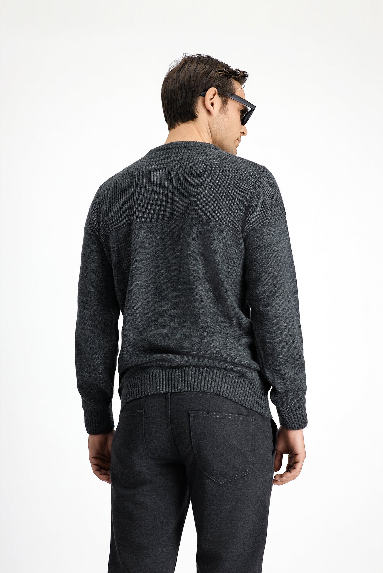Orta Anrasit Melanj Bisiklet Yaka Regular Fit Desenli Triko Kazak