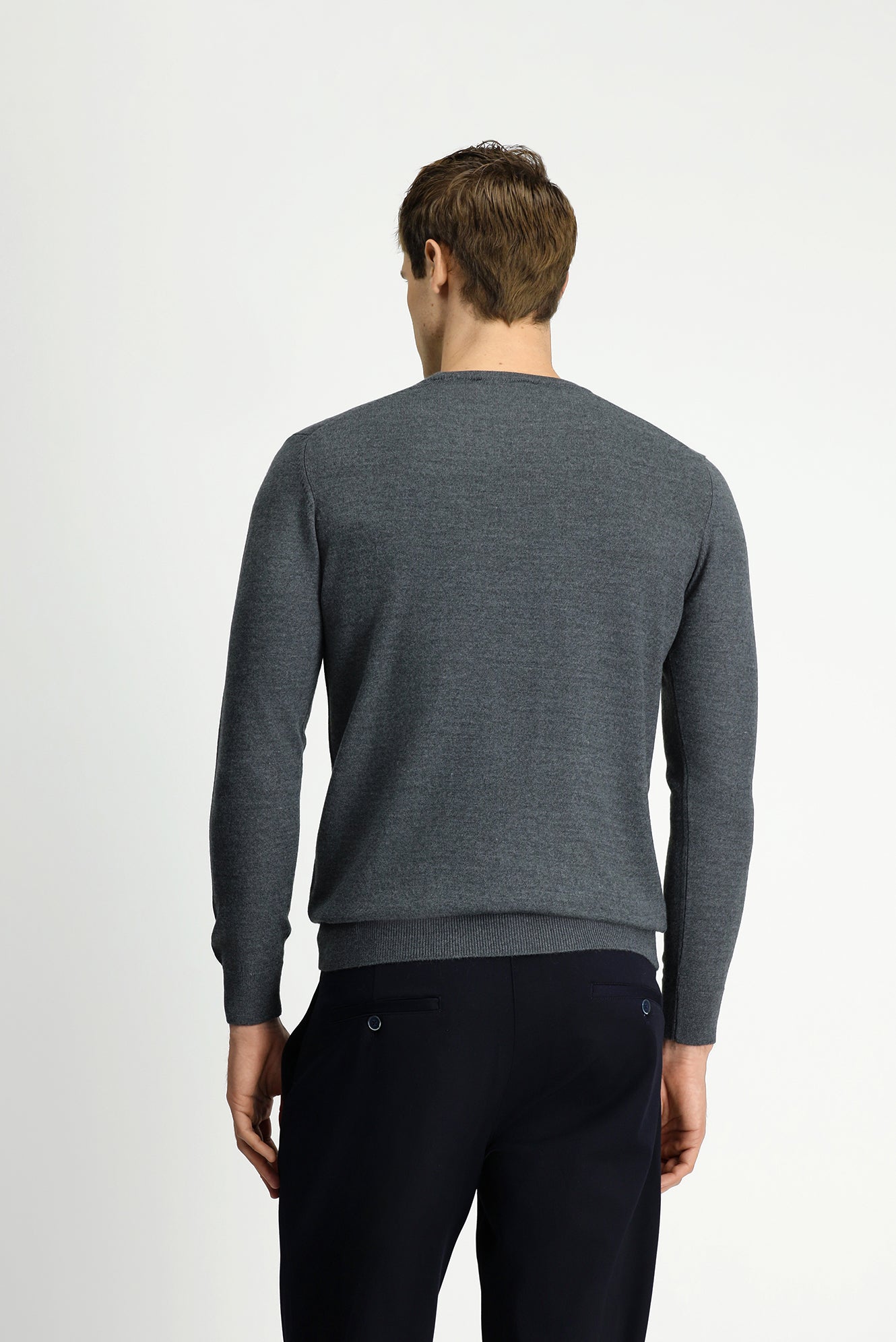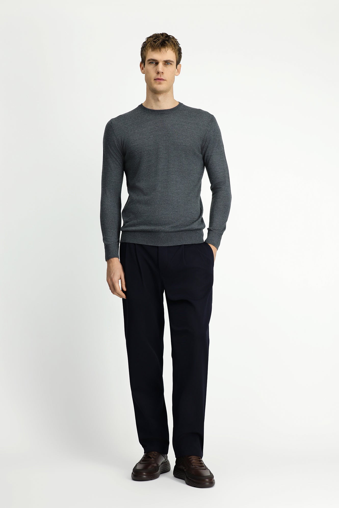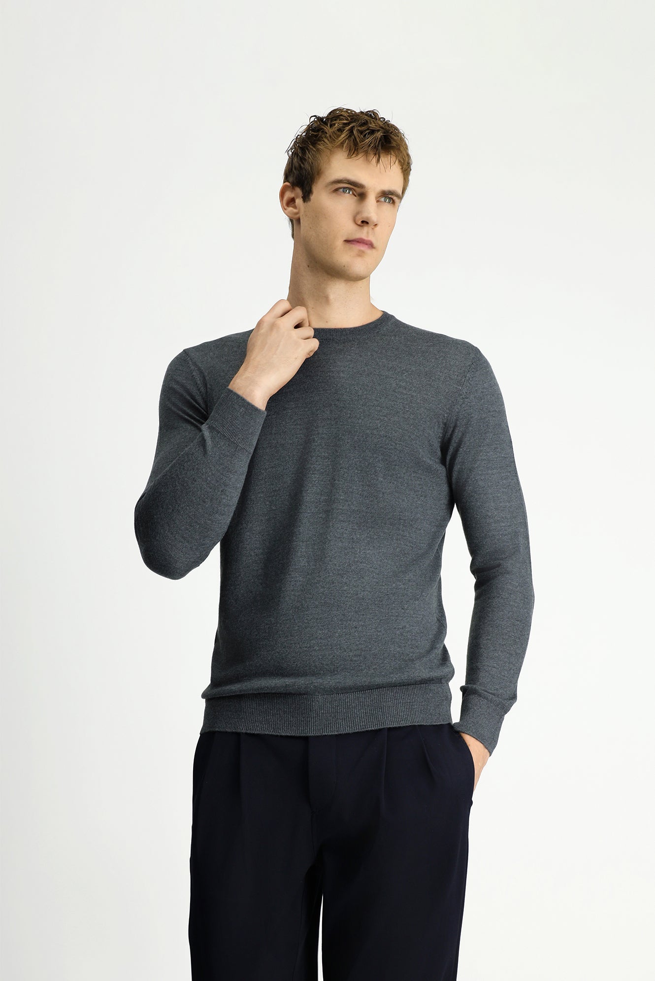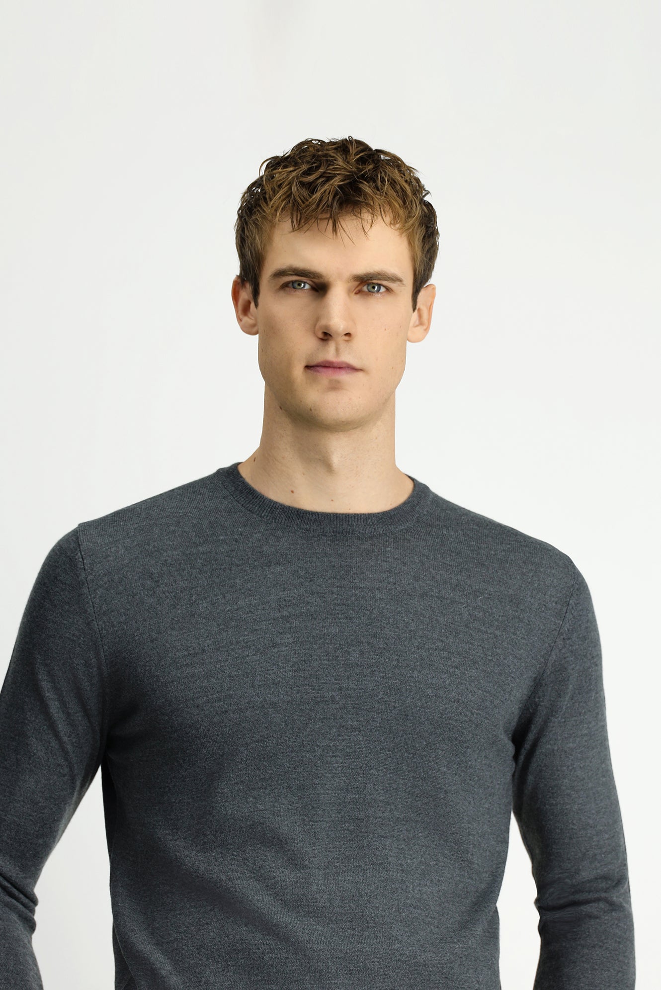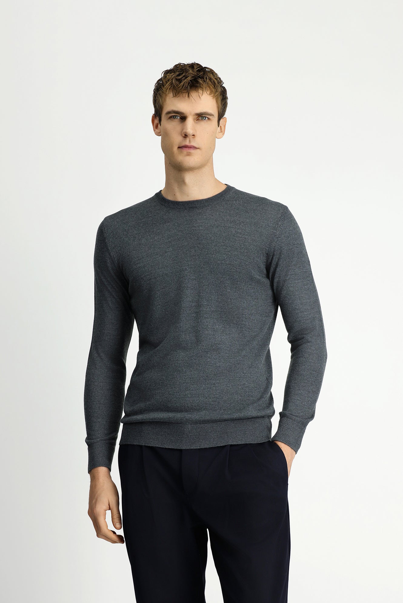 Orta Anrasit Melanj Bisiklet Yaka Regular Fit Yünlü Triko Kazak