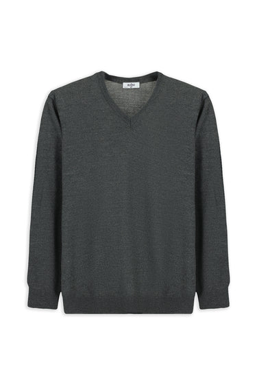 Orta Anrasit Melanj V Yaka Regular Fit Sıcak Tutan Yünlü Triko Kazak