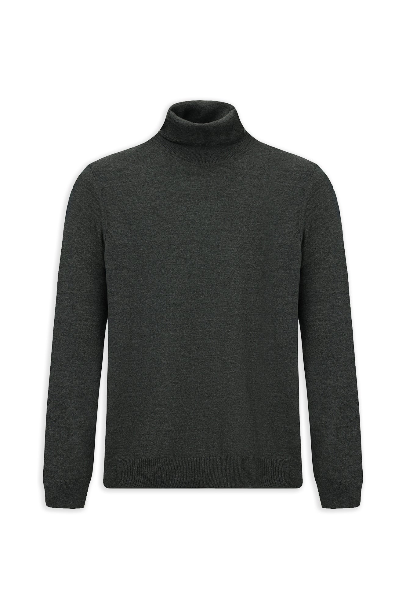 Orta Anrasit Melanj Balıkçı Yaka Regular Fit Yünlü Triko Kazak