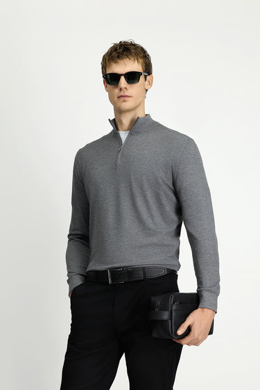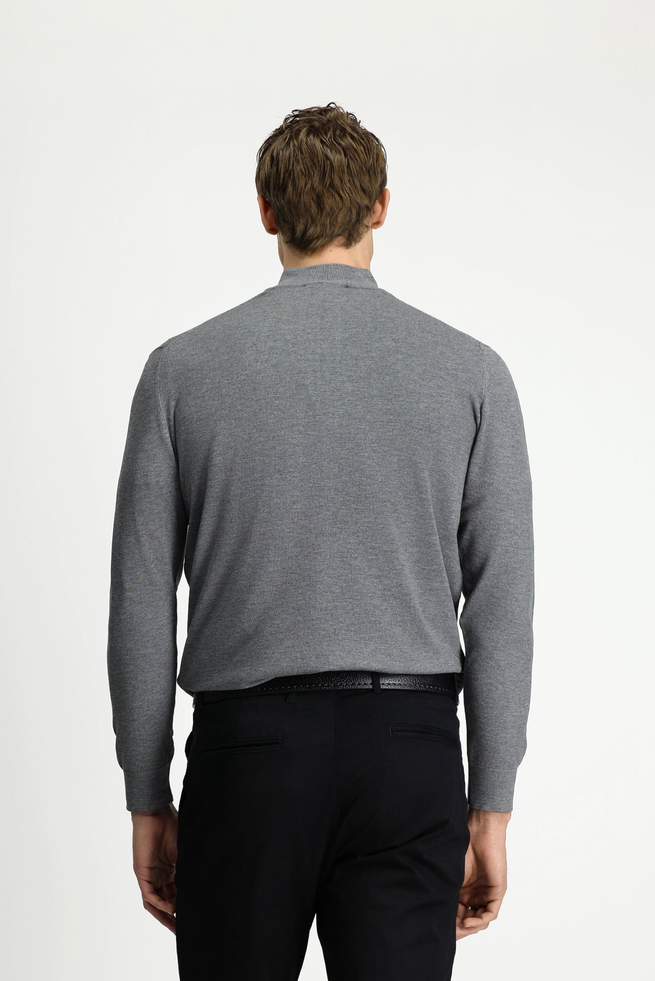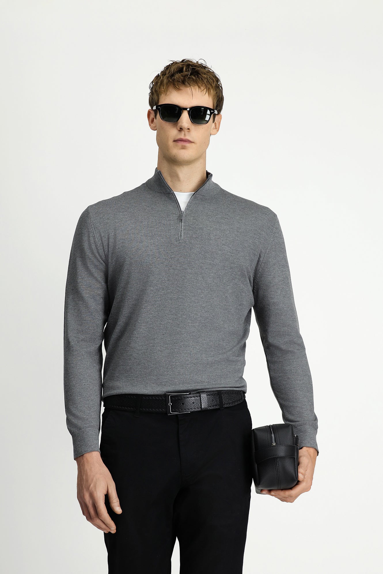 Orta Anrasit Melanj Regular Fit Yarım Balıkçı Yaka Fermuarlı Triko Kazak