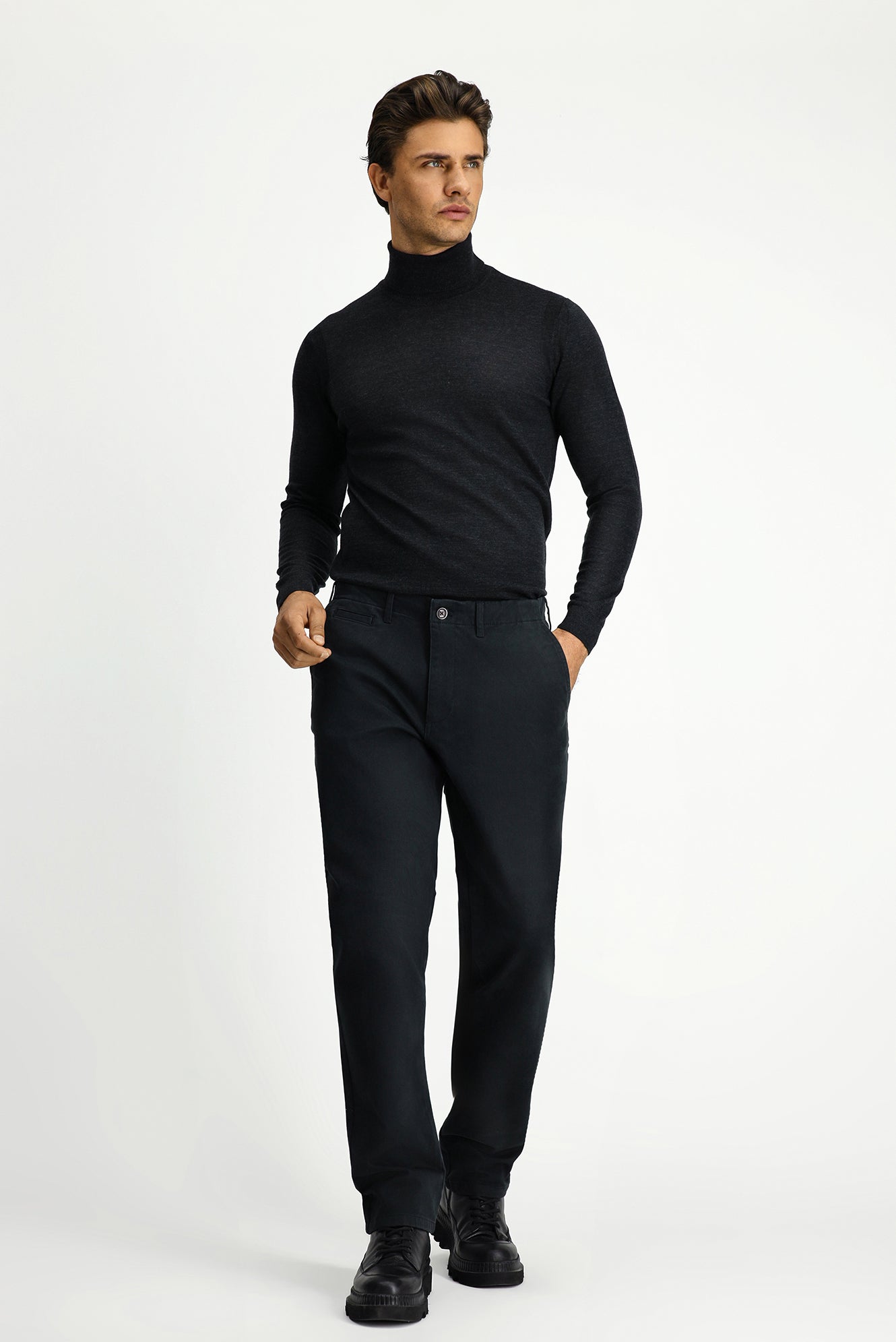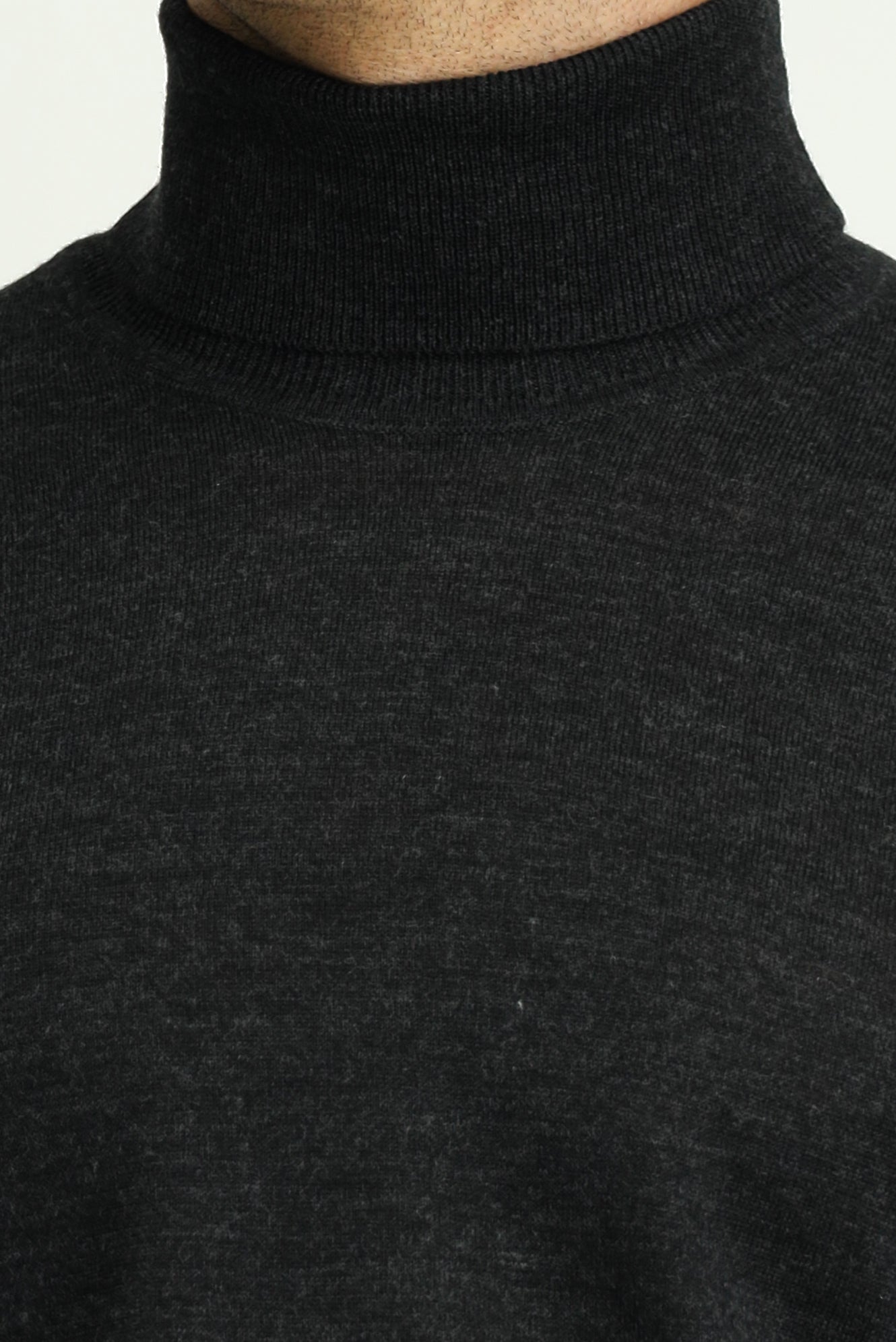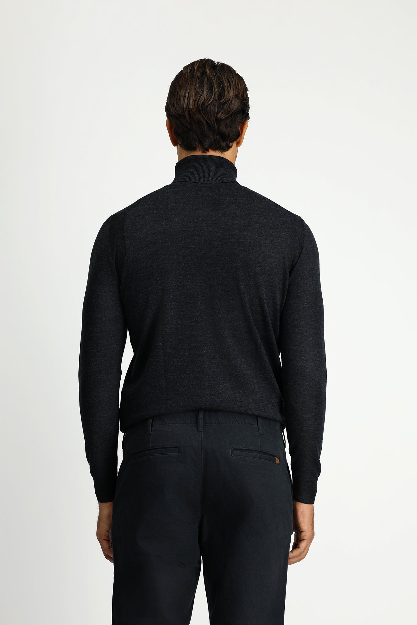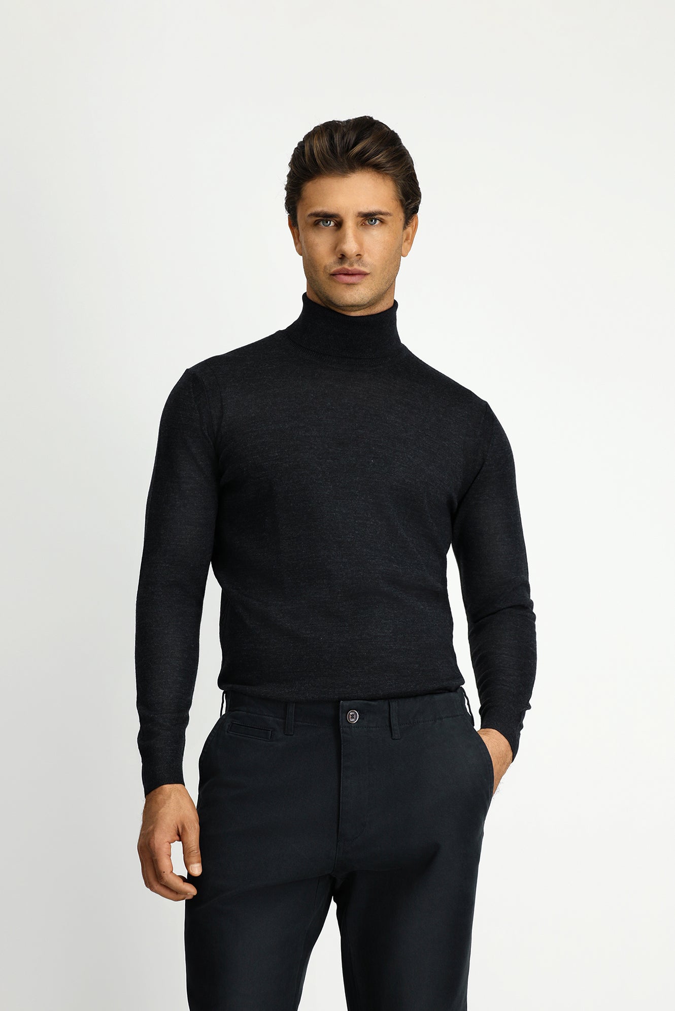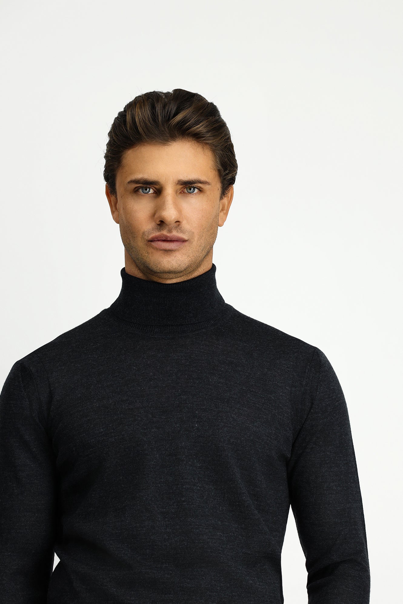 Orta Antrasit Balıkçı Yaka Regular Fit Yünlü Triko Kazak