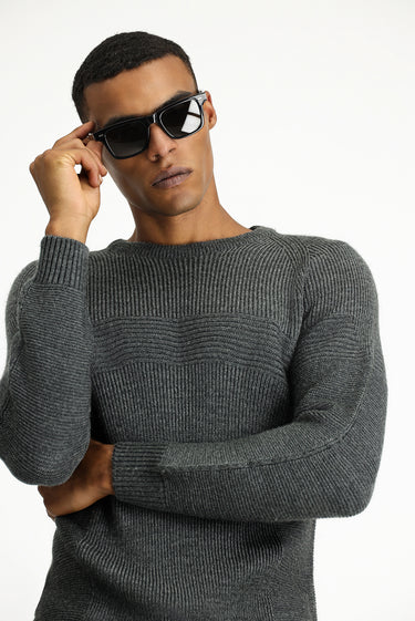 Orta Antrasit Bisiklet Yaka Regular Fit Desenli Triko Kazak