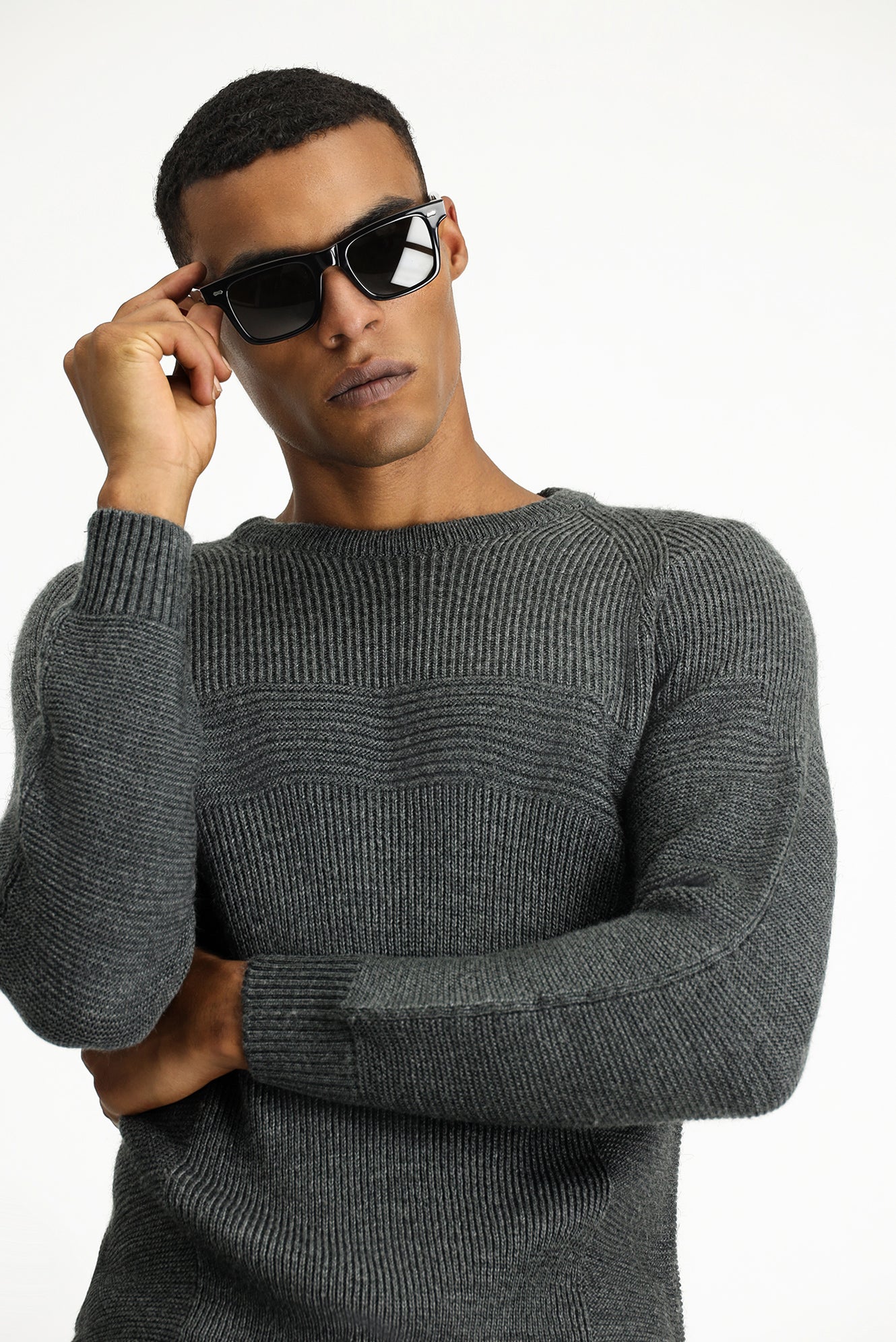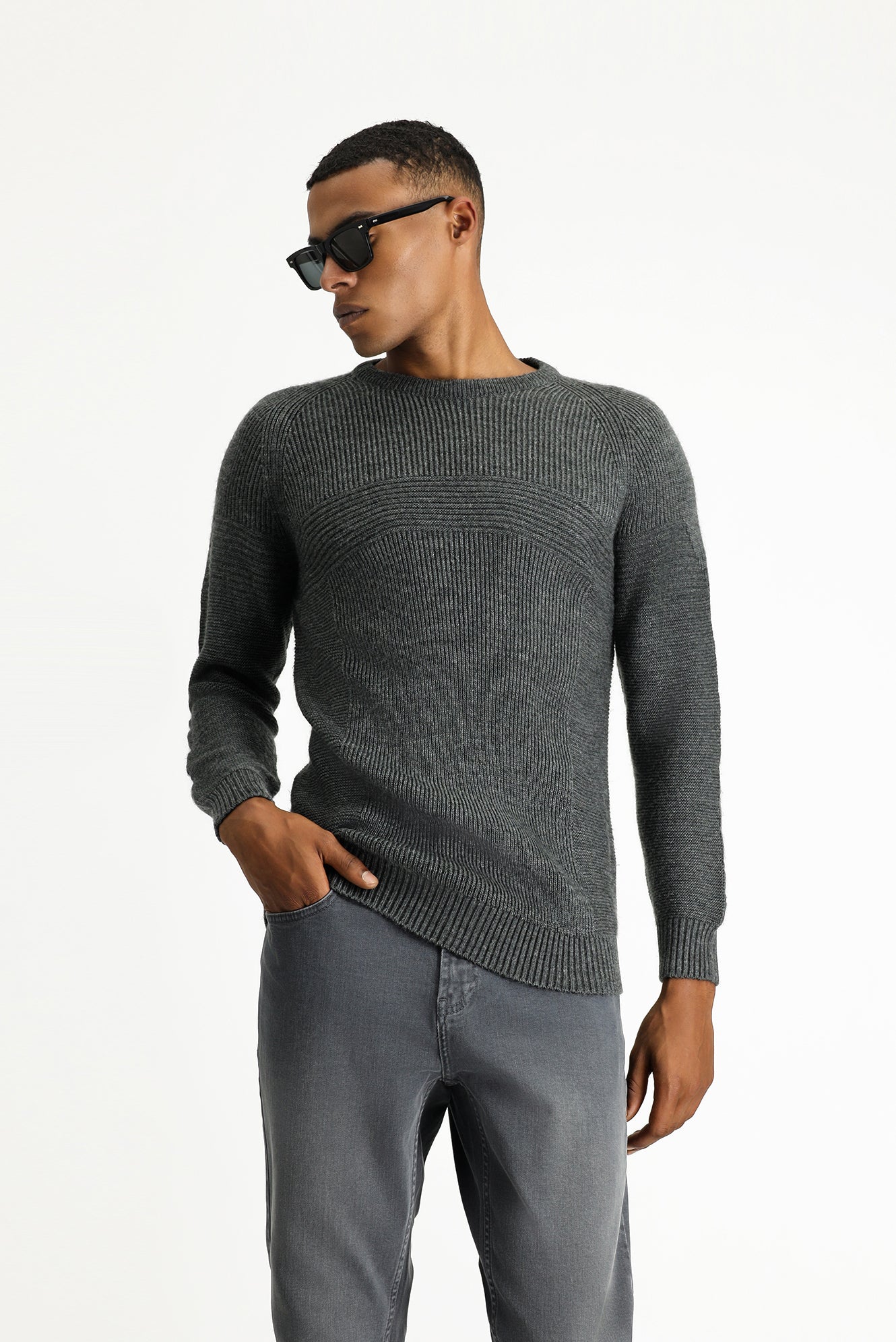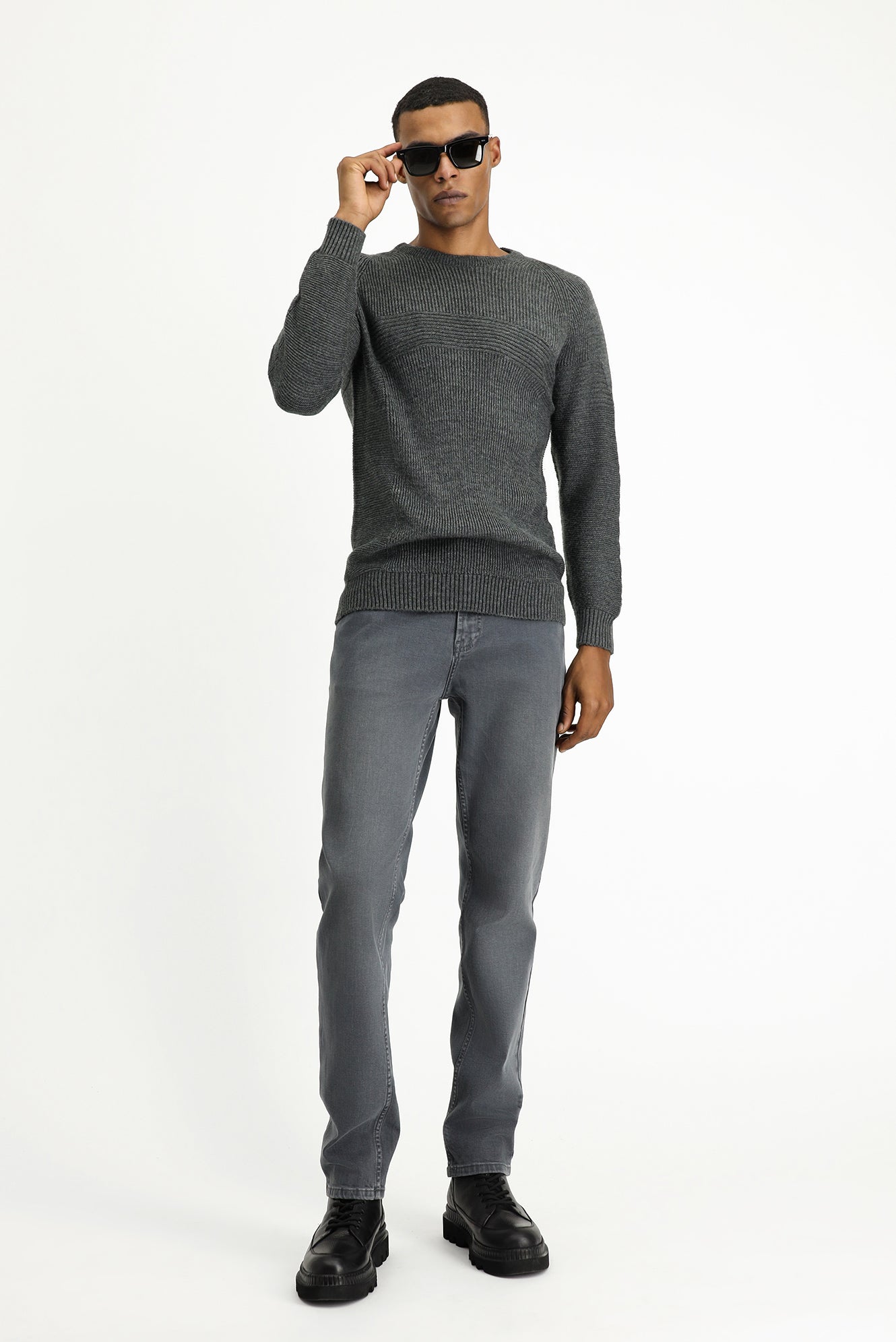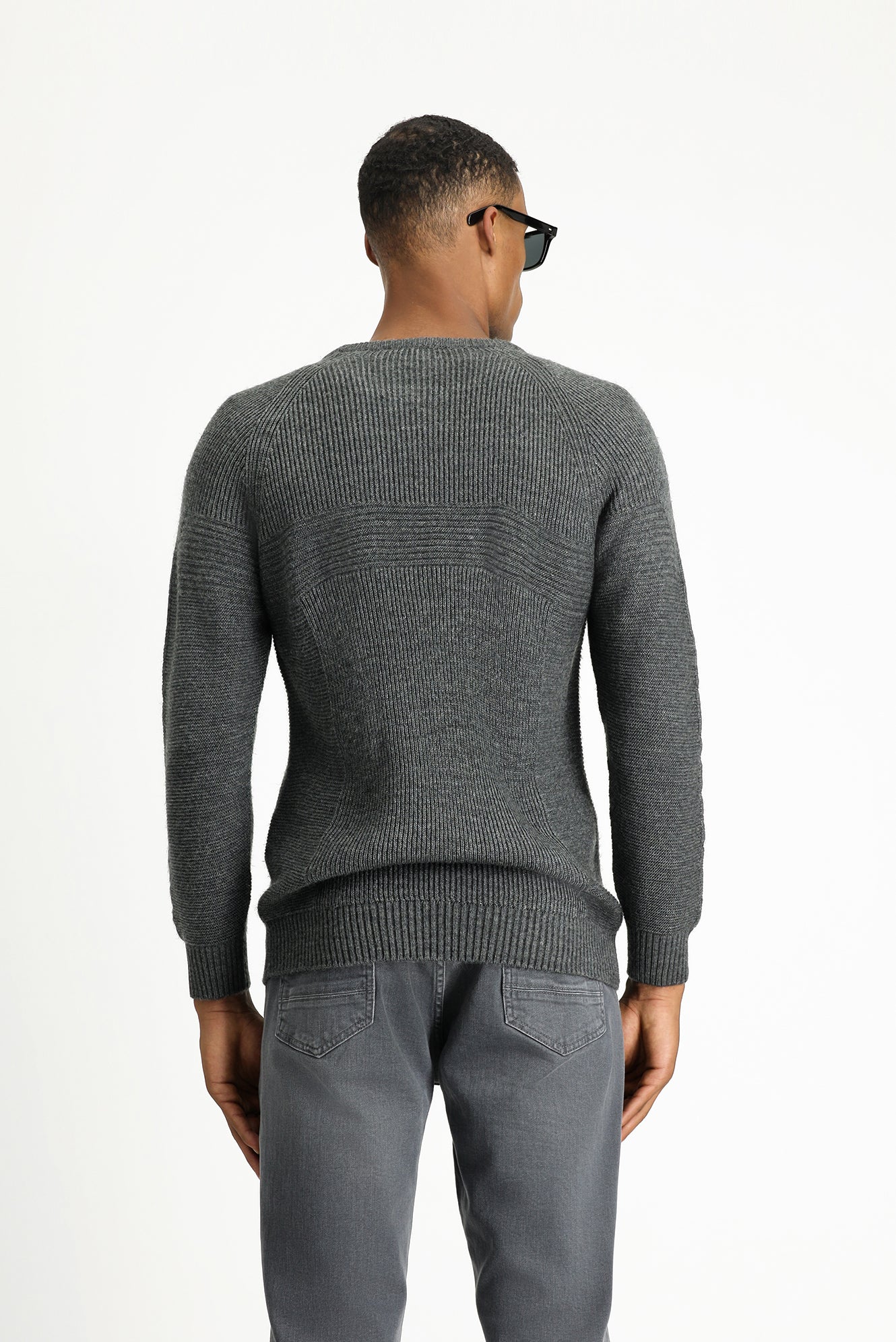 Orta Antrasit Bisiklet Yaka Regular Fit Dikişsiz Desenli Triko Kazak
