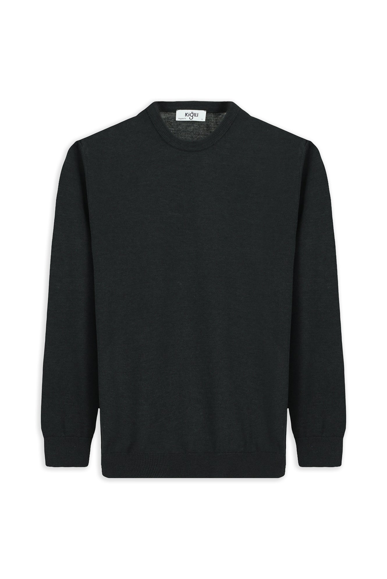 Orta Antrasit Bisiklet Yaka Regular Fit Pamuklu Triko Kazak