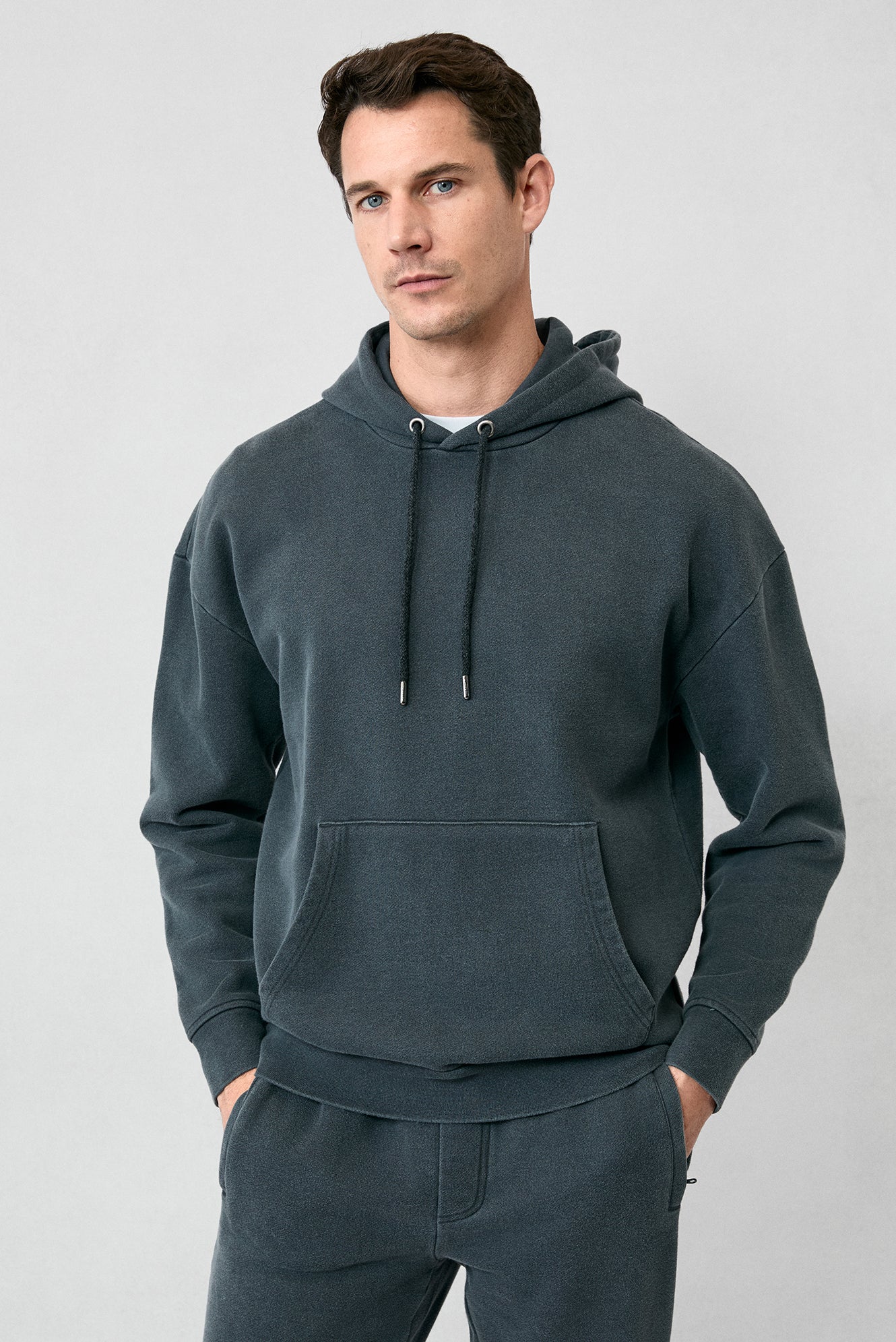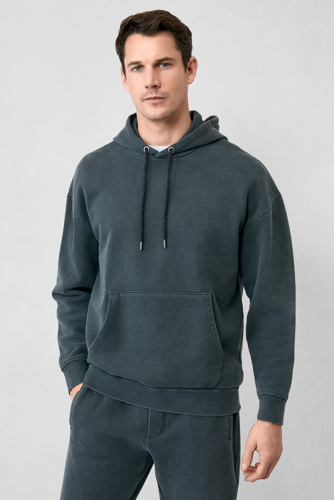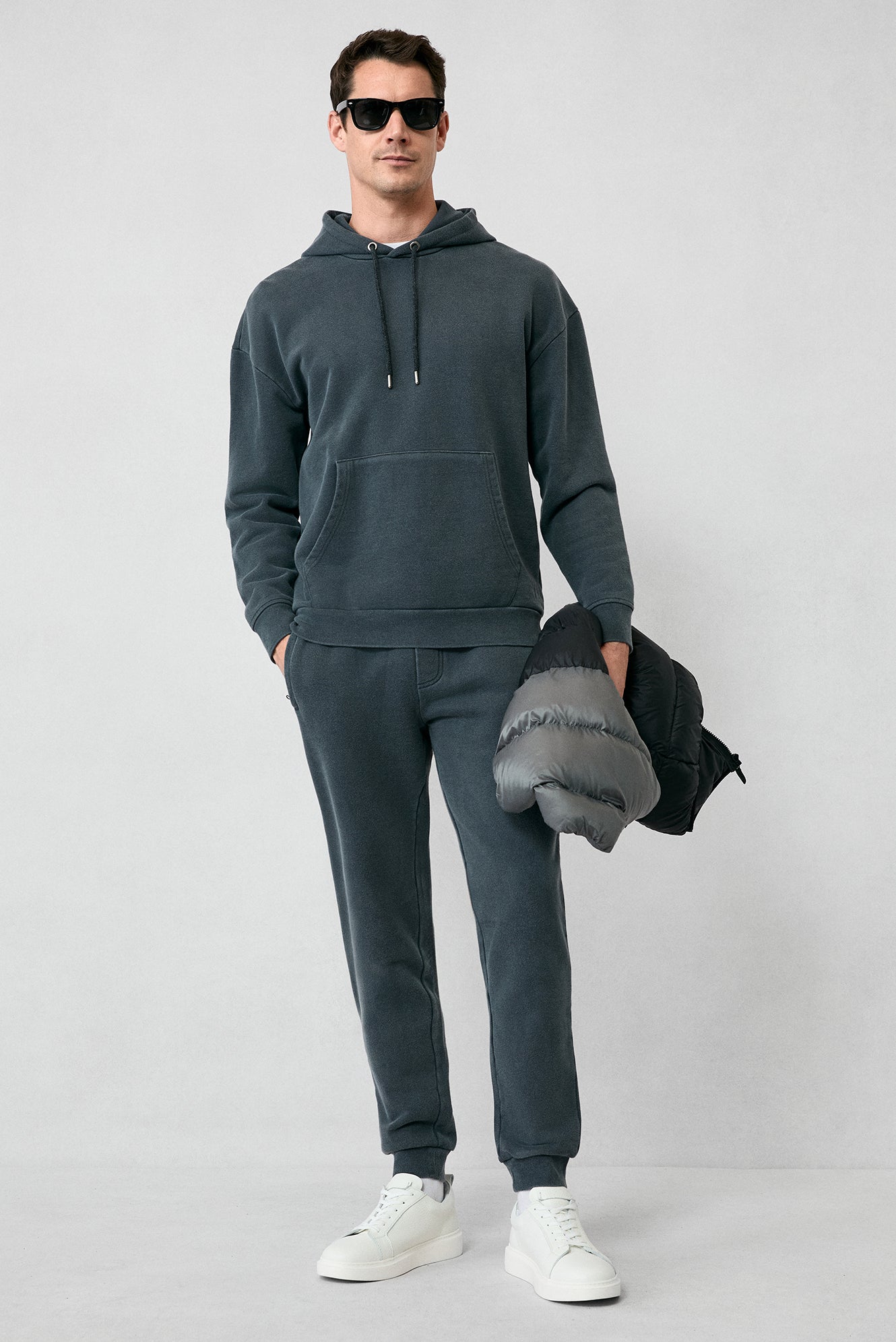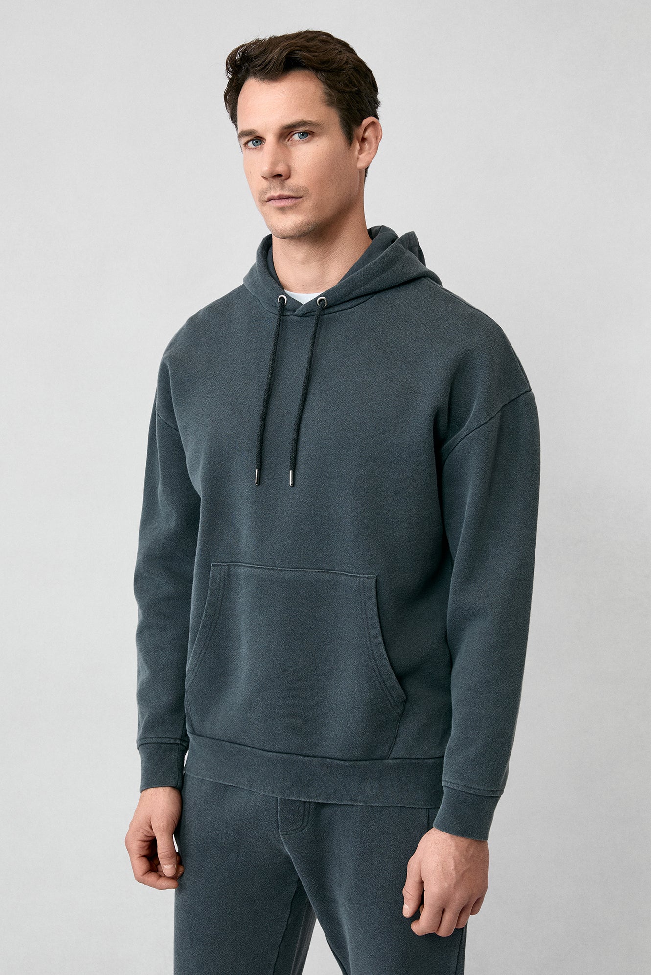 Orta Antrasit Kapüşonlu Oversize Ekstra Rahat Kesim Pamuk Sweatshirt
