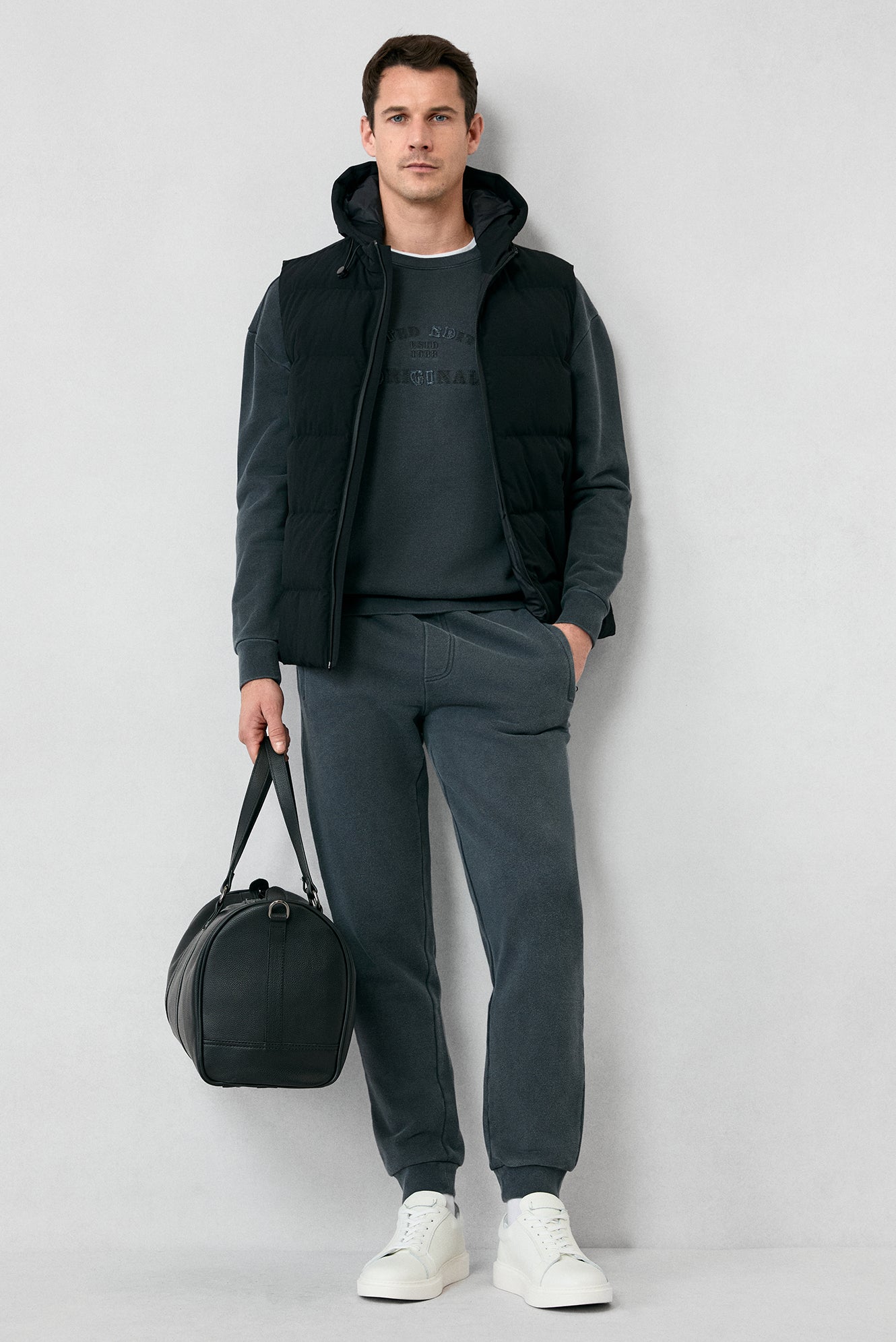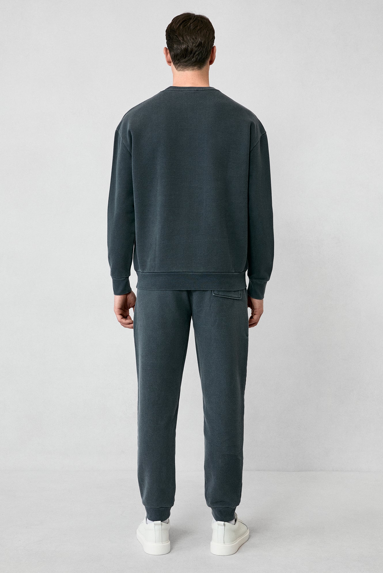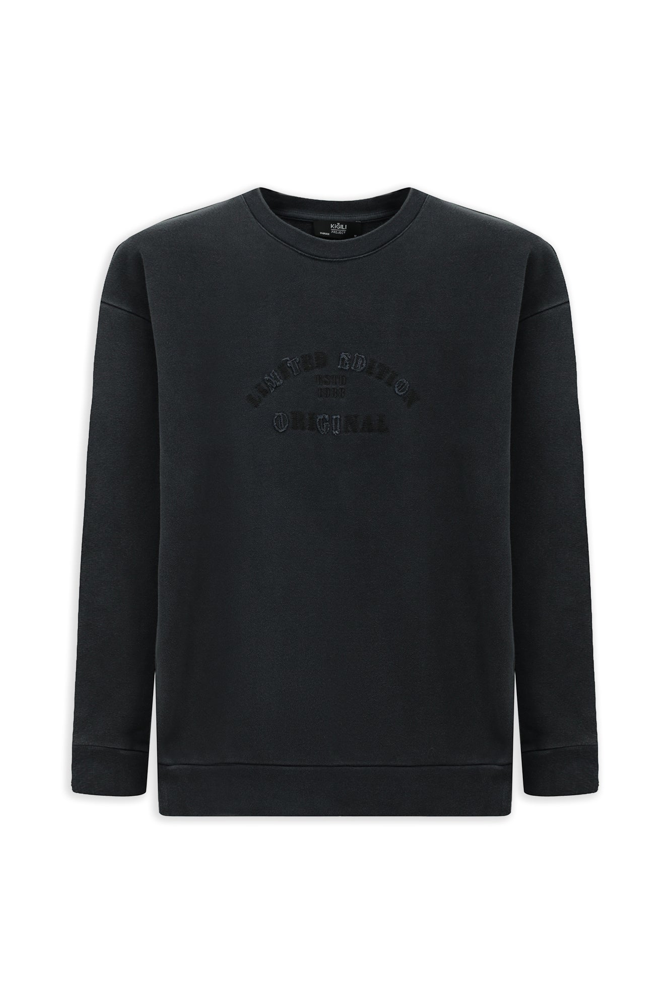 Orta Antrasit Bisiklet Yaka Oversize Ekstra Rahat Kesim Nakış Desenli Pamuk Sweatshırt