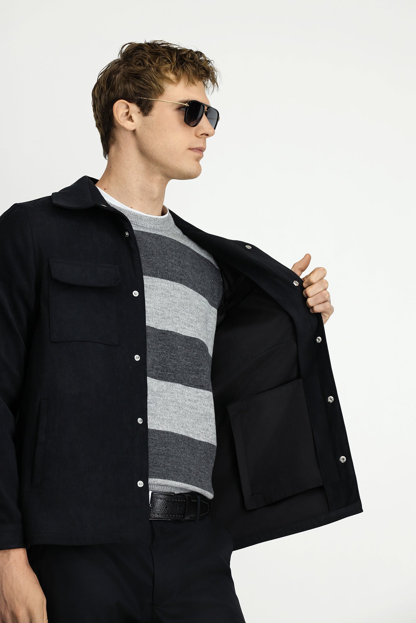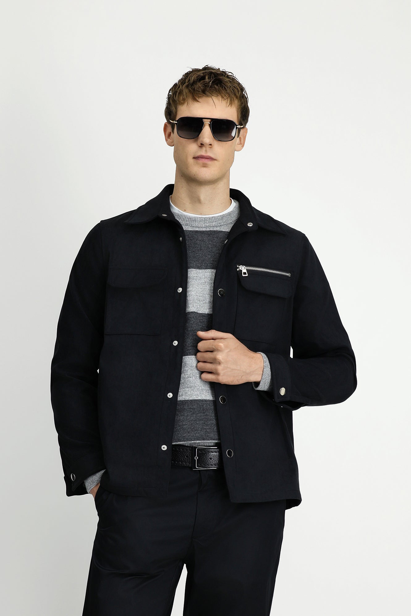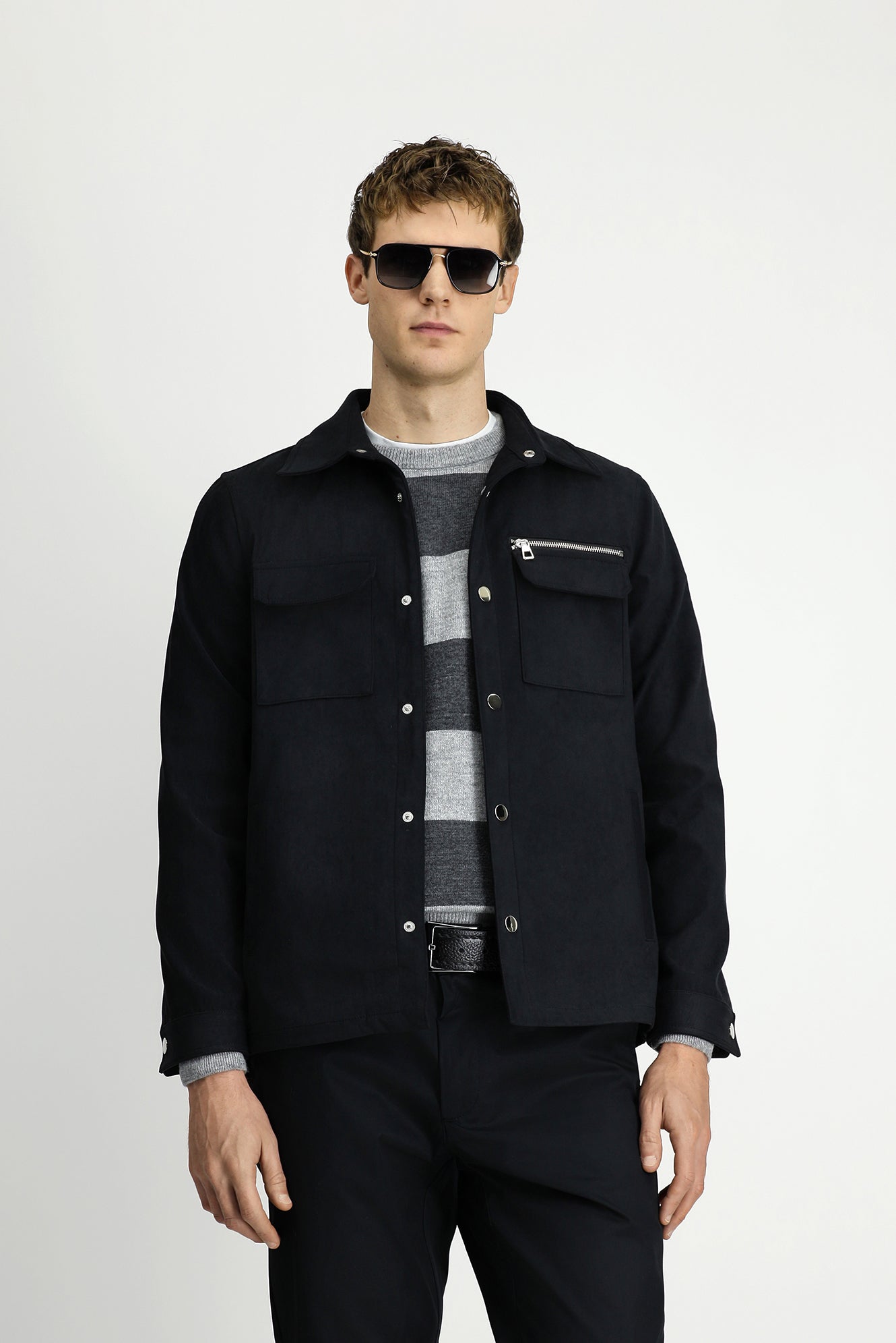 Orta Antrasit Cepli Çıtçıtlı Süet Ceket / Mont
