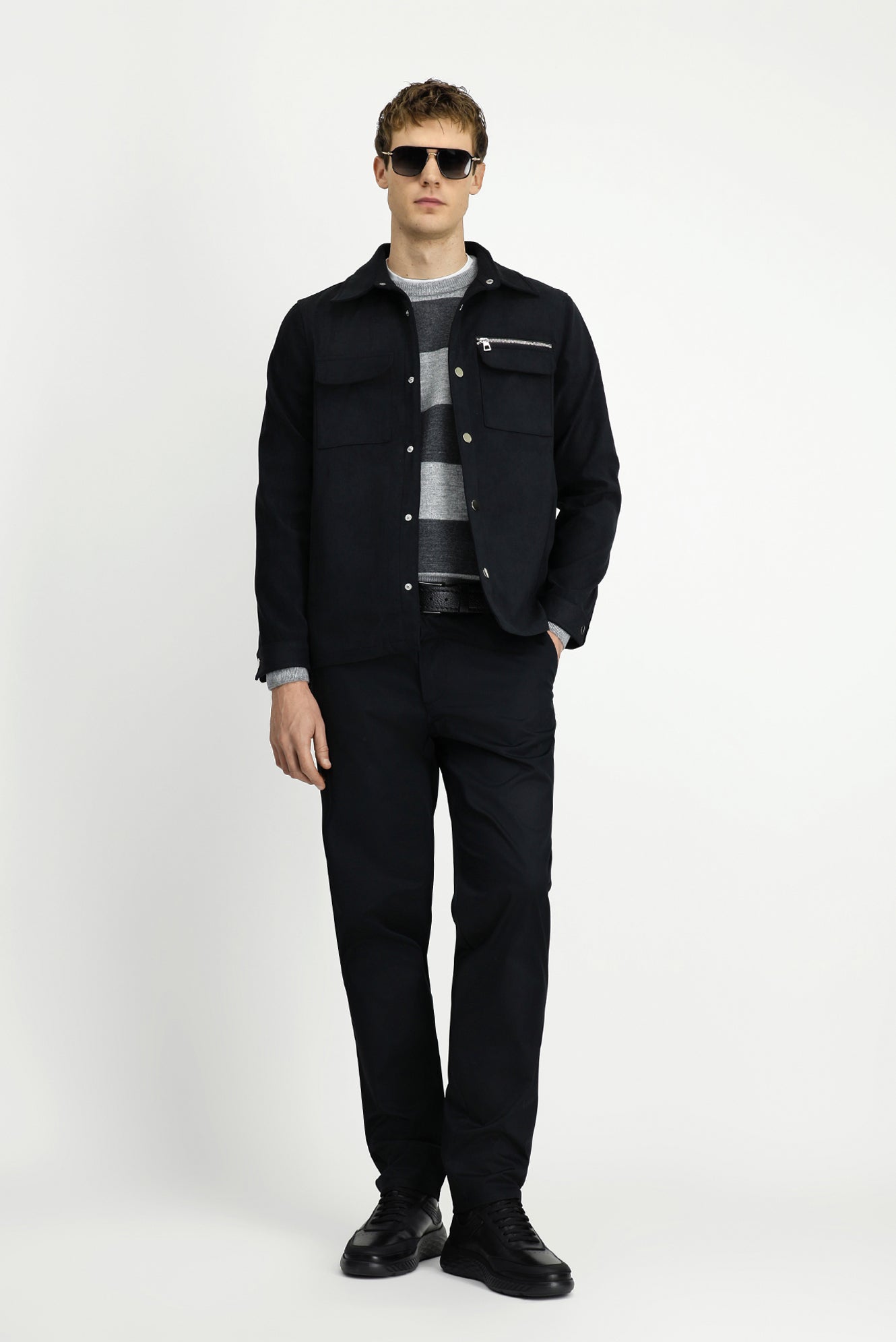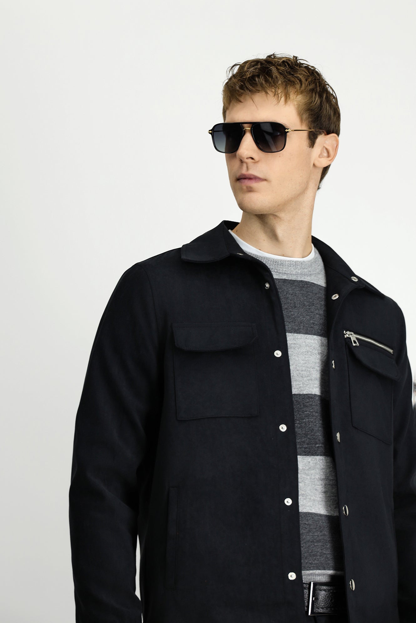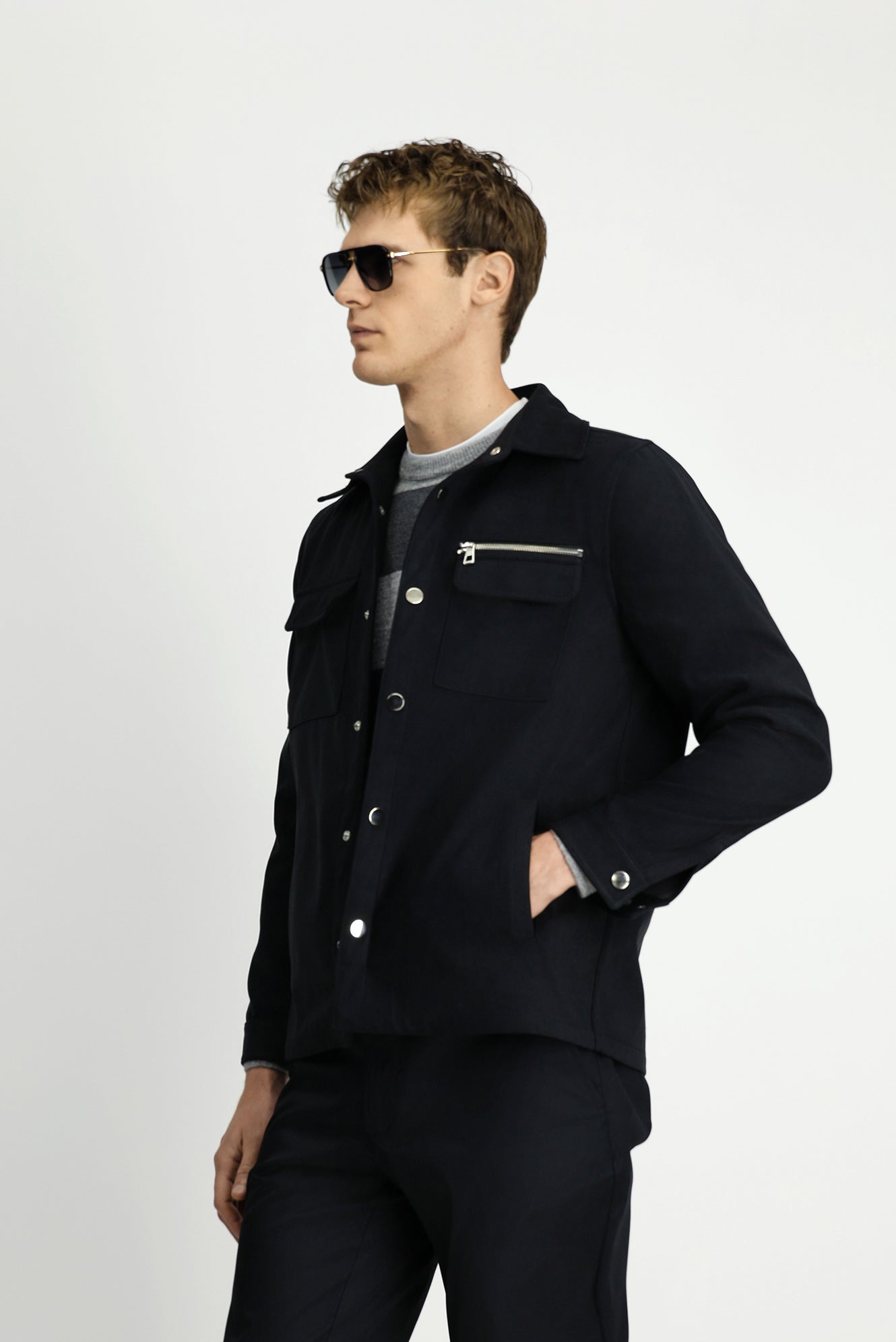 Orta Antrasit Cepli Çıtçıtlı Süet Ceket / Mont