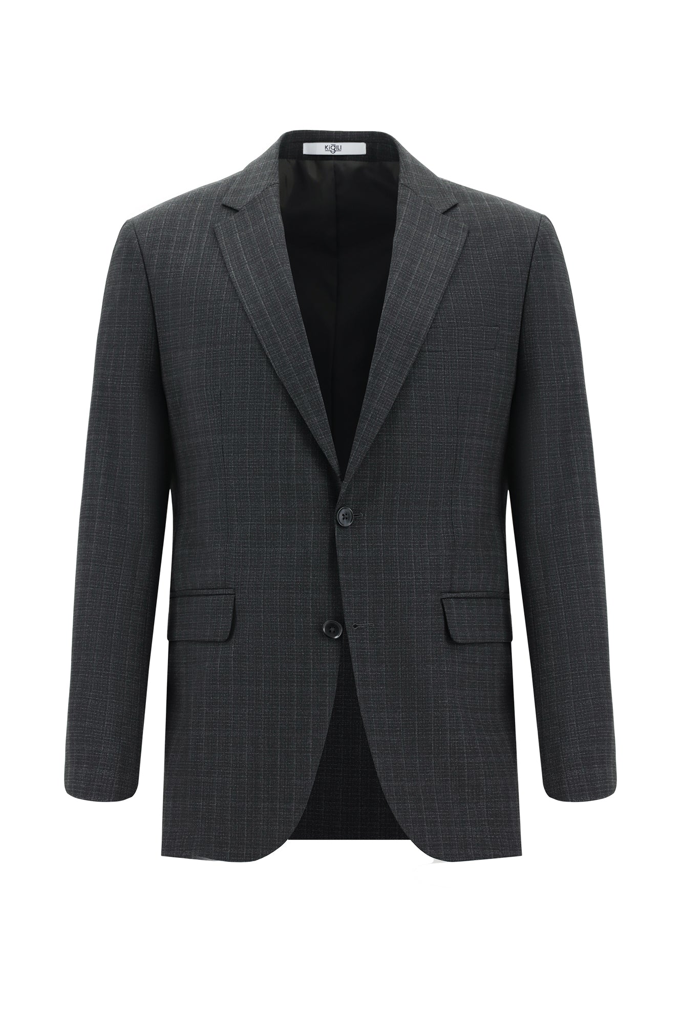 Orta Antrasit 6 Drop Regular Fit Standart Kesim Yünlü Klasik Ekose Takım Elbise