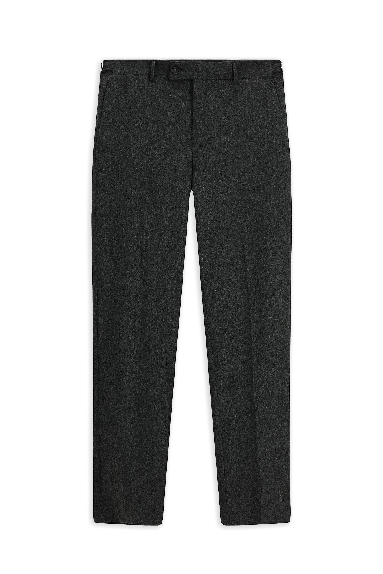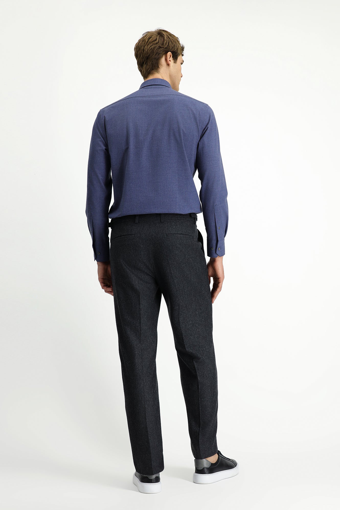 Orta Antrasit Relaxed Fit Rahat Kesim Tokalı Yünlü Flanel Klasik Pantolon