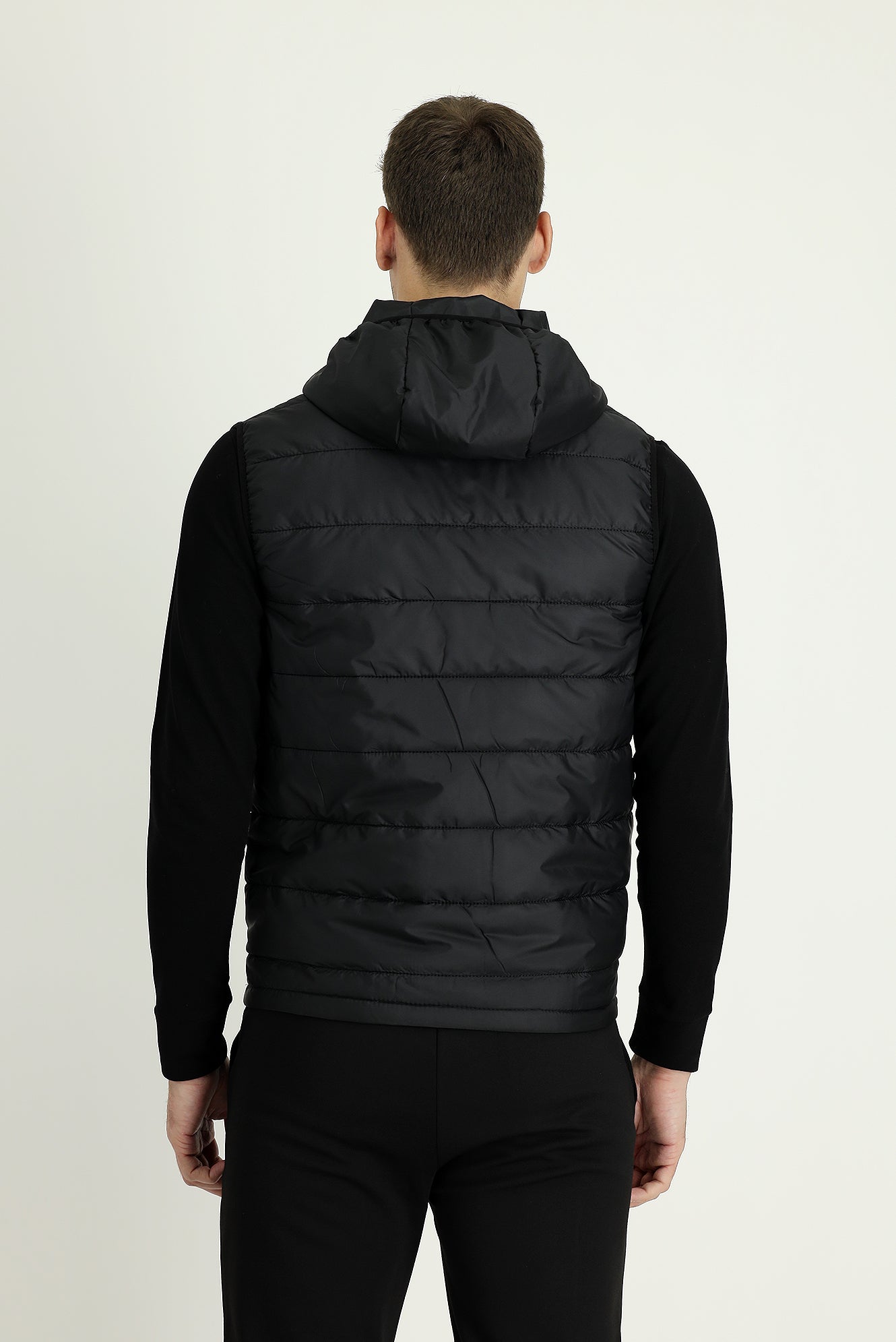 Orta Antrasit Slim Fit Dar Kesim Kapüşonlu Spor Yelek