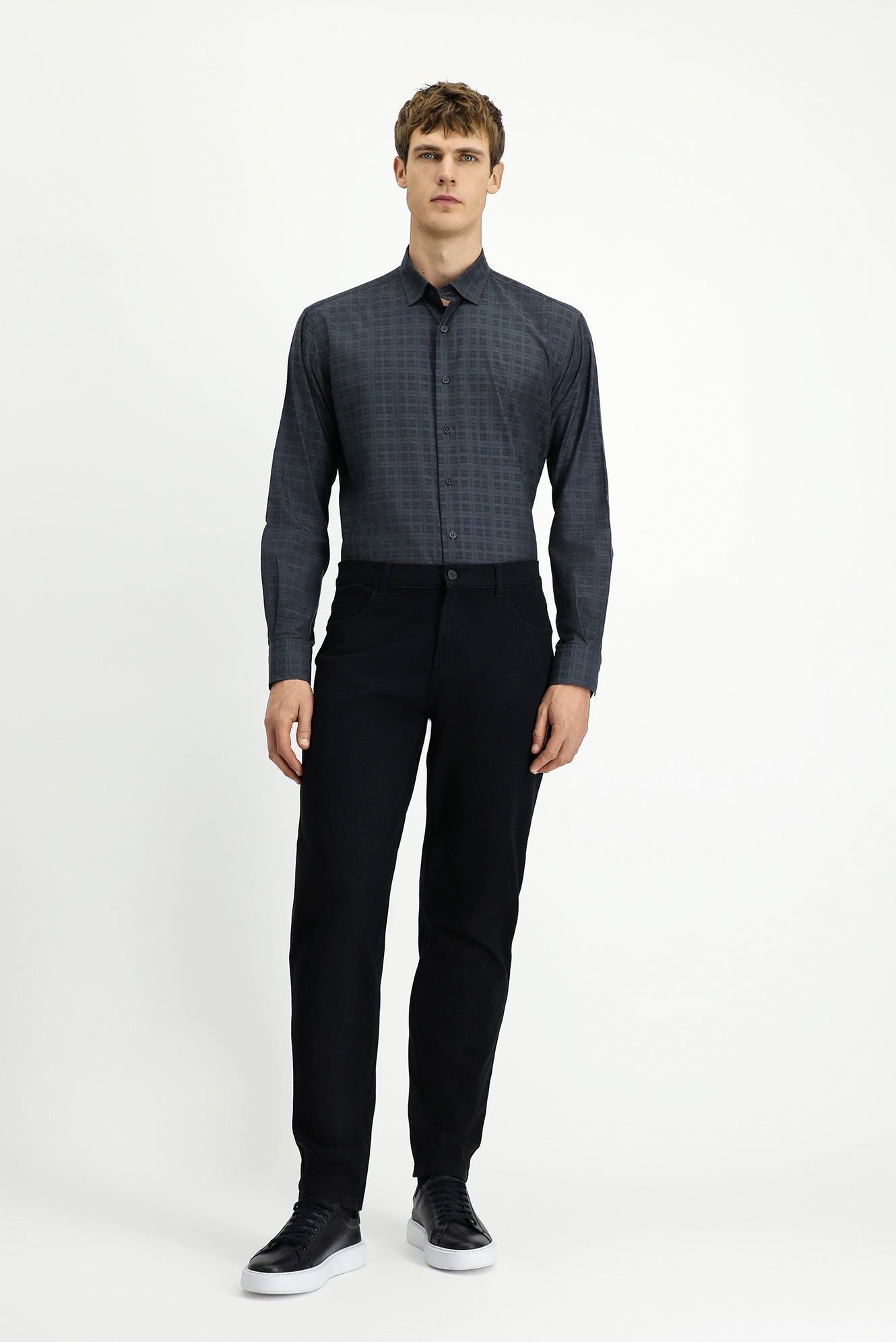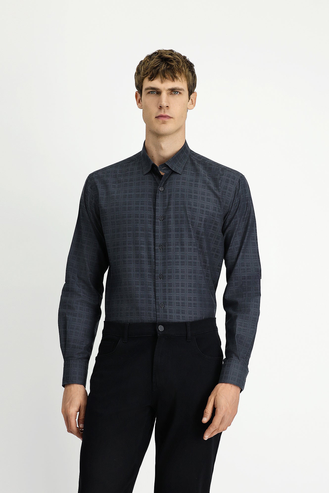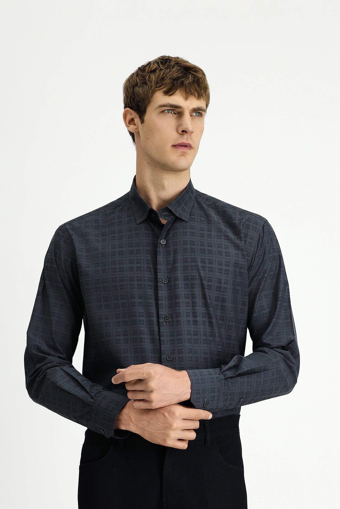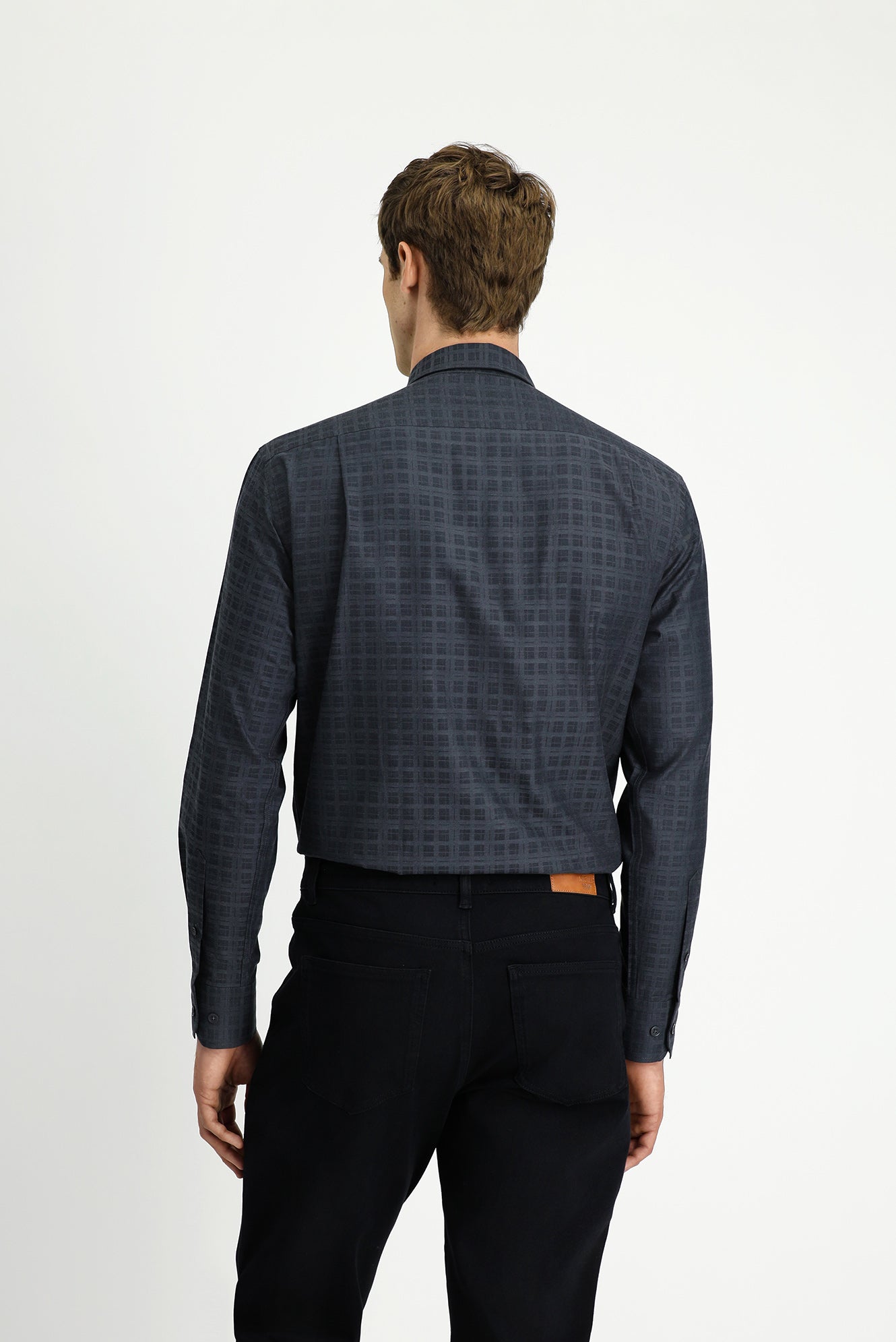 Orta Antrasit Uzun Kol Regular Fit Ekose Pamuk Gömlek