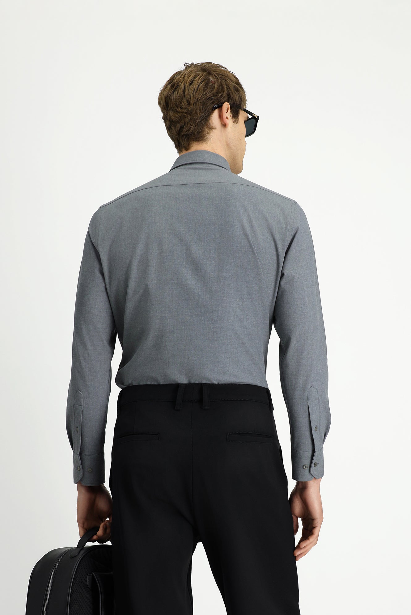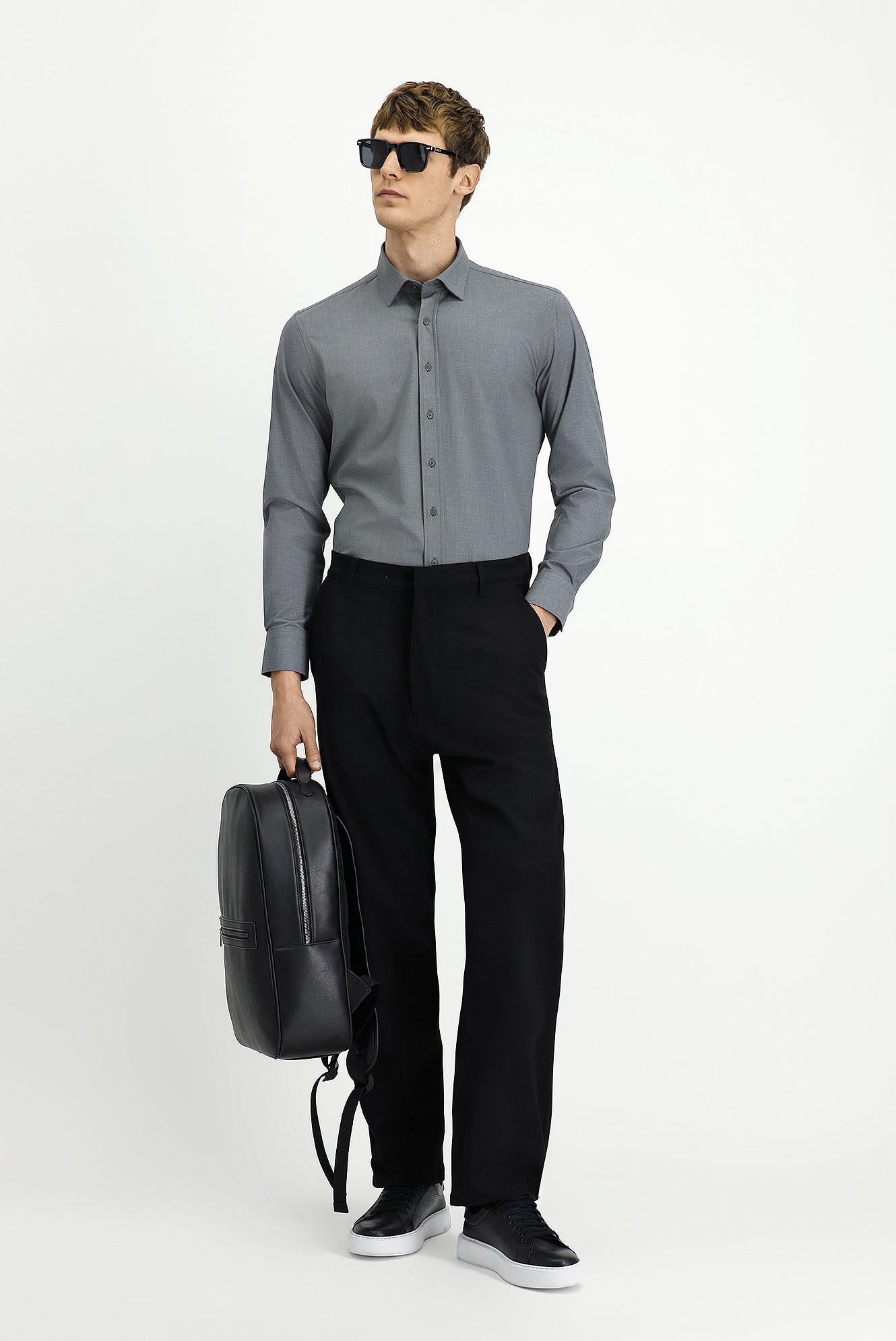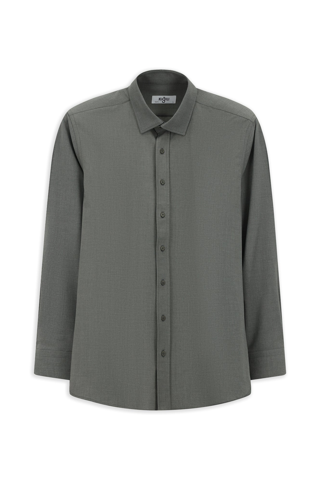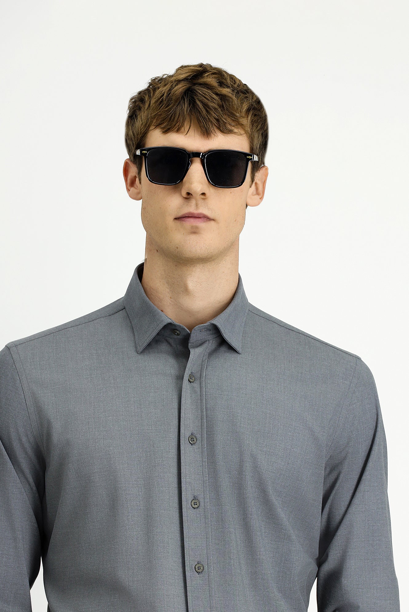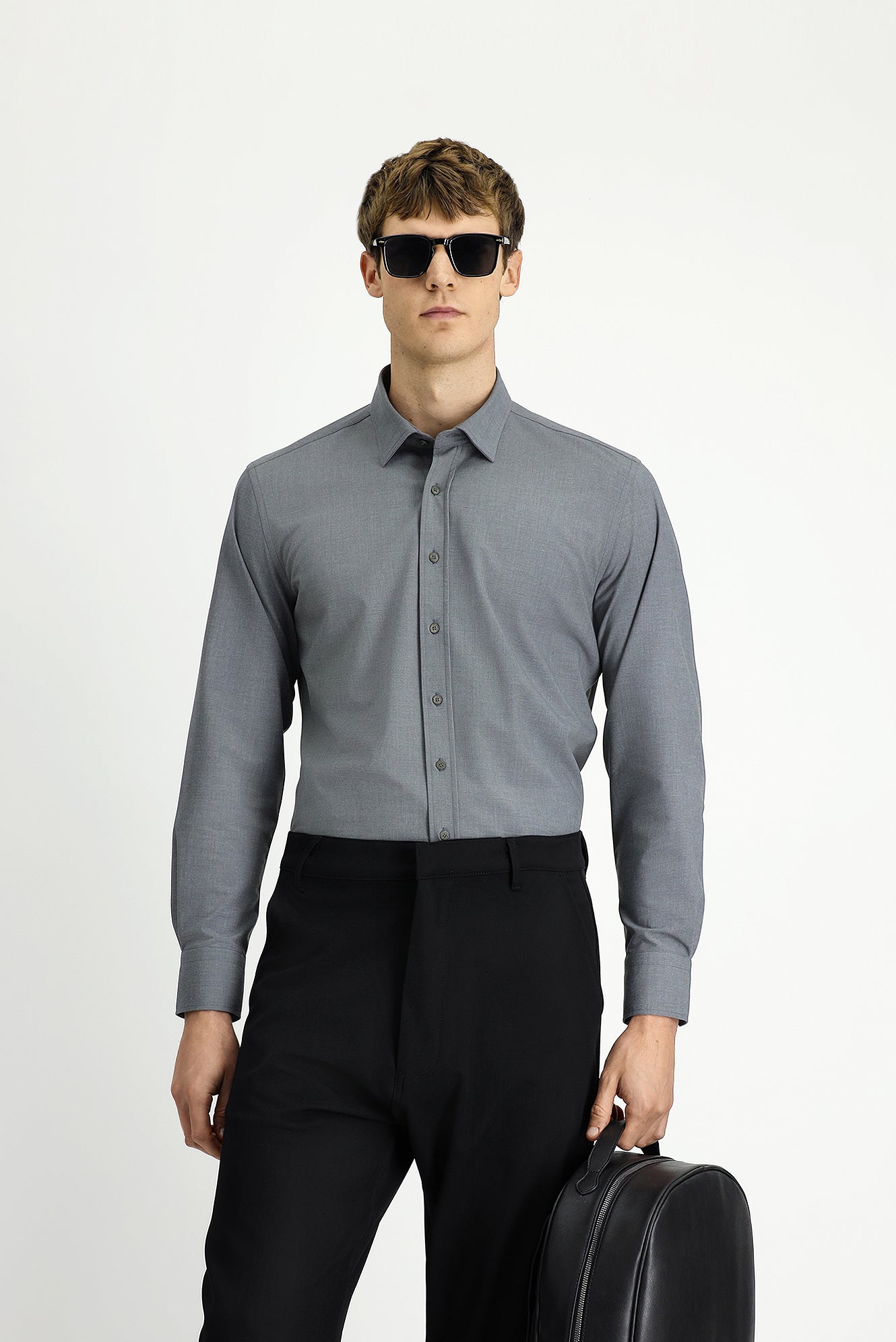 Orta Antrasit Uzun Kol Slim Fit Dar Kesim Pamuklu Gömlek