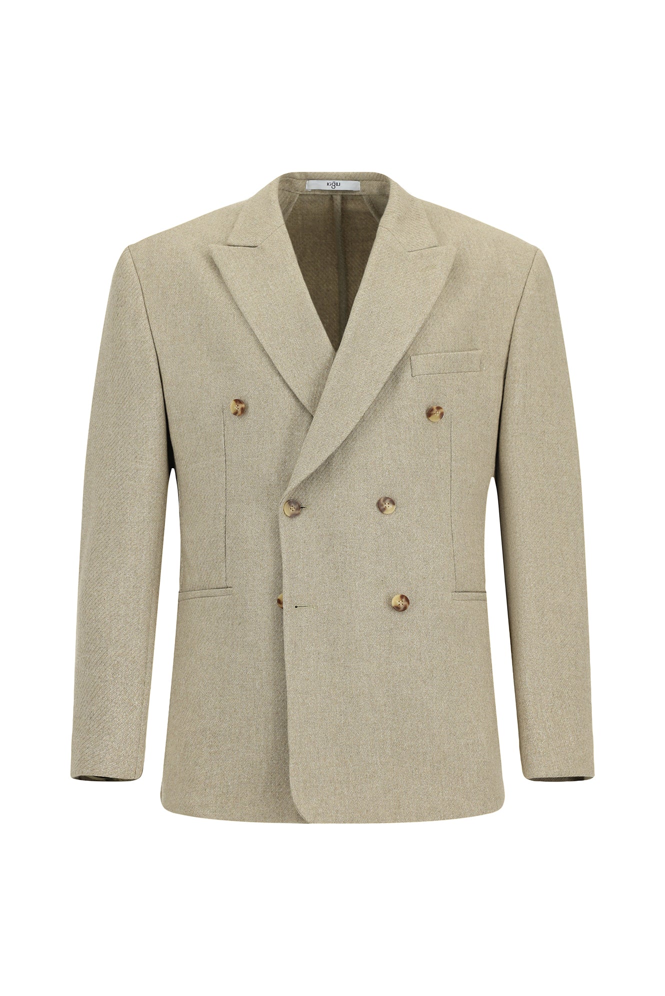 Orta Bej Milano Kalıp Yünlü Kruvaze Ceket