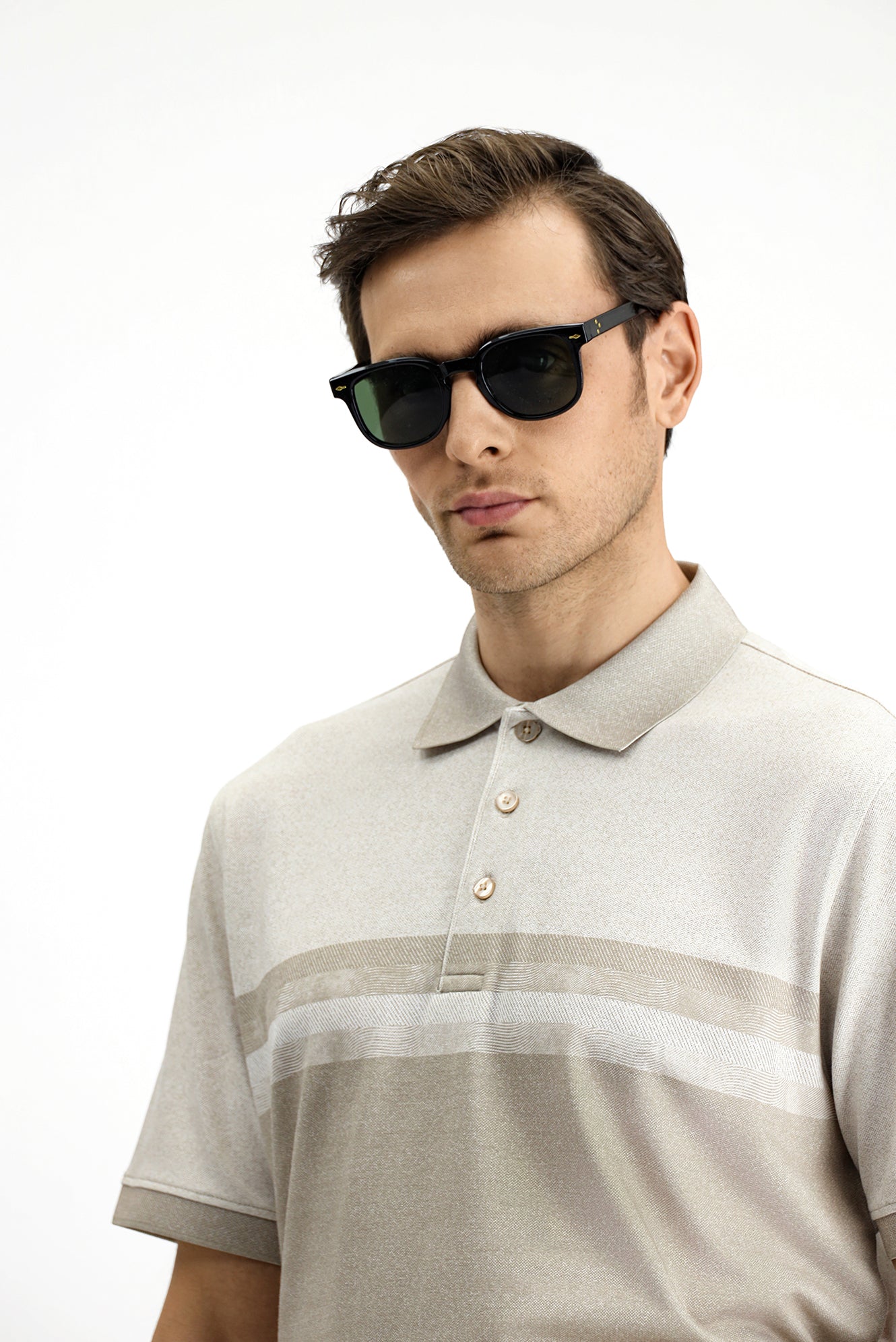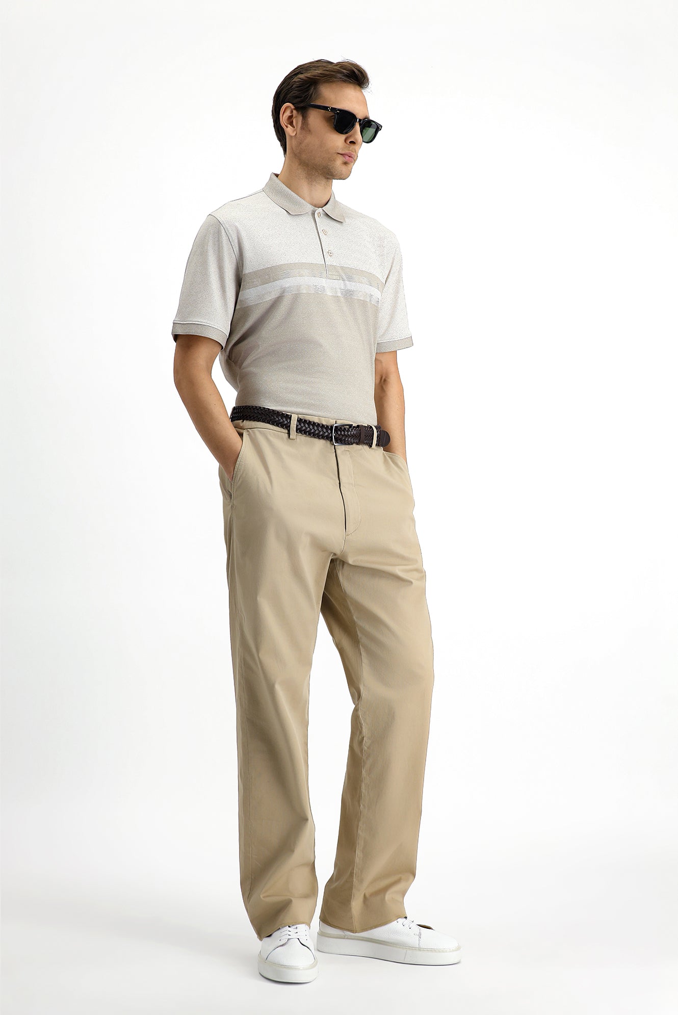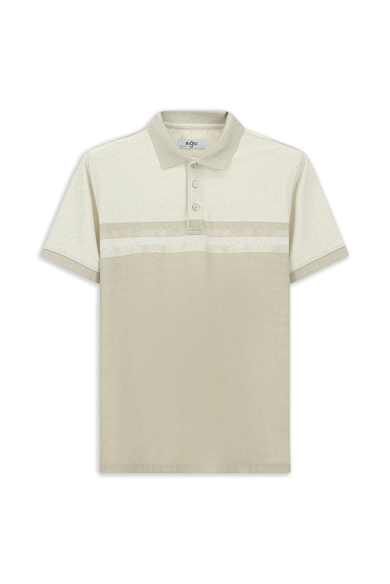 Orta Bej Regular Fit Desenli Likralı Polo Yaka Tişört