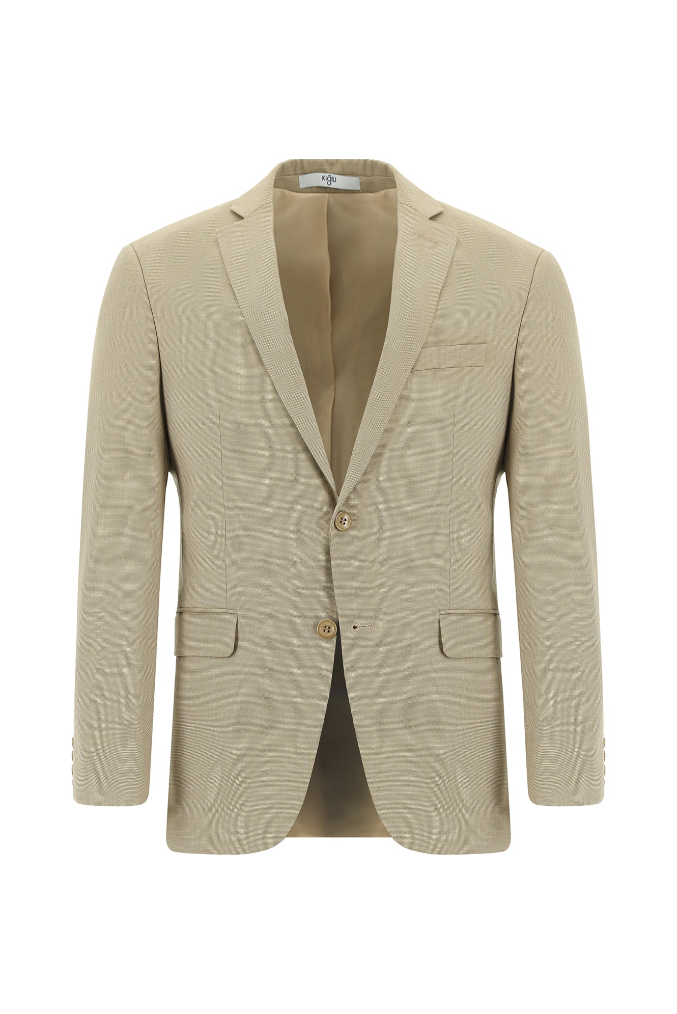 Orta Bej 6 Drop Regular Fit Standart Kesim Desenli Takım Elbise