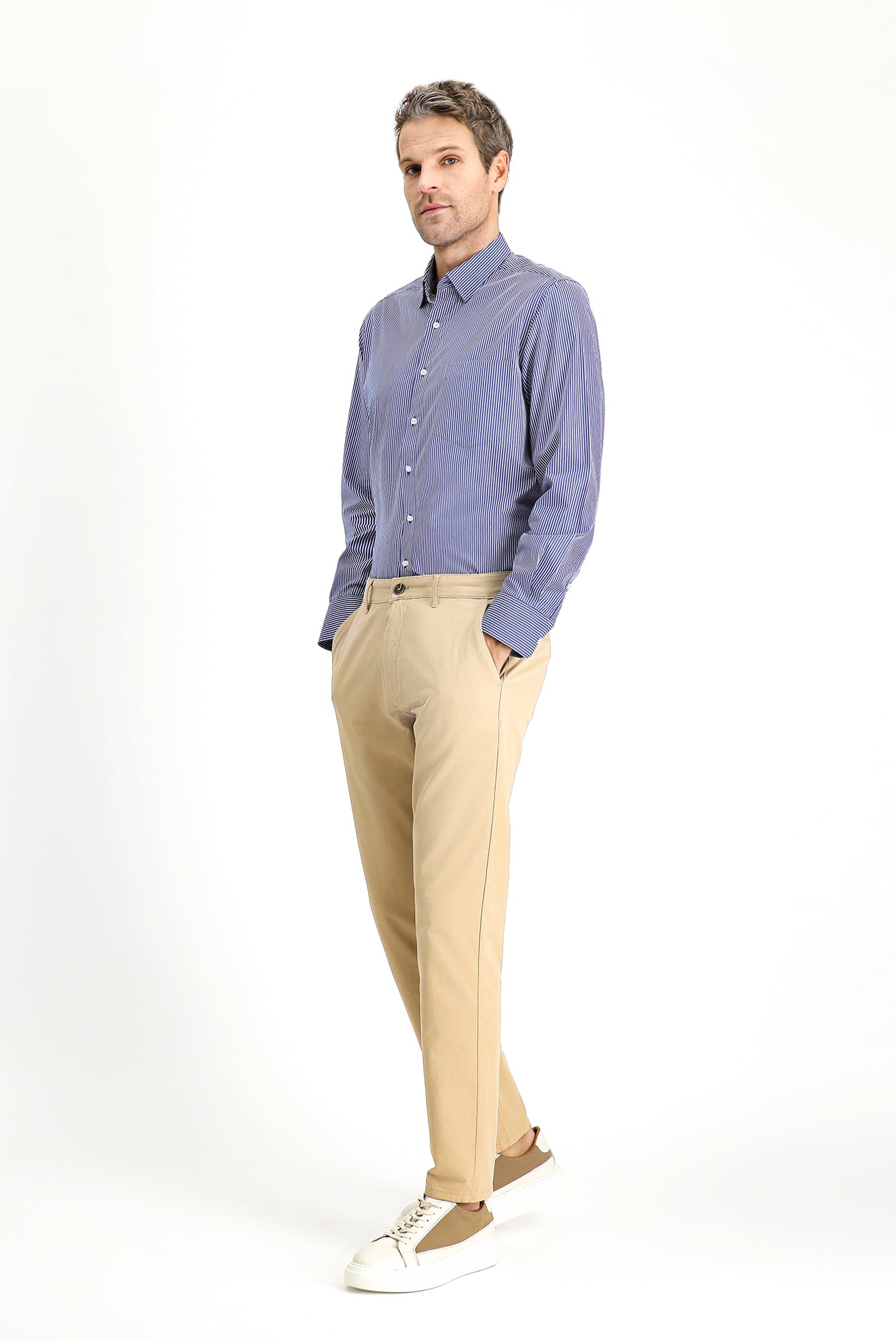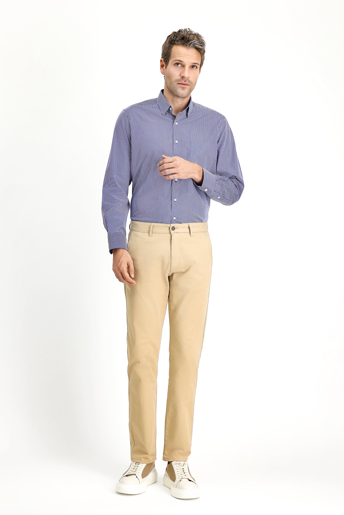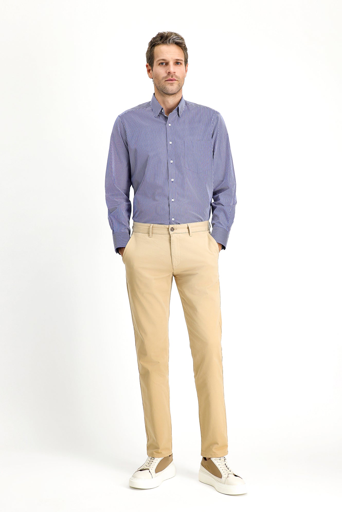 Orta Bej Regular Fit Likralı Kanvas / Chino Pantolon